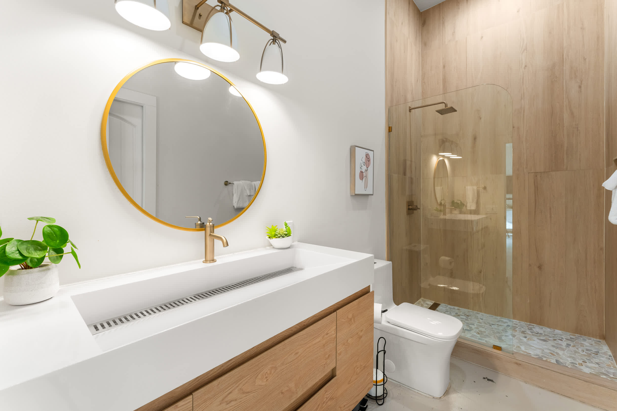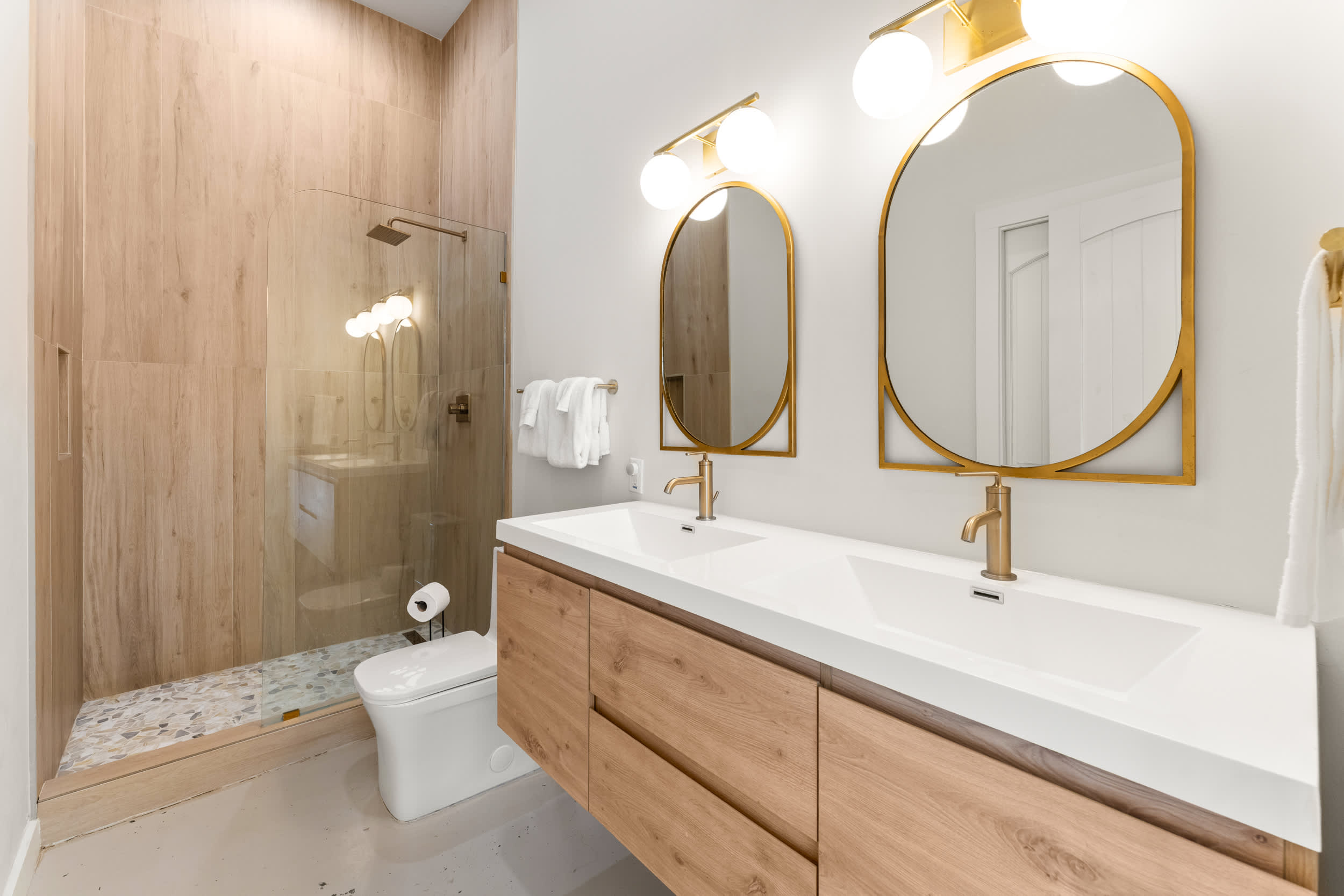 Bedroom #1 includes a queen size bed and ensuite bathroom with a dual vanity and walk-in shower.