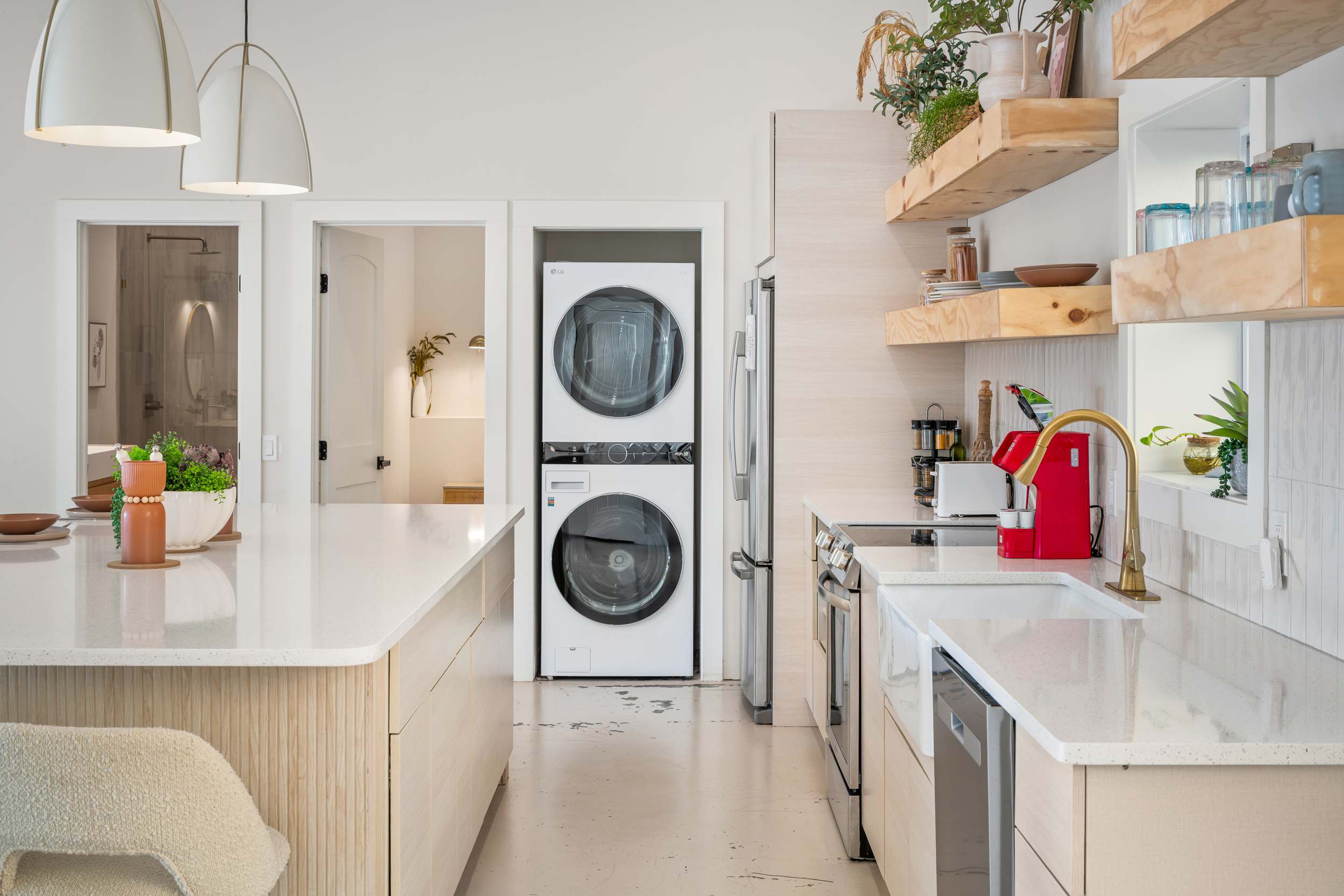 • Washer and dryer in home.