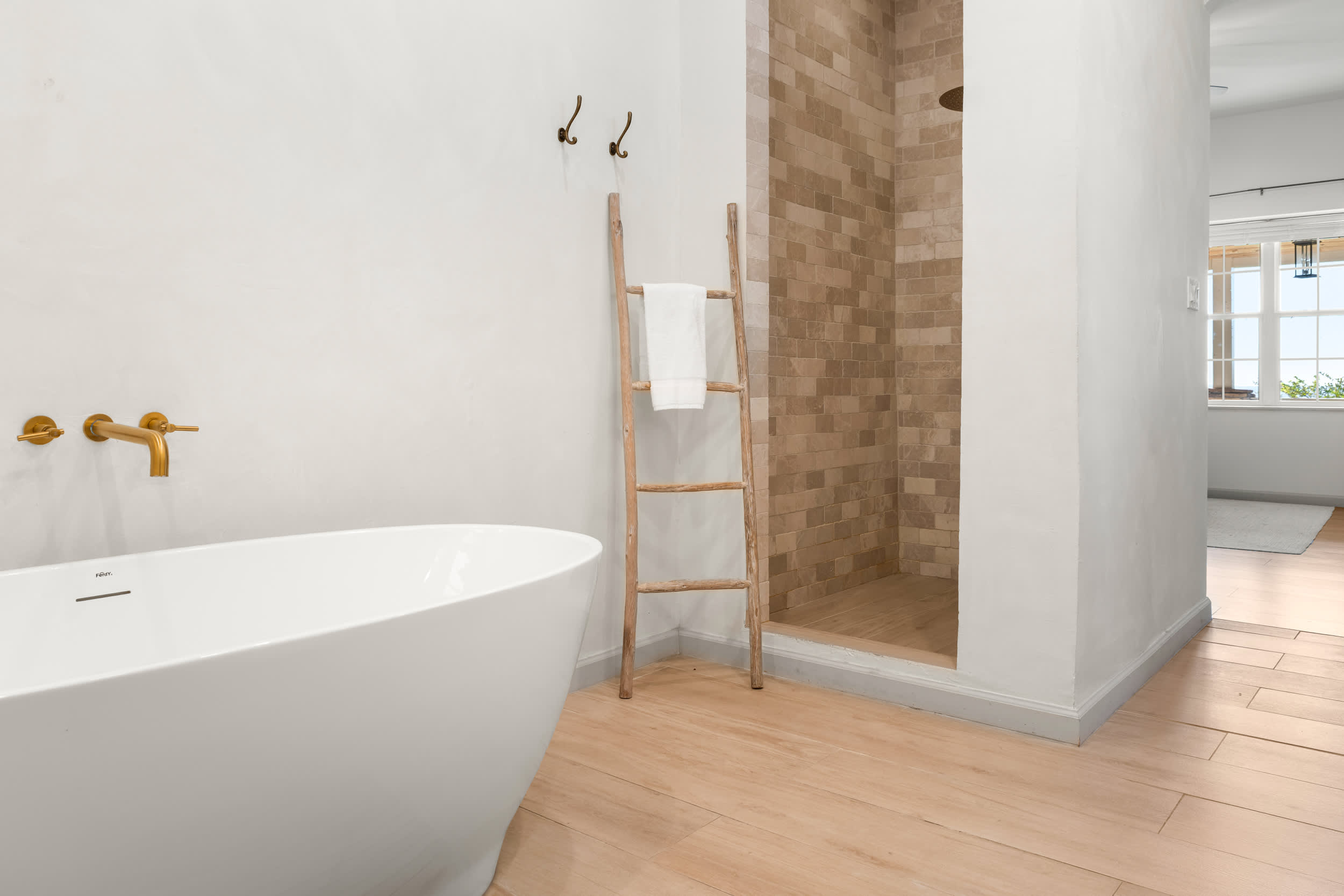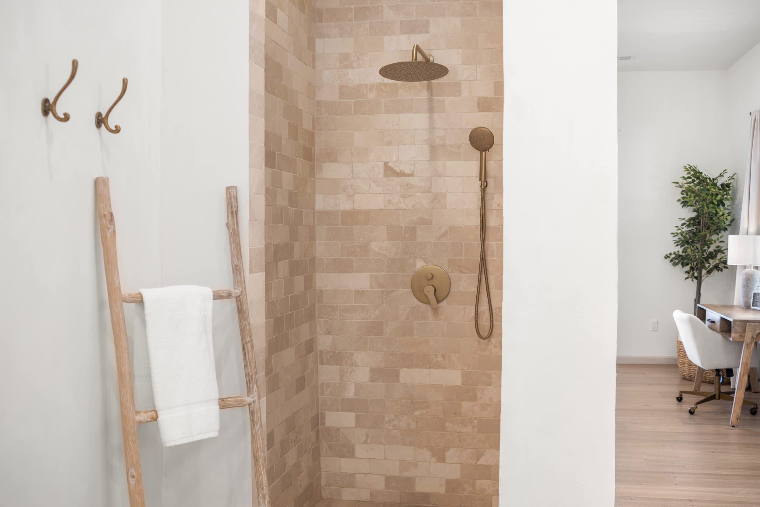 The home also includes an additional full guest bathroom with a single vanity and walk-in shower.