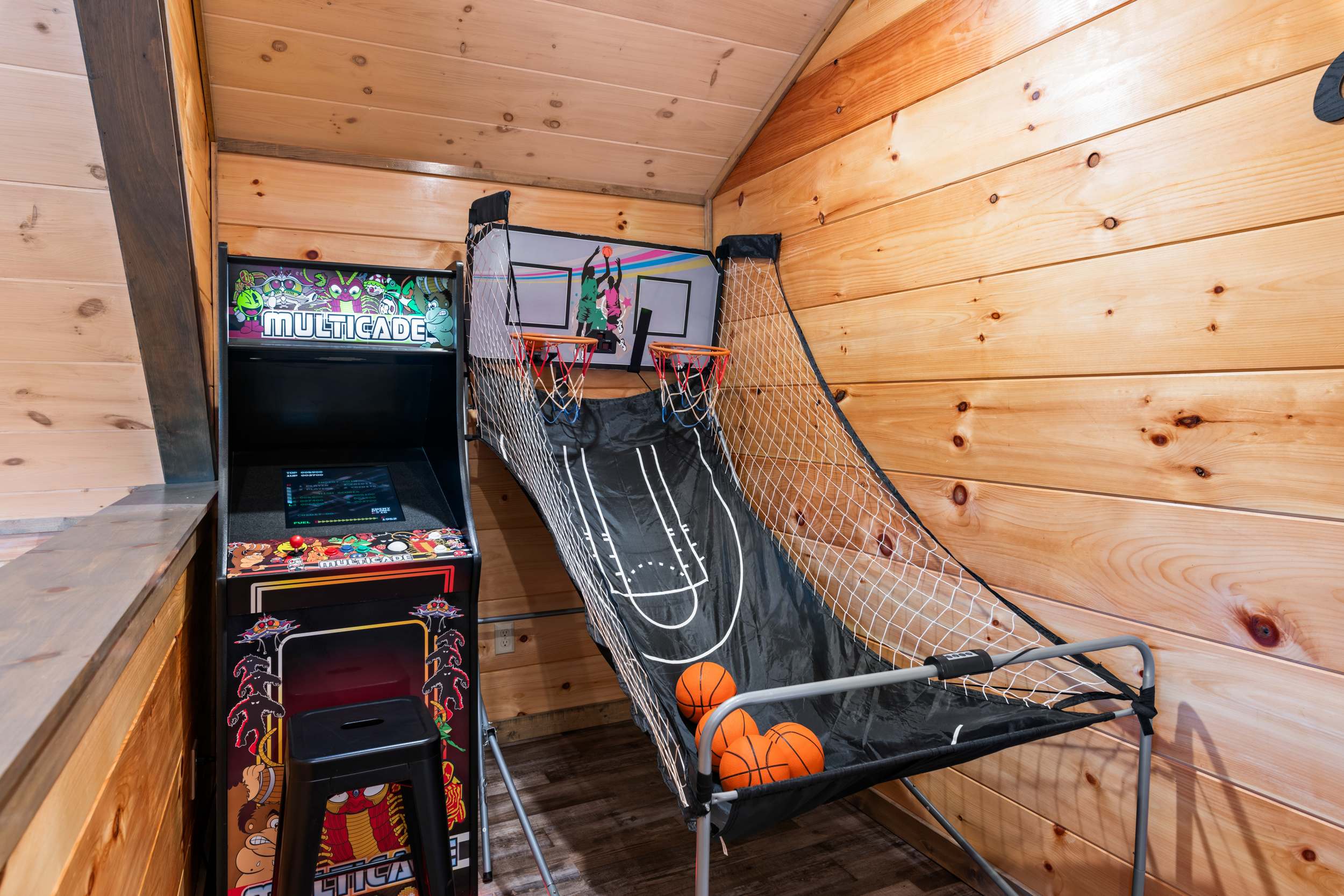 Settle into a comfortable cabin designed for easy gathering and relaxation. With sleeping space for up to 10 guests across three bedrooms plus a sleeper sofa, it’s a great fit for families, teams, and small groups. The main living area offers room to unwind after a day out, and the adjacent game room keeps the fun going back at home.