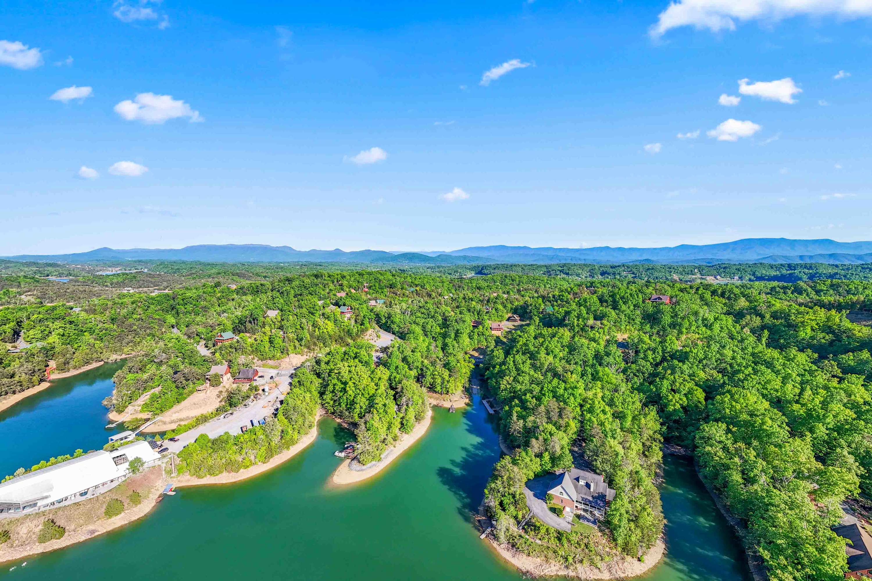 This home is located just inland of Douglas Lake. Although this lakeside setting is secluded in nature, the heart of Sevierville is just over 20 minutes away. The entire area is dotted with unique galleries, antique malls, and flea markets, in addition to famous attractions like Dollywood. Jointly owned by Sevier County legend Dolly Parton, the theme park is a quick 30-minute drive away. For a day of nature exploration, reach the entrance of The Great Smoky Mountain National Park in about 40 minutes. From chasing waterfalls to seeking out the best southern BBQ and just wingin’ it, you’re sure to make lasting memories in The Great Smoky Mountains!