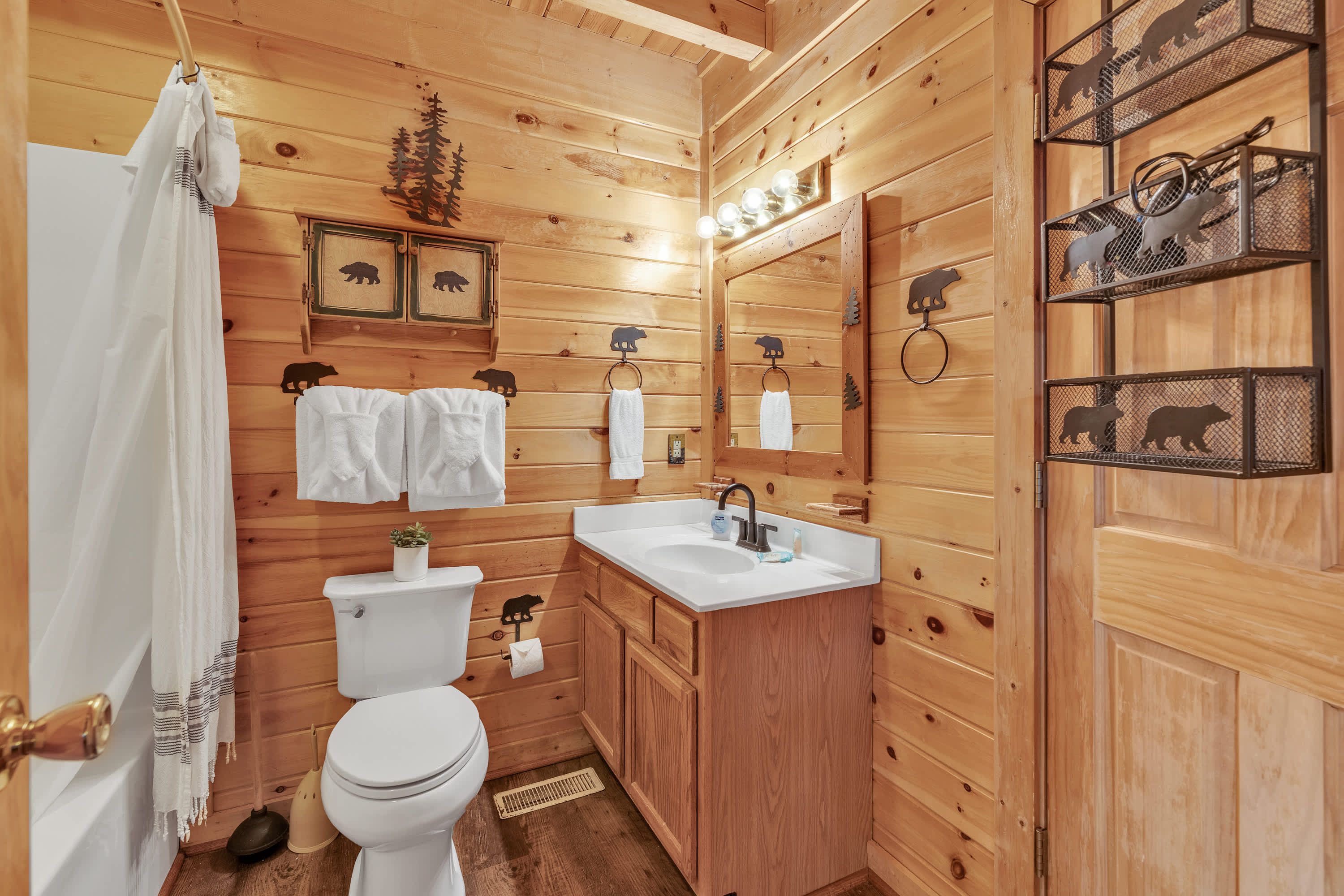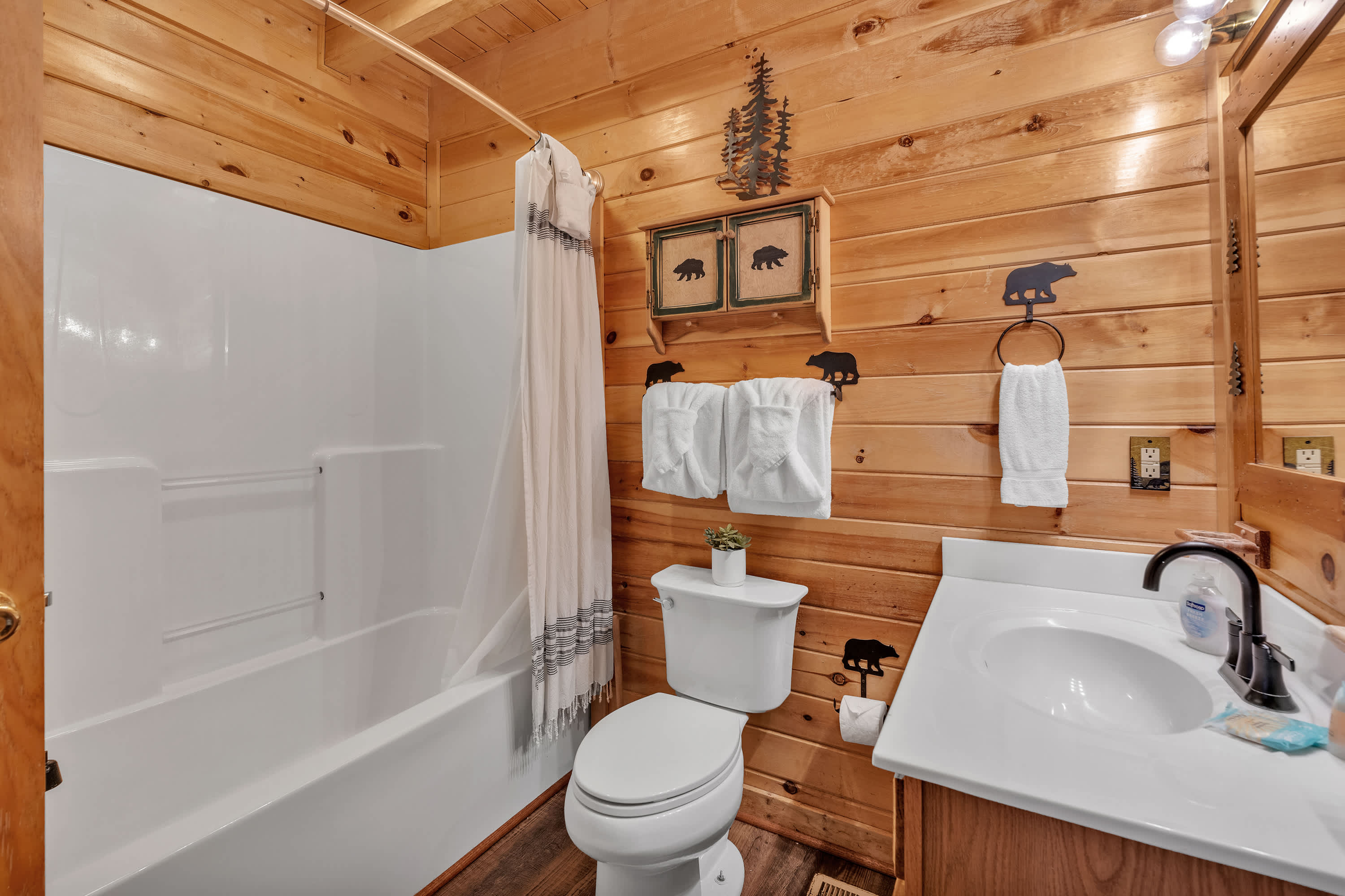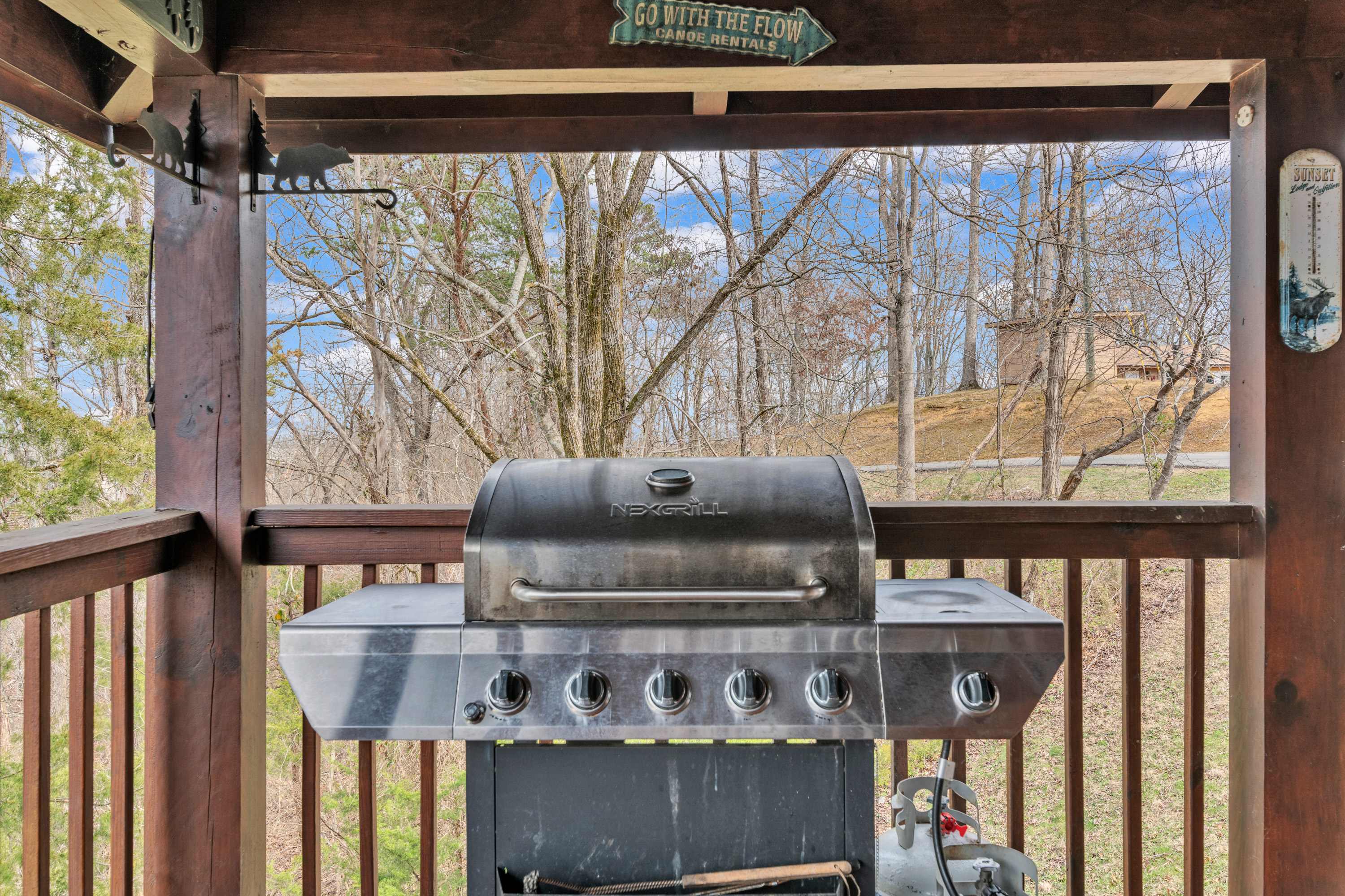 Out on the home’s wraparound deck, comfortable outdoor seating provides quiet spaces for turning the pages of a good book, enjoying casual conversation with friends, or whipping up a delicious barbeque lunch on the grill. The private hot tub will help soak your remaining cares away at the end of long days as you sip on a refreshing cocktail. When you’re ready to head out beyond the home, the nearby towns of Sevierville, Gatlinburg, Pigeon Forge, and Townsend are all within just a quick drive, each offering their own unique options for shopping, dining, outdoor adventure, and energetic nightlife. Of course, you can’t pass up the opportunity to take a leisurely or athletic hike through the Great Smoky Mountains via one of several trailheads just a short distance from the home.