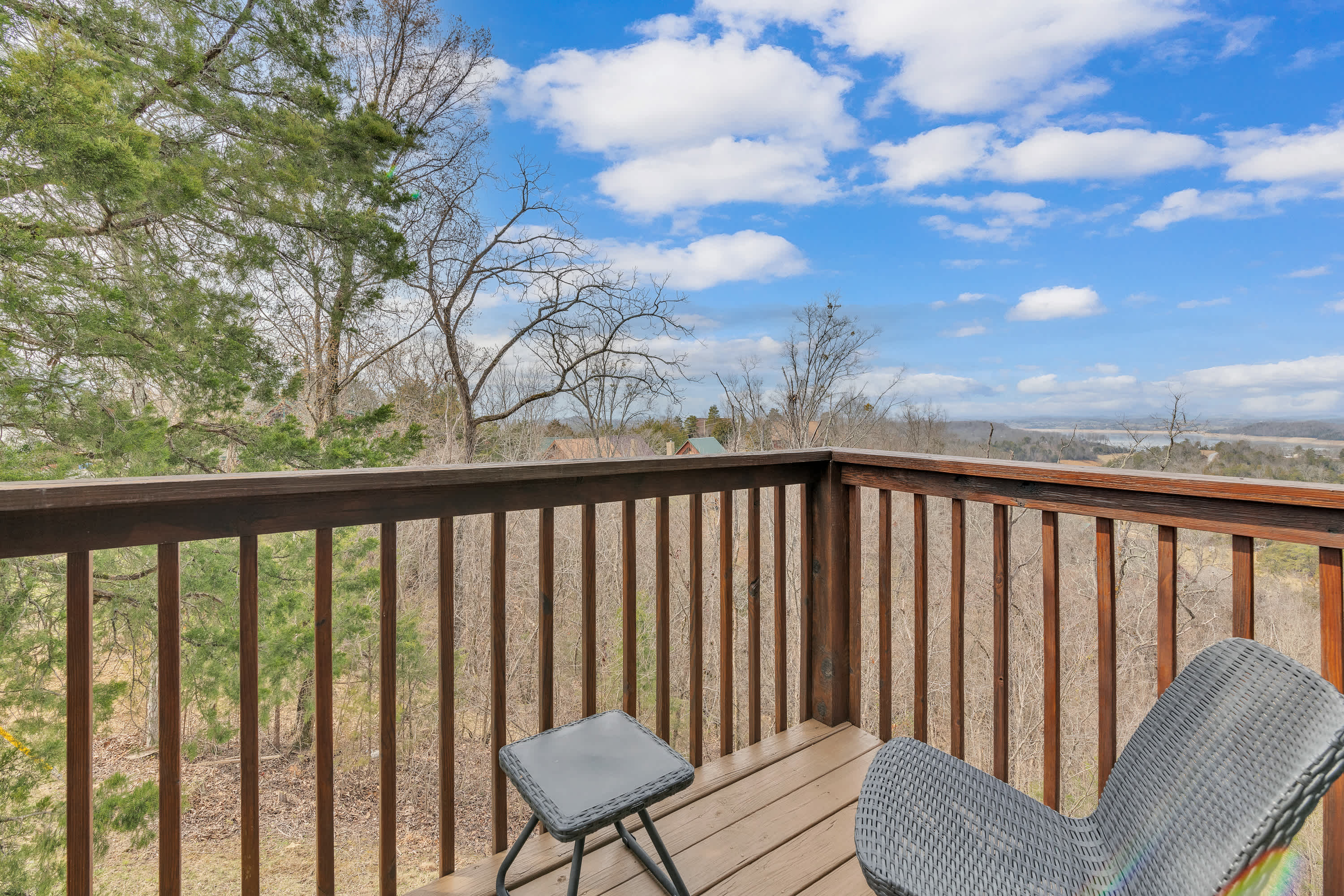 This 2-bedroom secluded haven in scenic Sevierville offers panoramic views of Douglas Lake, where shimmering waters meet lush greenery and create a tranquil paradise for all your senses.