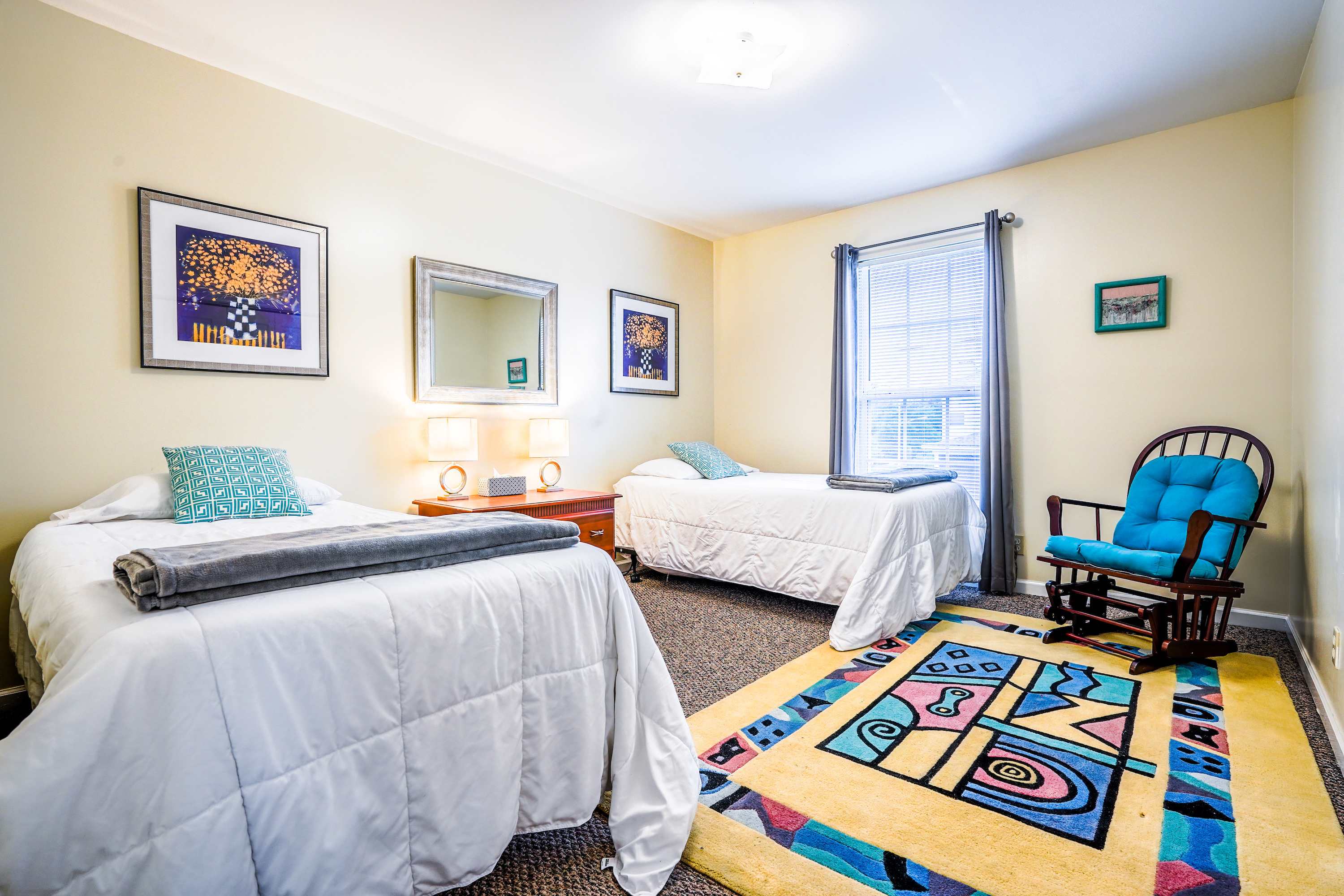 The main bedroom holds a King bed and en suite bathroom. The 2nd bedroom is great for the kids and has 2 Twin beds. The last bedroom has a Queen bed. There is a shared full bathroom as well.