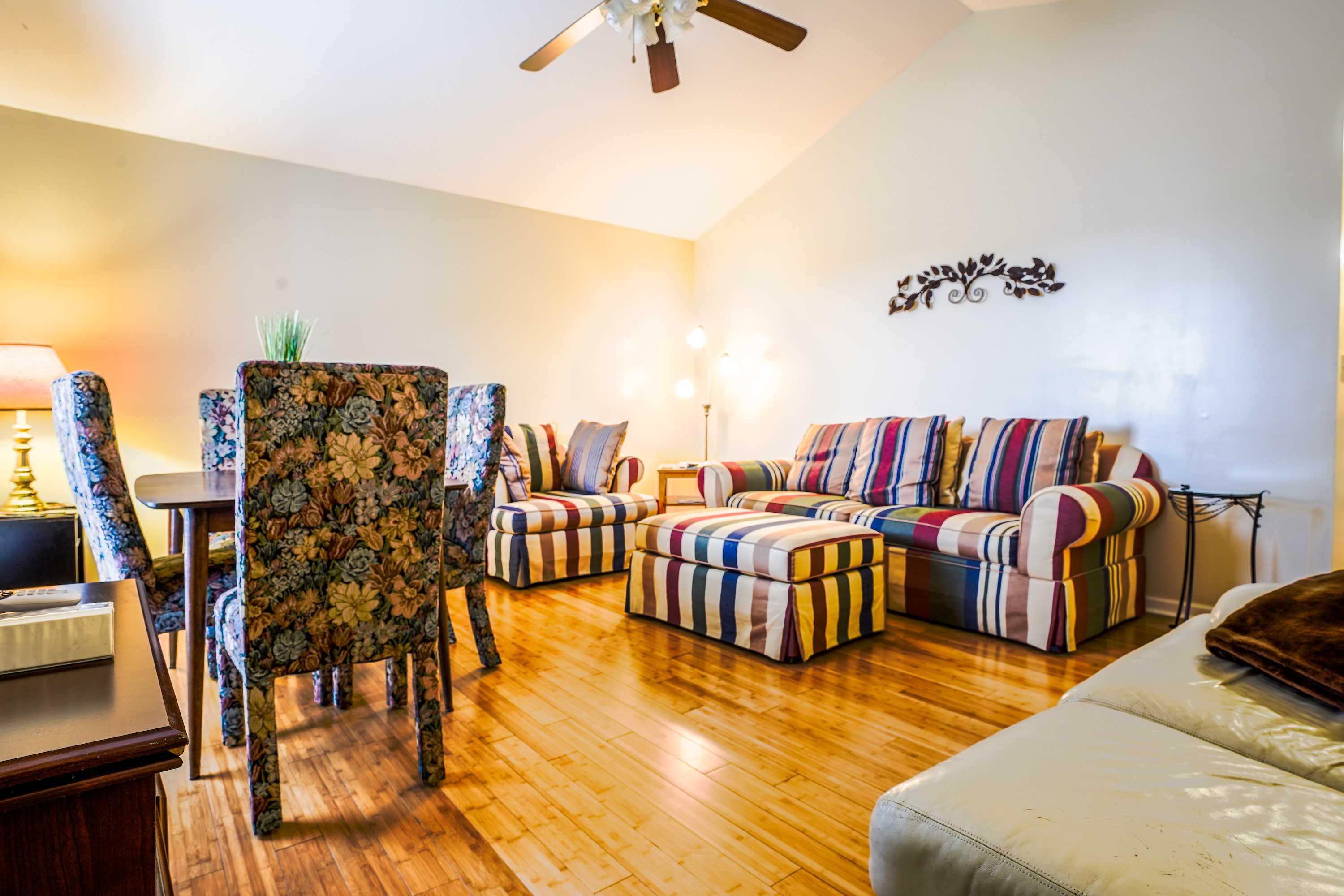 The main room consists of the living room and dining room. Comfortable seating is gathered around a Smart TV (Netflix, Hulu, ESPN, etc.) and steps away is a dining table for 4. Right by the kitchen, there is another table for 4. The kitchen is great for homemade meals and is equipped with a drip coffee maker, blender, toaster, dishwasher, and more! But if you don't feel like cooking, we highly recommend checking out one of the local eateries for some Nashville chicken sandwiches or BBQ!