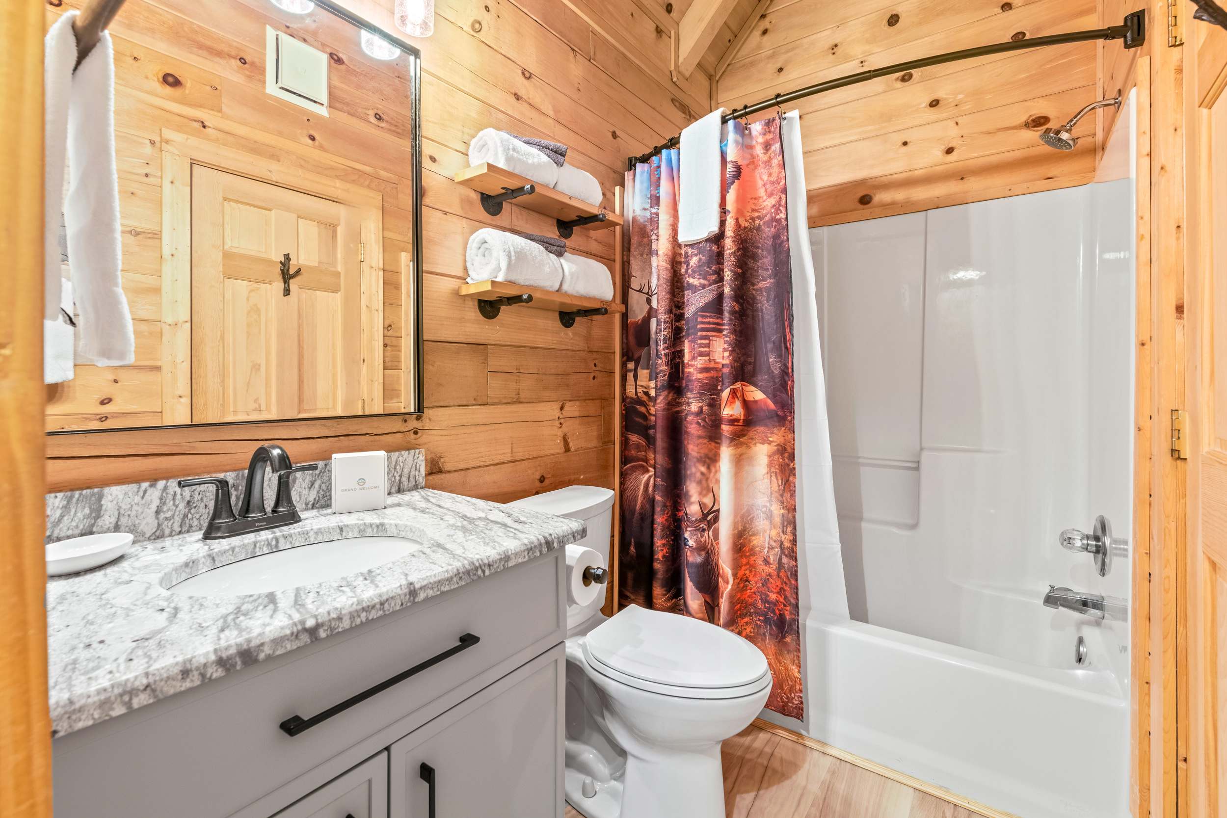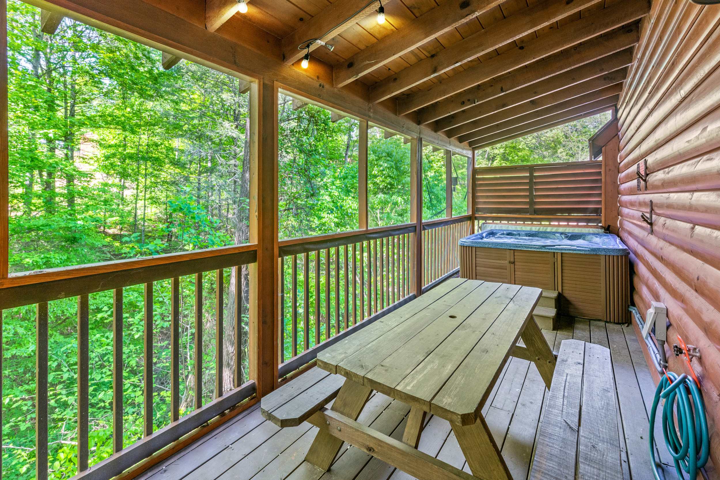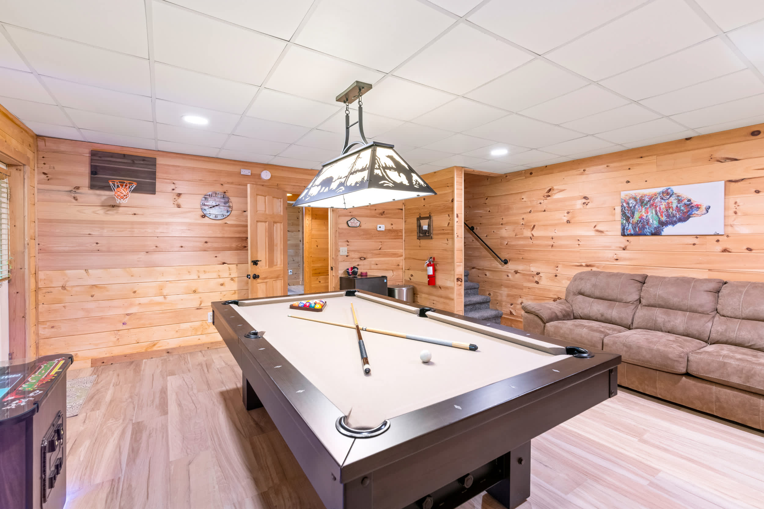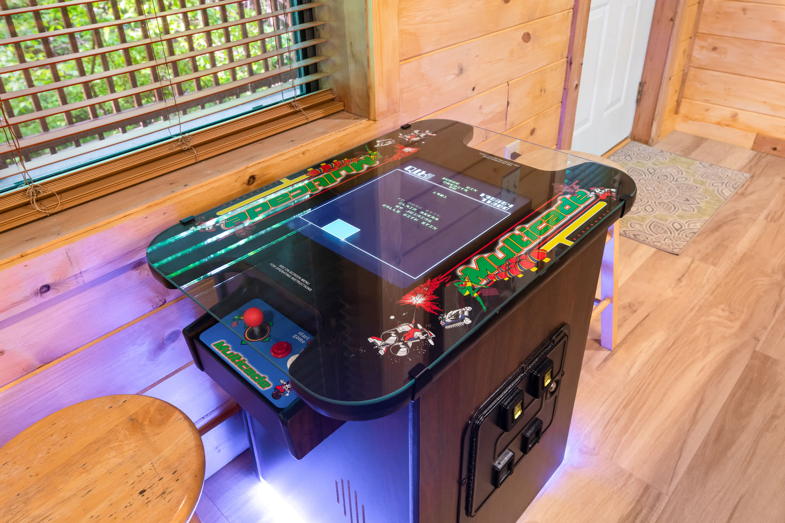 Enjoy the serene, wooded views from the comfort of multiple outdoor decks. The upper deck is a screened-in, outdoor living space complete with gas grill, picnic table, rocking chairs and private hot tub. All the fixings for a perfect evening in the mountains! The lower deck has space to play outdoor games like the provided corn hole set and plenty of seating with a swing and more rocking chairs! As you head inside, you’ll also find a fully stocked game room with pool table, newly updated wet bar, tabletop arcade games, and a full selection of board games. The possibilities for fun and recreation are endless! Soak in the peace and tranquility of life in the mountains and get ready for a vacation like no other.