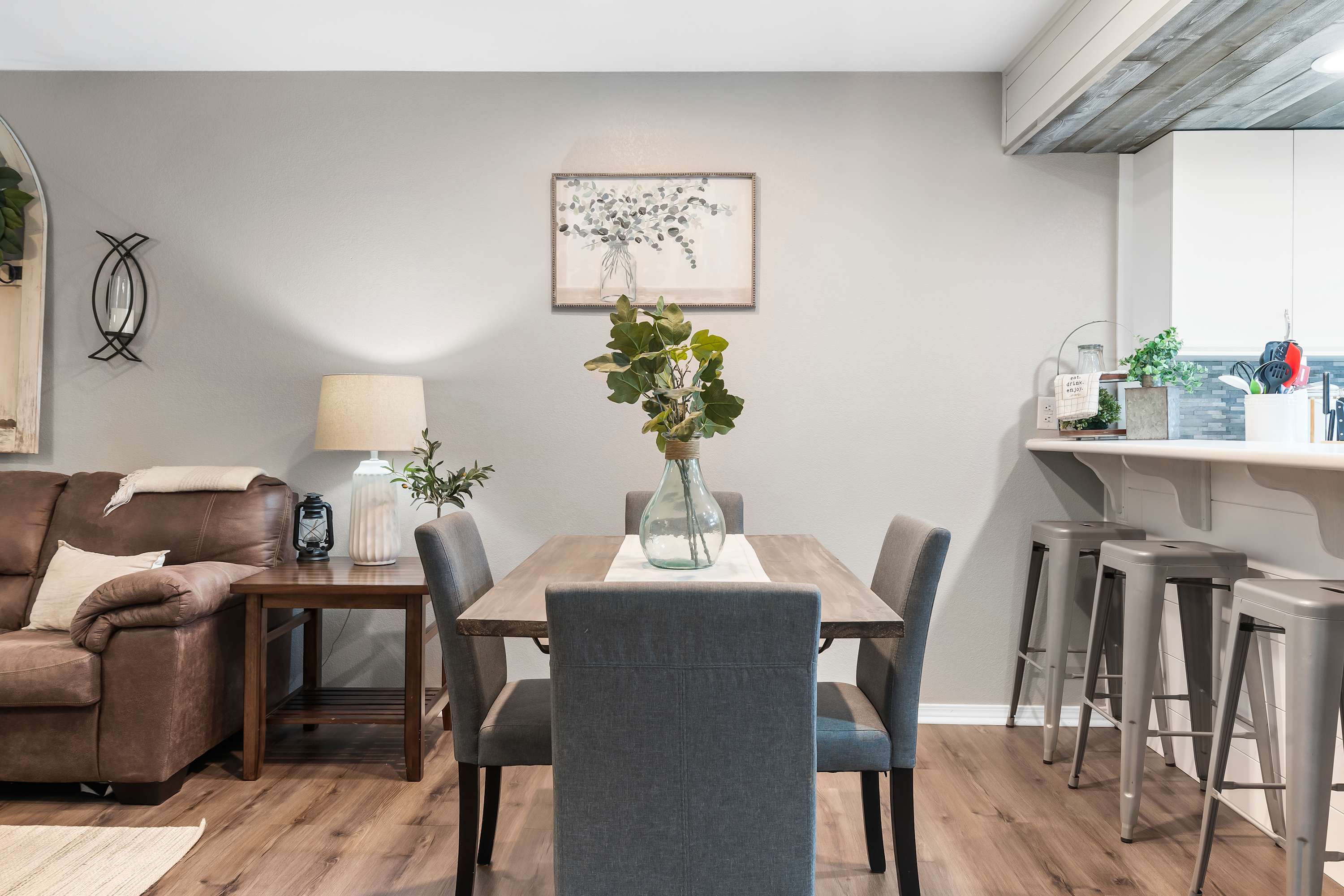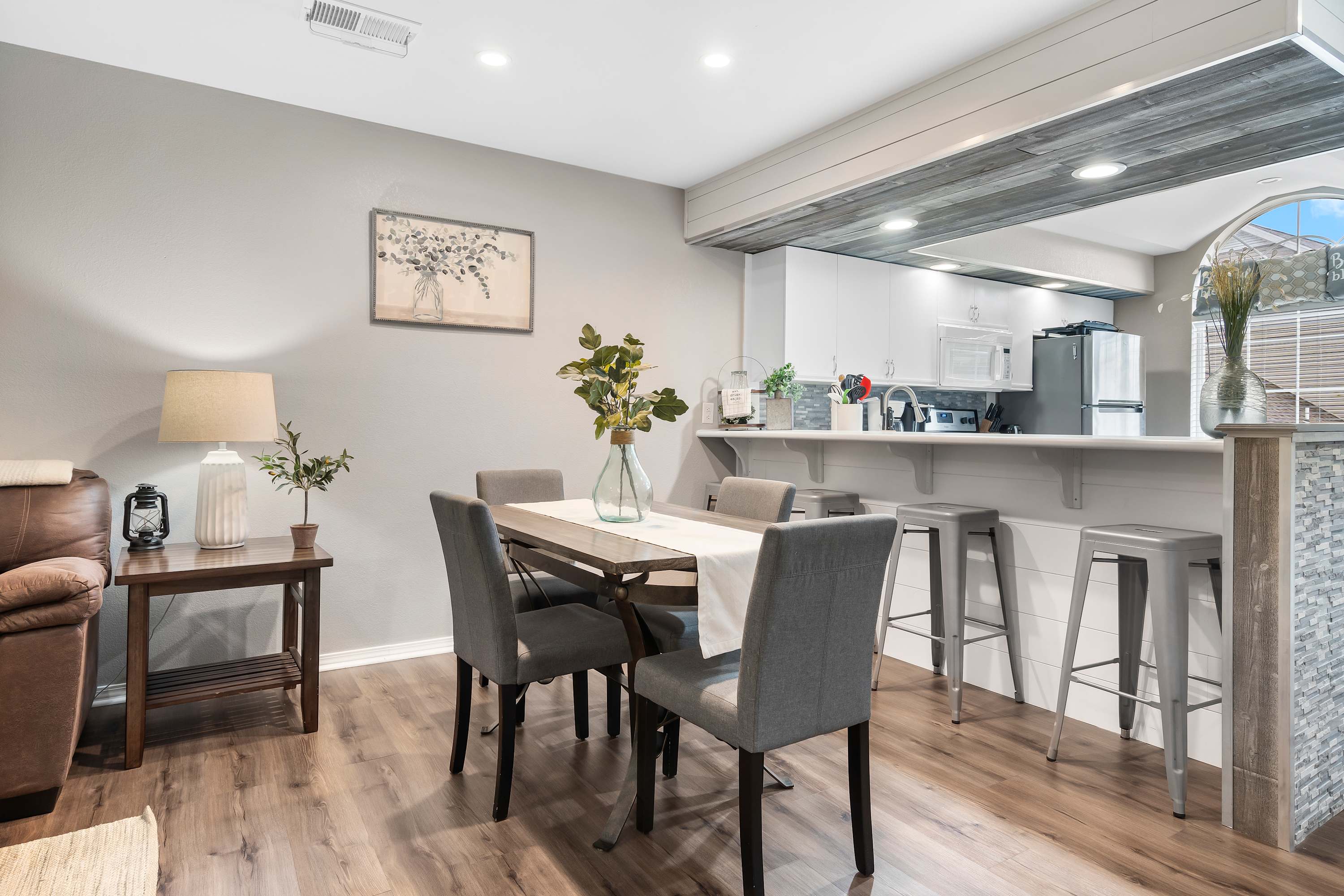 With an interior this stylish, you’ll may look forward to your downtime at home as much as your adventures away from it! This home is truly a place where contemporary furnishings meet sophisticated décor in spaces immaculately curated for relaxation and connectivity. Curl up on plush living room sofa seating while you stream episodes of all your favorite shows on the smart TV. The electric fireplace will keep you warm and toasty in the cooler months, creating an ambiance perfect for a family movie night. With access onto the breezy screened-in patio, indoor and outdoor living become organically one, allowing the fresh country air to flow freely throughout the home.