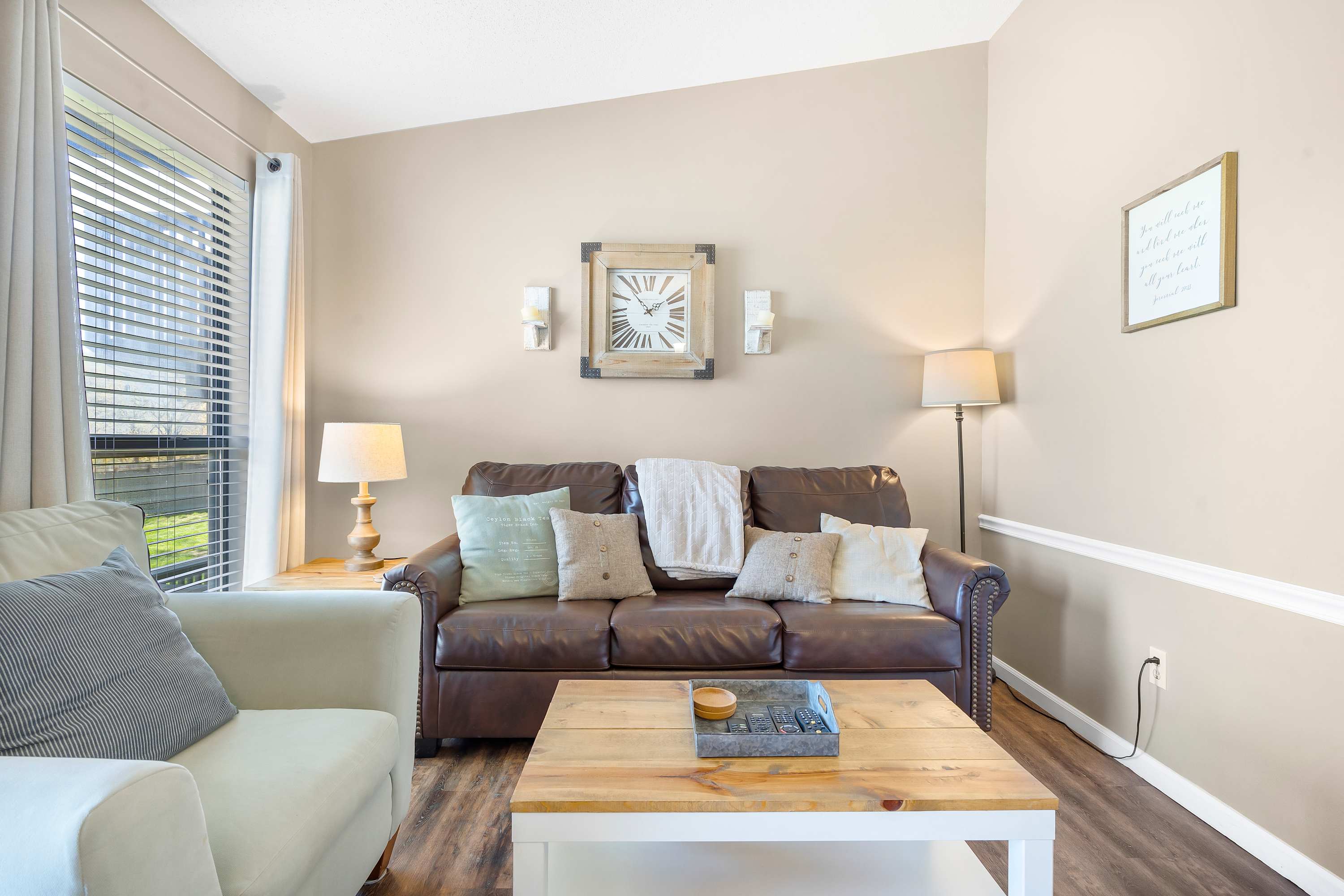 Allow the home to be your relaxing retreat between adventures, with comfortable furnishings, upscale décor, and abundant natural light facilitating connectivity during your well-earned downtime. The living room offers plush sofa and armchair seating perfect for catching up on a good book, along with a TV for enjoying a quiet movie night. The fully equipped kitchen offers full-sized appliances along with ample counterspace and cabinetry for meal preparation and storage. Grab a high-top stool at the counter to snack on a spread of afternoon appetizers or gather together at the dining table in a more formal setting with seating for 4. If you prefer to dine al fresco, the spacious balcony provides a shaded option to soak up even more of that fresh Ozark air.