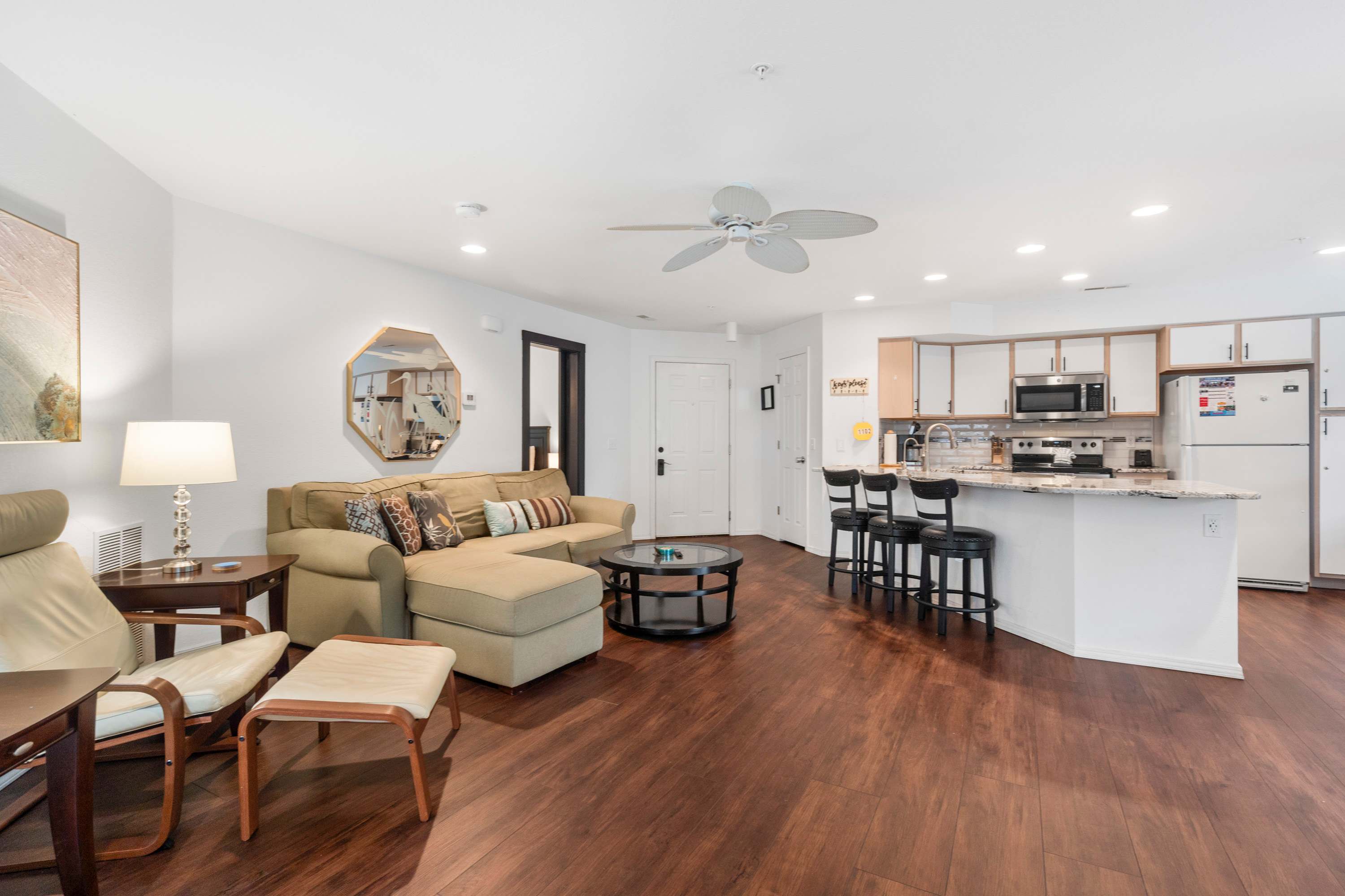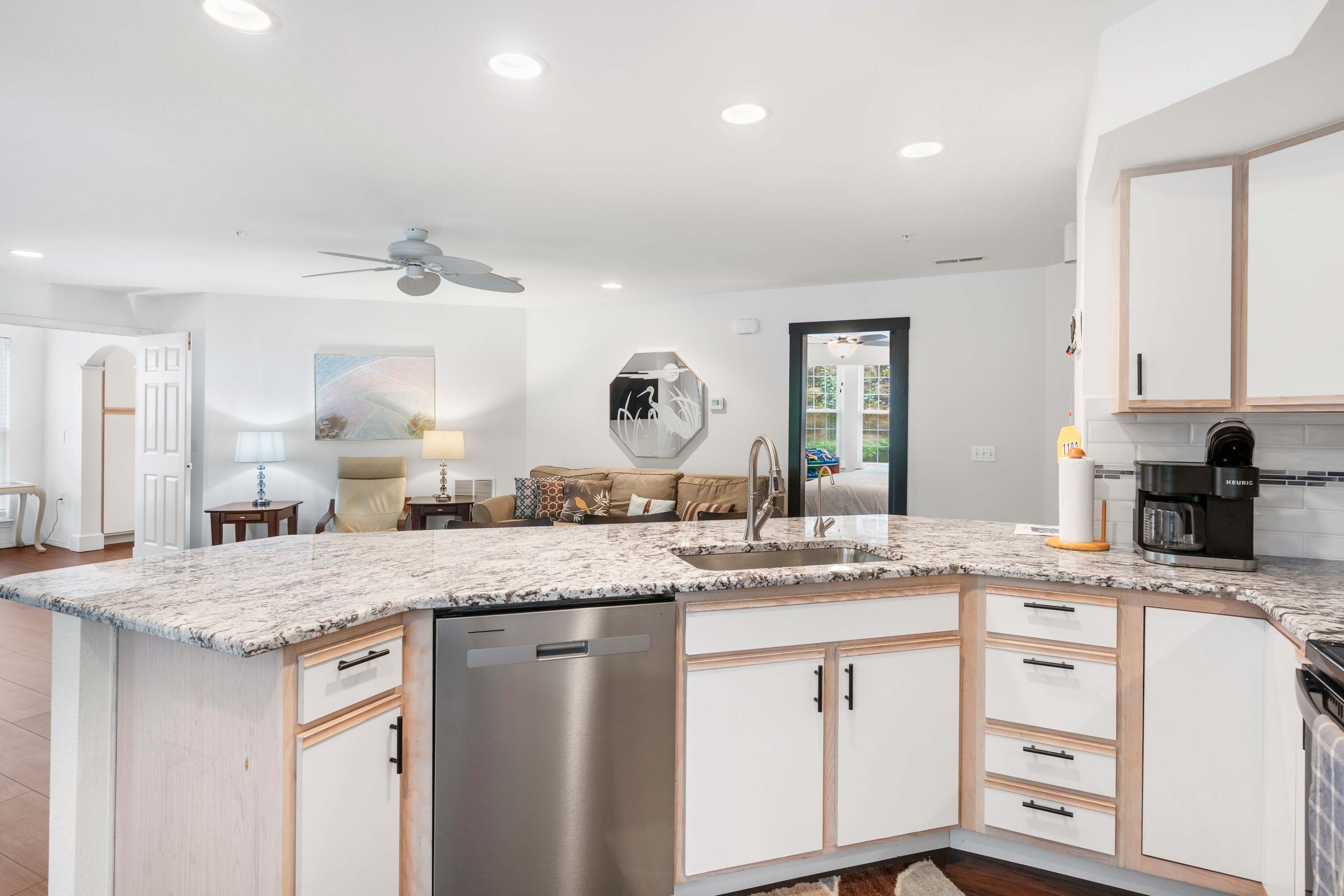 This home comfortably sleeps 8 guests between 2 private bedrooms and a king-size sleeper sofa in the living room.