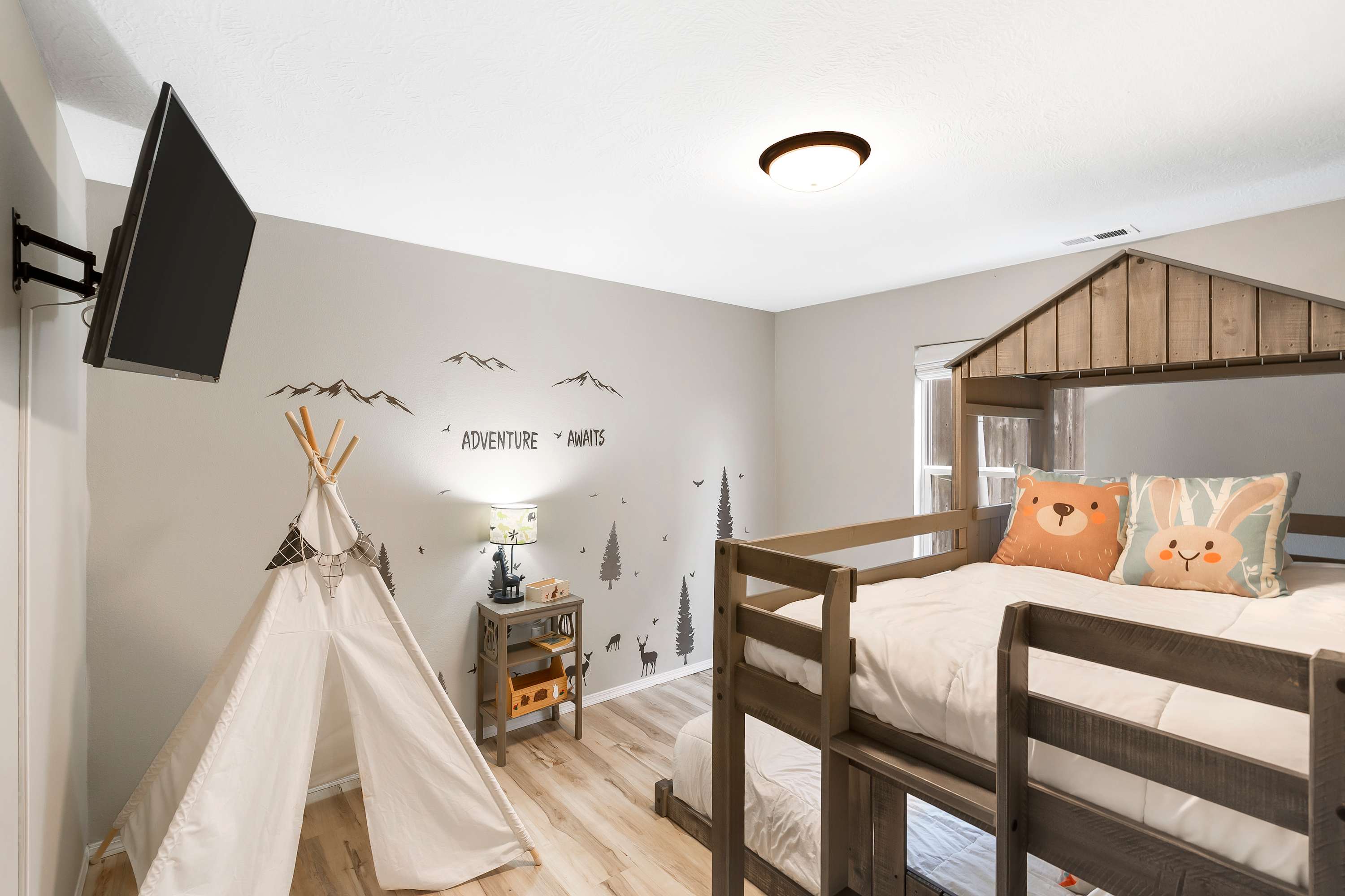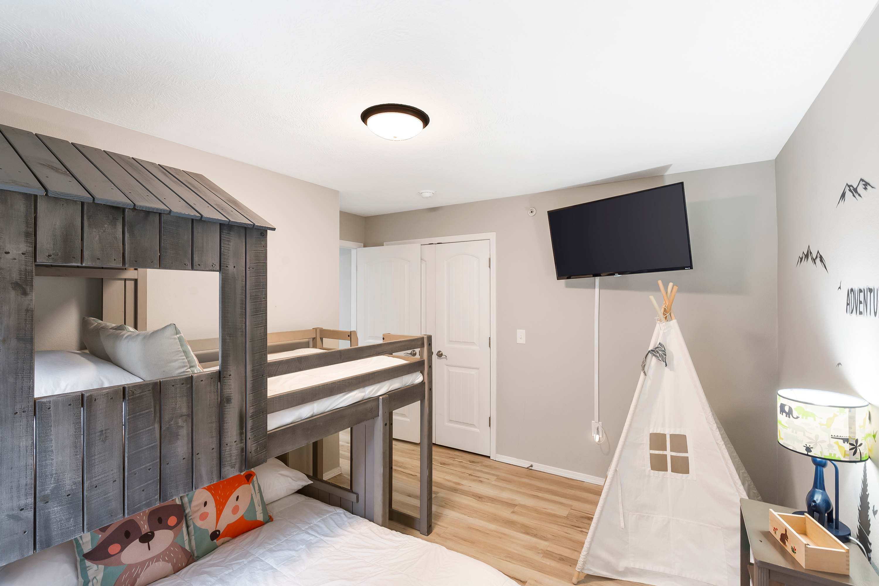 Bedroom #3 includes a twin-over-full bunk bed and a smart TV.