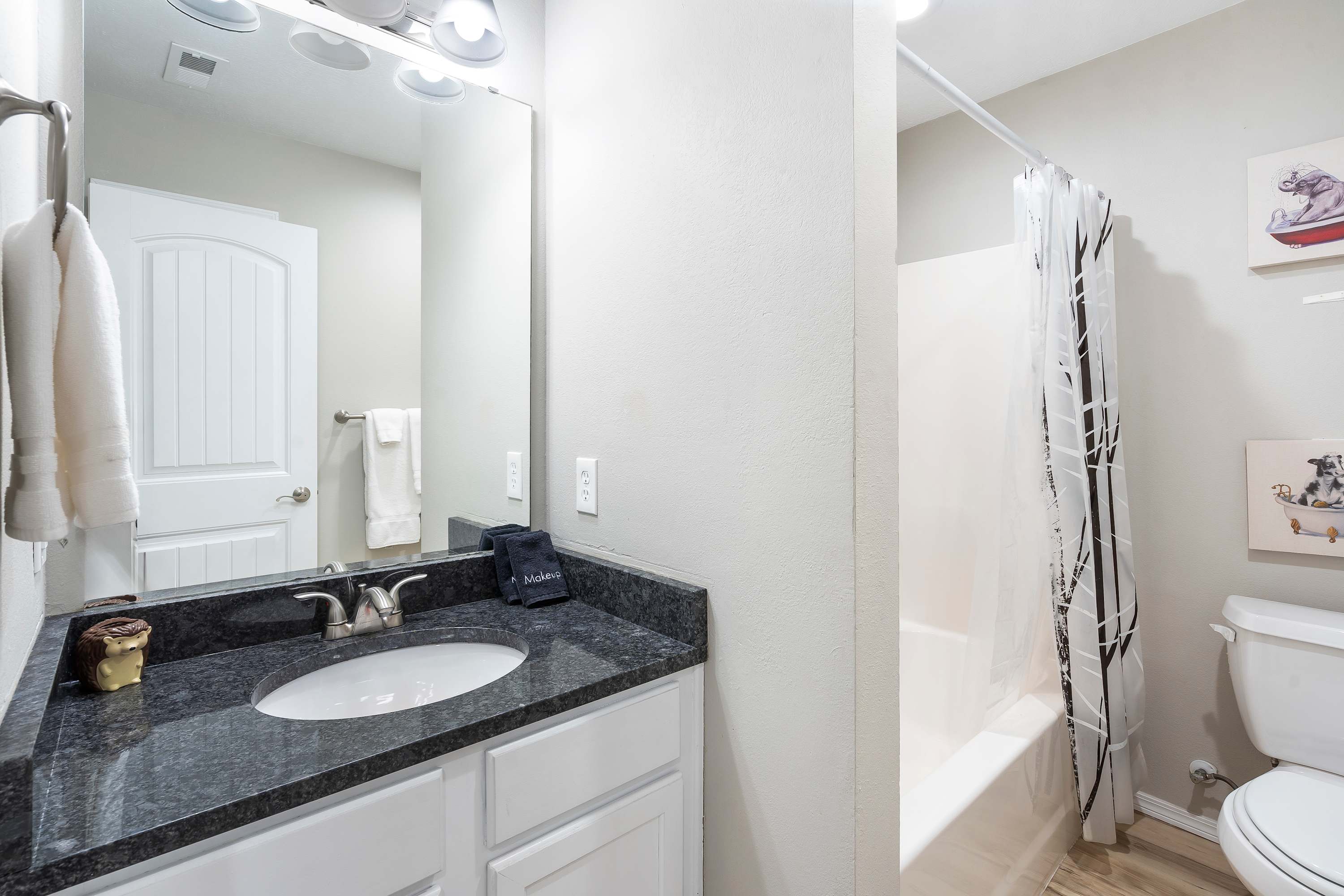 The home also includes an additional full guest bathroom with a single vanity and shower/tub combo.