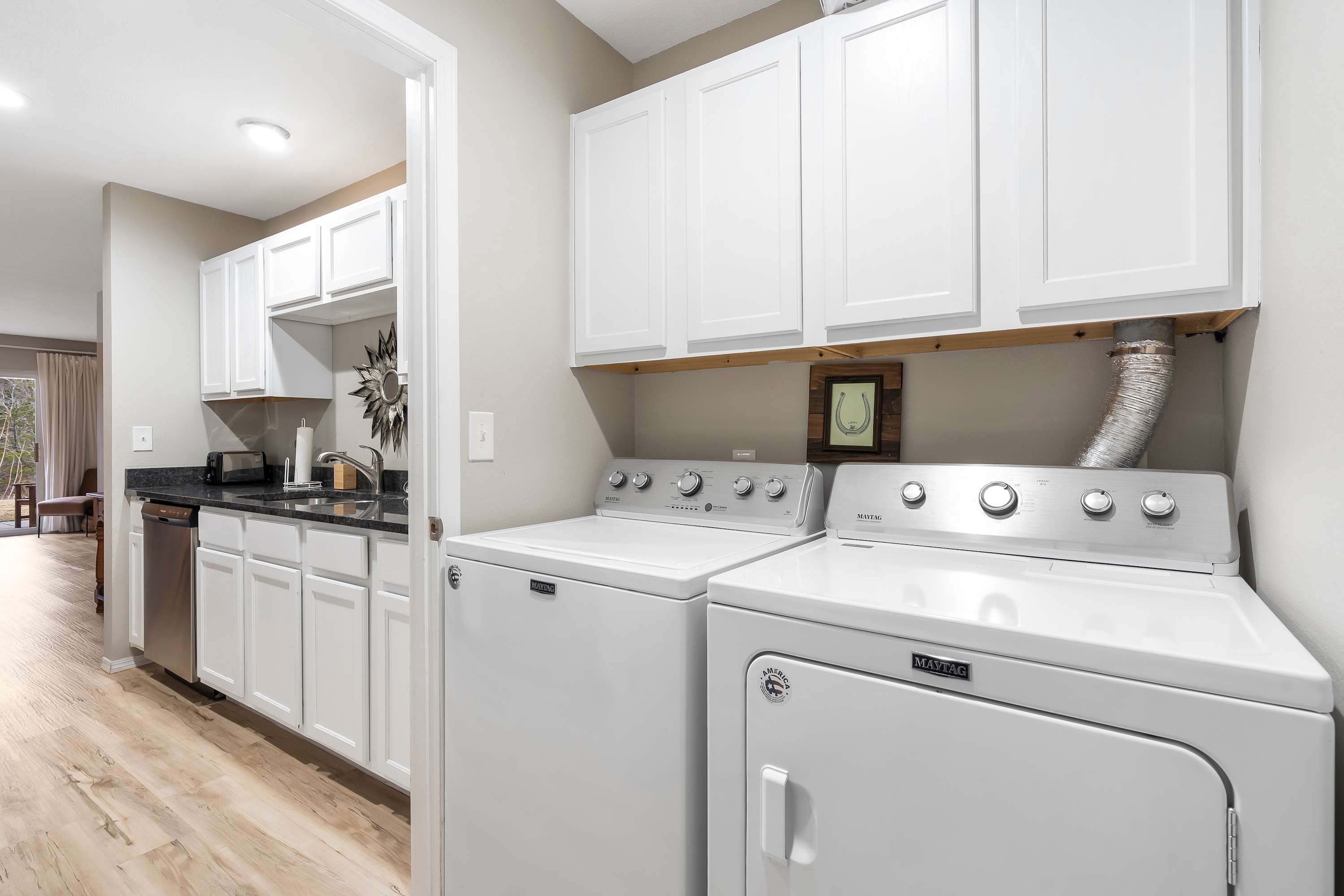 • Washer and dryer in home.
