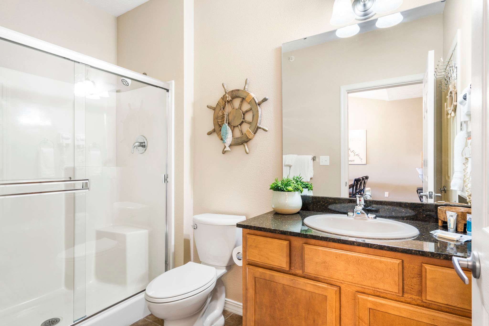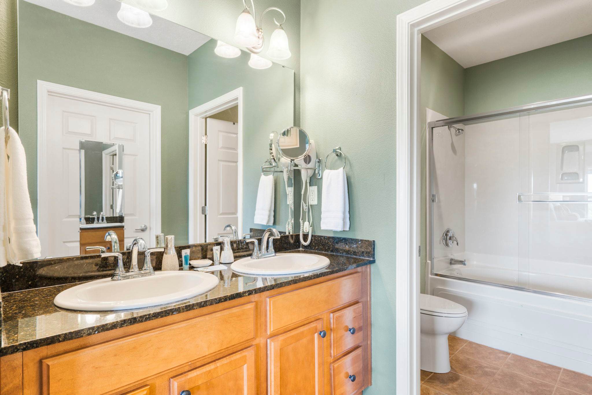 The home also includes an additional full guest bathroom with a single vanity and walk-in shower.