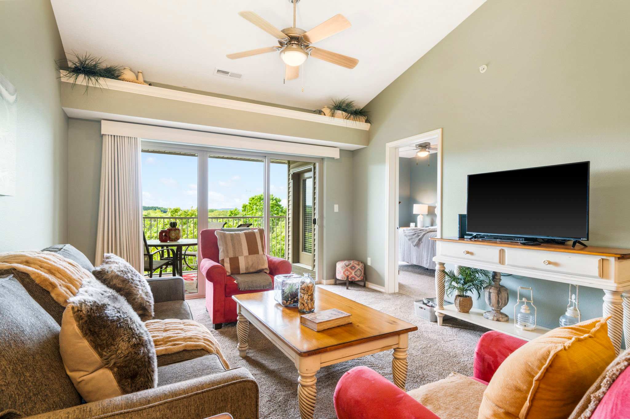 This secluded, 2-bedroom luxury condo will quickly become your favorite vacation spot, where peace and privacy meet tranquil surroundings, all just minutes of the electric attractions the greater Branson area has to offer. Enjoy the convenience of complimentary parking and a superb location, just a short distance from the area's finest attractions, during your stay at the home. Take in the sweeping sights and plan out the day’s activities from the home’s breezy shaded balcony while you sip on a fresh cup of morning coffee or a refreshing afternoon cocktail. When you’re ready to venture out, head east toward downtown Branson and plan to stop all along the way at the abundance of options for entertainment, shopping, dining, and more. There will never be a dull moment when you stay at Sunset Daydream!