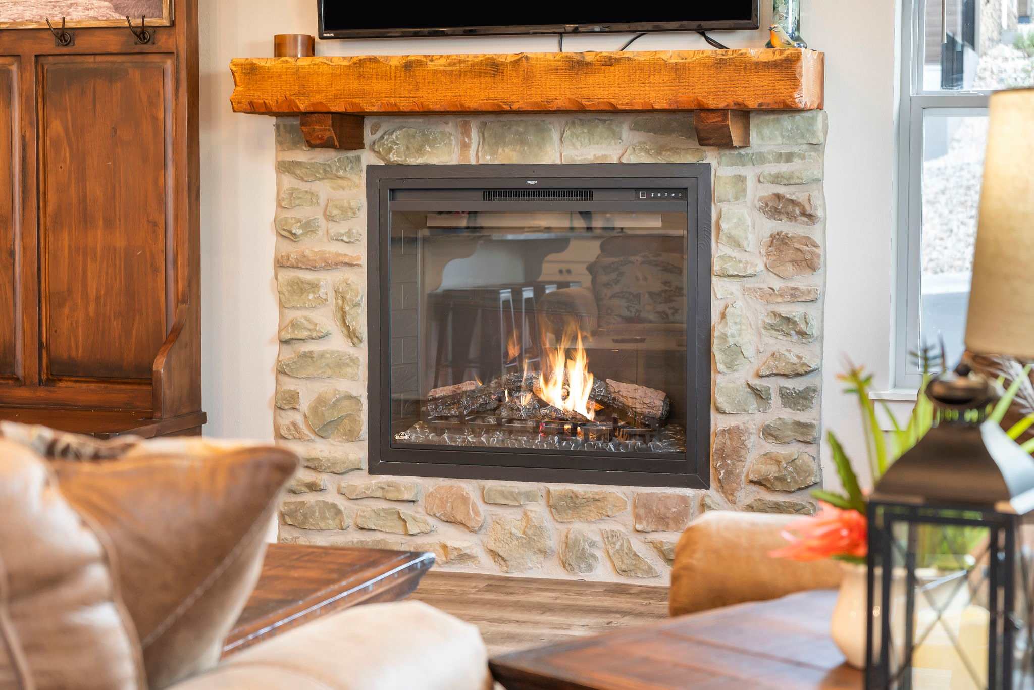 - Indoor fireplace