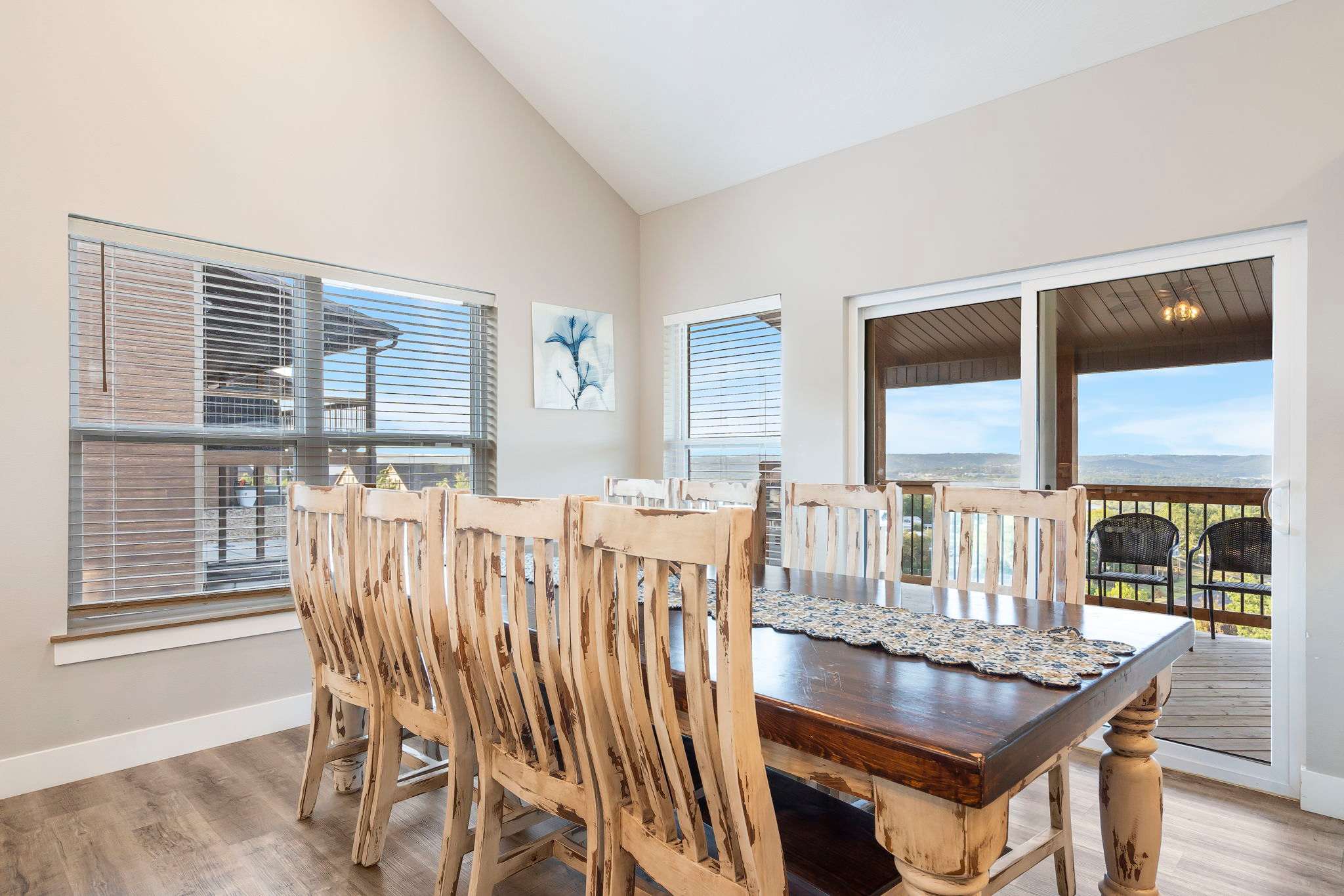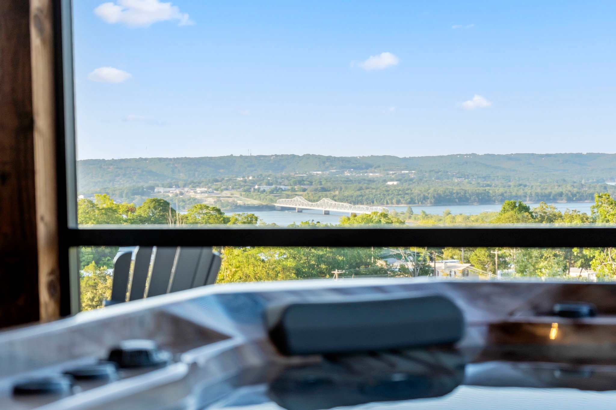 When you stay at A Birds Eye Bridge View, you will truly be in the center of it all! Tucked away in a forested area along the shores of scenic Table Rock Lake, this brand-new home is front and center to one of the most unique and impressive attractions of this area, with endless opportunity for water-centric activities. Housed within the Wilderness Mountain Resort, guests will also enjoy desirable onsite amenities such as 2 seasonal outdoor pools, an indoor pool, seasonal lazy river, treehouse playground, half basketball court, pickleball court, and communal firepit for winding down your days while toasting up some delicious s’mores. When you’re ready to head into Branson, you’ll be just a quick jaunt from the cities biggest thrills including Silver Dollar City (20 minutes), the Titanic Museum (25 minutes), and of course, the eclectic downtown area bustling with shopping, dining, and live music (30 minutes).
