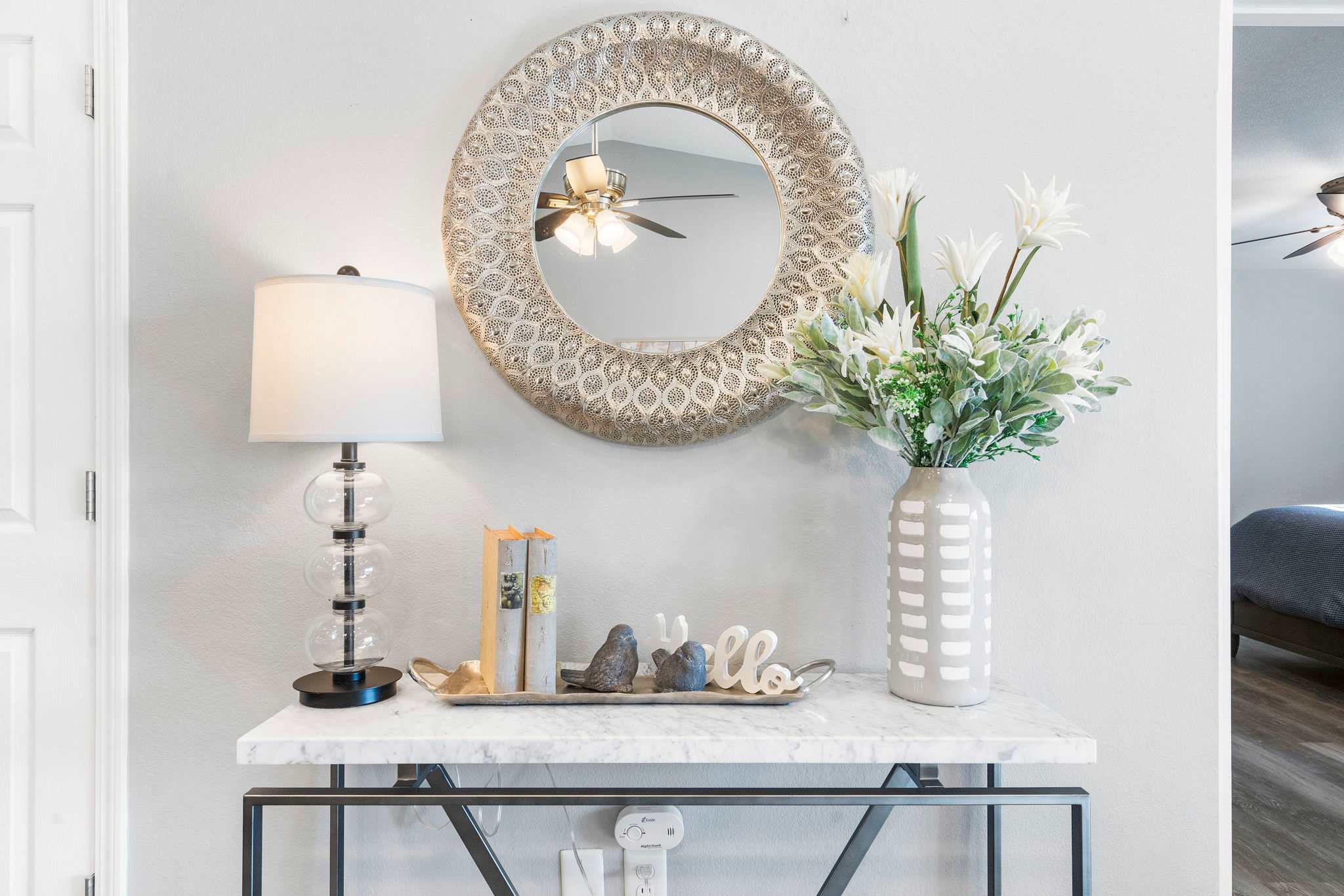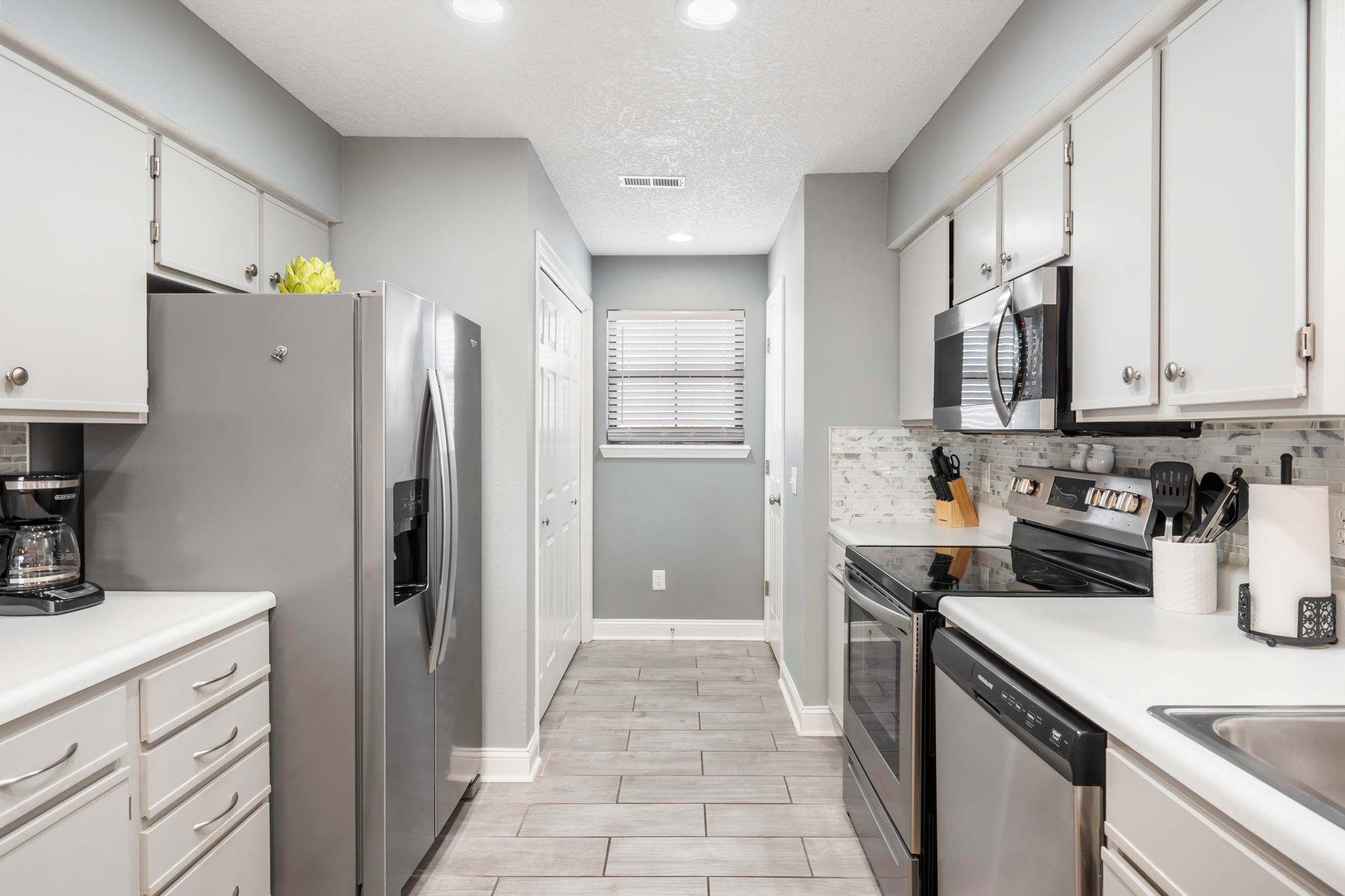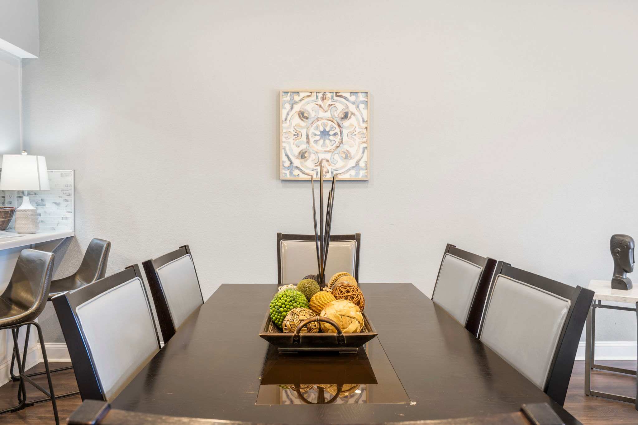 These lovely upper-level condos feature bright and fresh interiors, immaculately furnished and decorated to blend both comfort and design. Spacious kitchens can accommodate a crowd, showcasing updated appliances and cabinets stocked with all the cookware and dining ware you’d need should you decide to prepare delicious homecooked meals. Ample counter space can host meal prep and staging or serve as informal dining on the high-top barstool seating. More formal meals can be taken together at the elegant dining room tables, both offering seating for 6. At the end of long days spent exploring, the living rooms are inviting spaces for an immersive movie night while seated around the electric fireplaces on plush sofas or armchairs. Each home has its own private, shaded balcony for enjoying a night cap or your fresh cup of morning coffee in the fresh air overlooking scenic views of the golf course and the mountainous landscape.