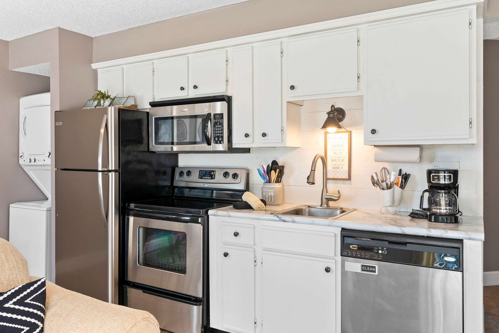 • Washer and dryer in home.