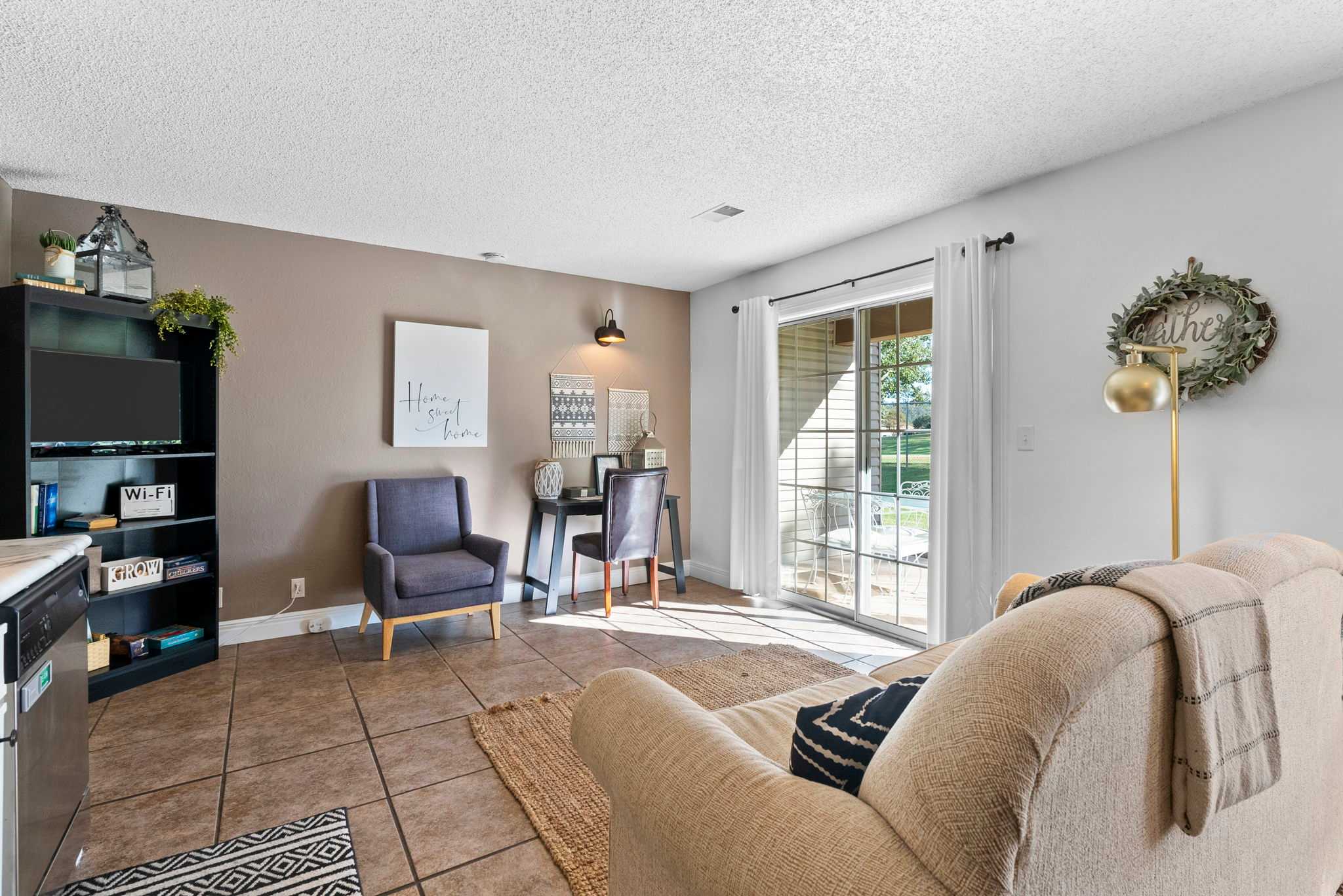 This charming condo is in the absolute best location, close in proximity to the area’s hottest destinations. Whether you’re off for a day of thrills and adventure at Silver Dollar City amusement park, spending hours exploring the vibrant music scene, shopping, and dining in downtown Branson, or elevating your education at the Aquarium at the Boardwalk or the Titanic Museum, you’ll be just a few minutes from all of it and more. Fishing enthusiasts among you will have their choice of picturesque spots to drop a line, from expansive Table Rock Lake to winding Lake Taneycomo, all the while surrounded by the lush Ozark landscape. If you’ve brought your golf clubs along, just wait until you see the variety of surrounding championship golf courses available for you to work on your swing! When you’re ready to unwind for the day, the home’s ground floor patio offers serene views of the surrounding landscape, with a café table for 4 - perfect for enjoying a quiet glass of wine or a meal al fresco.