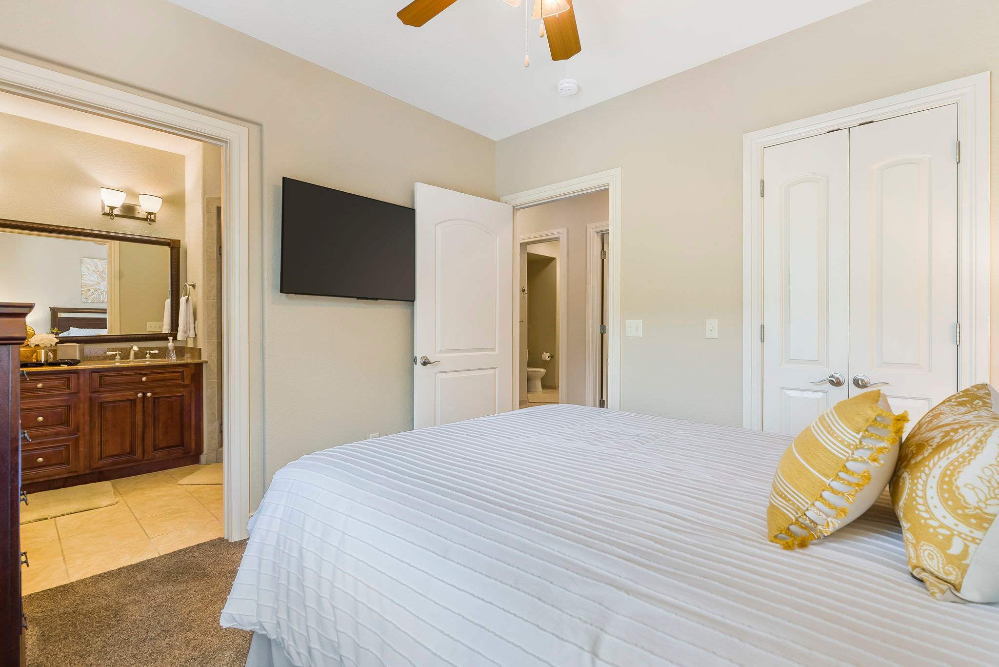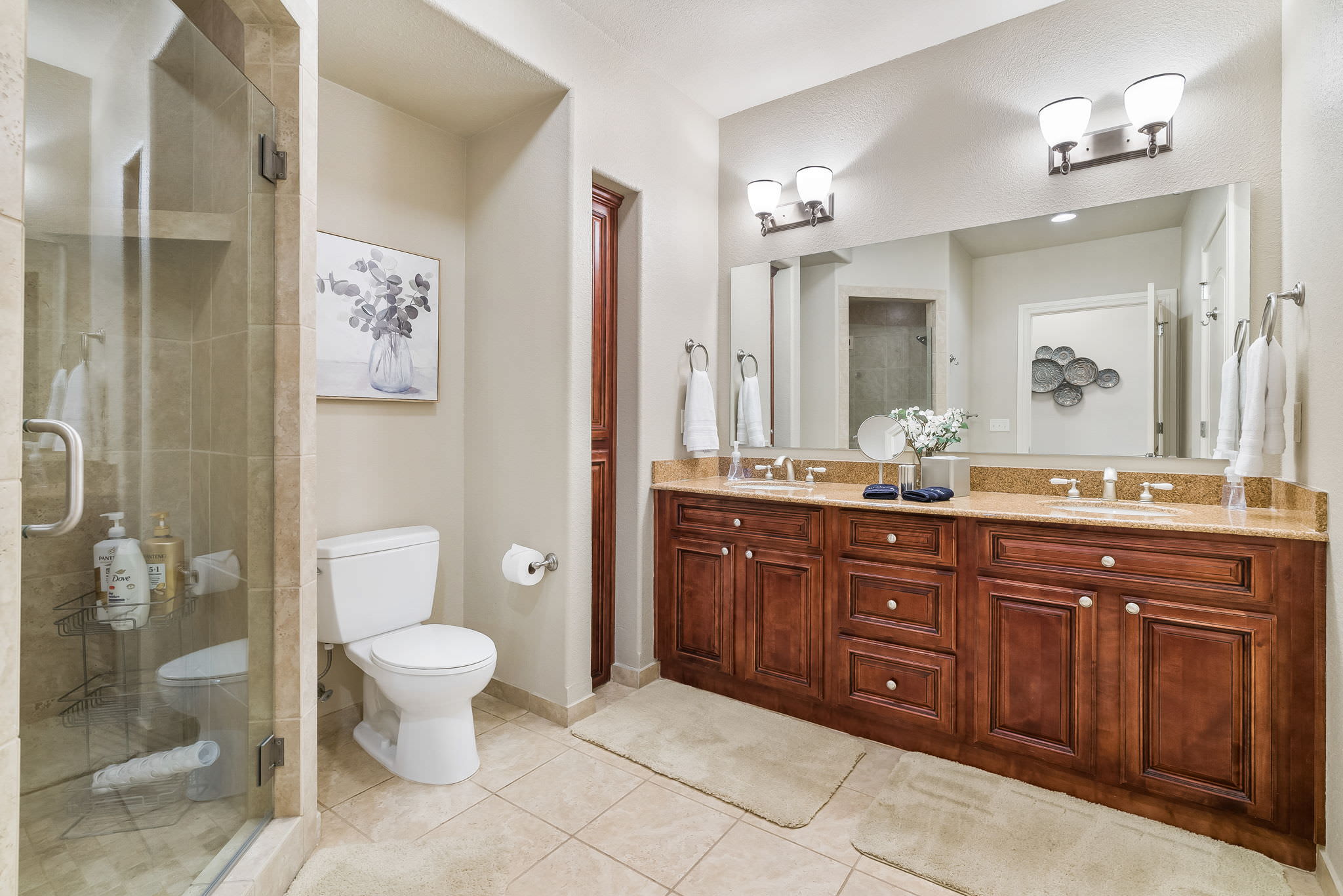 Each bedroom also features its own ensuite bathroom, beautifully updated with granite countertops and tiled walk-in showers.