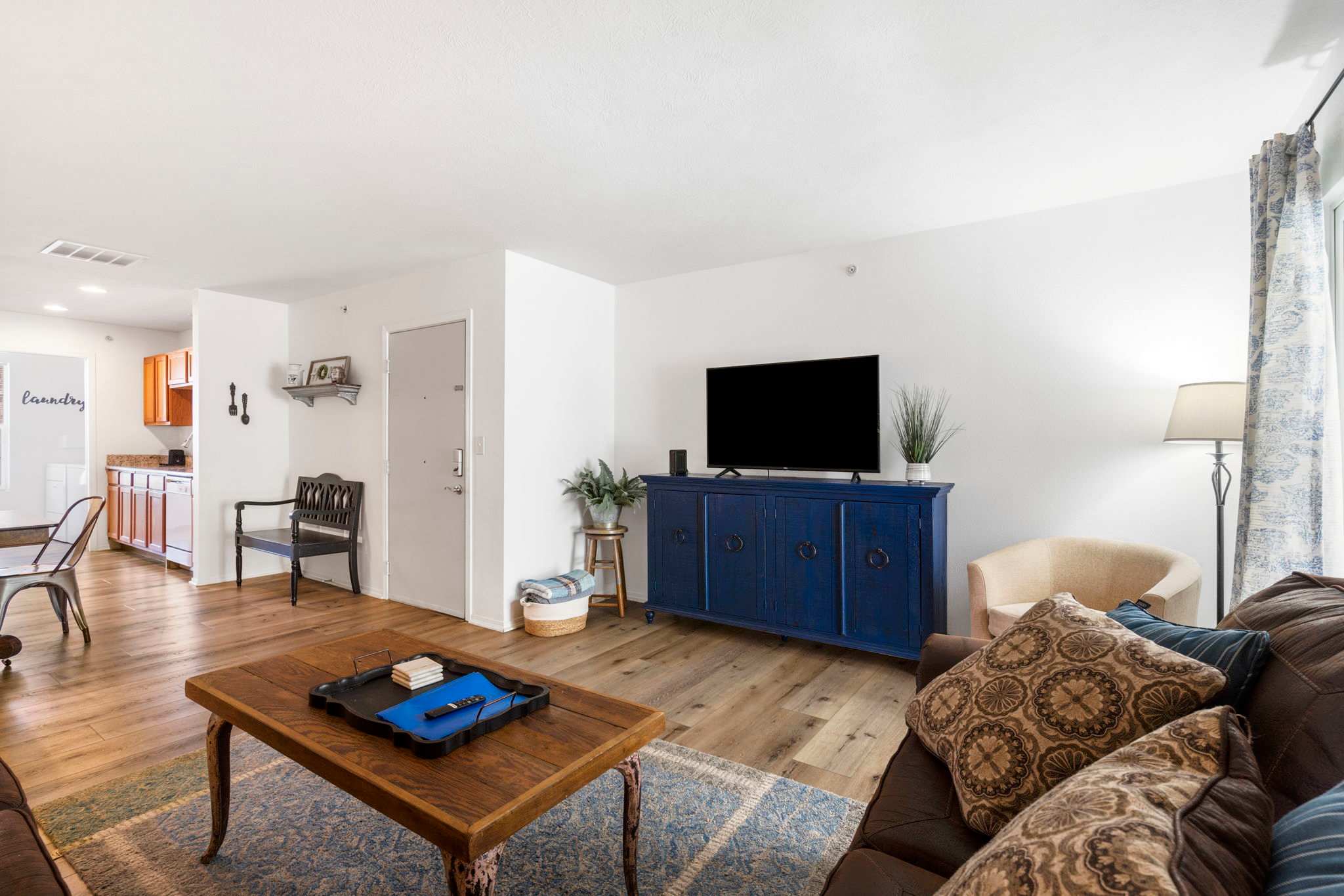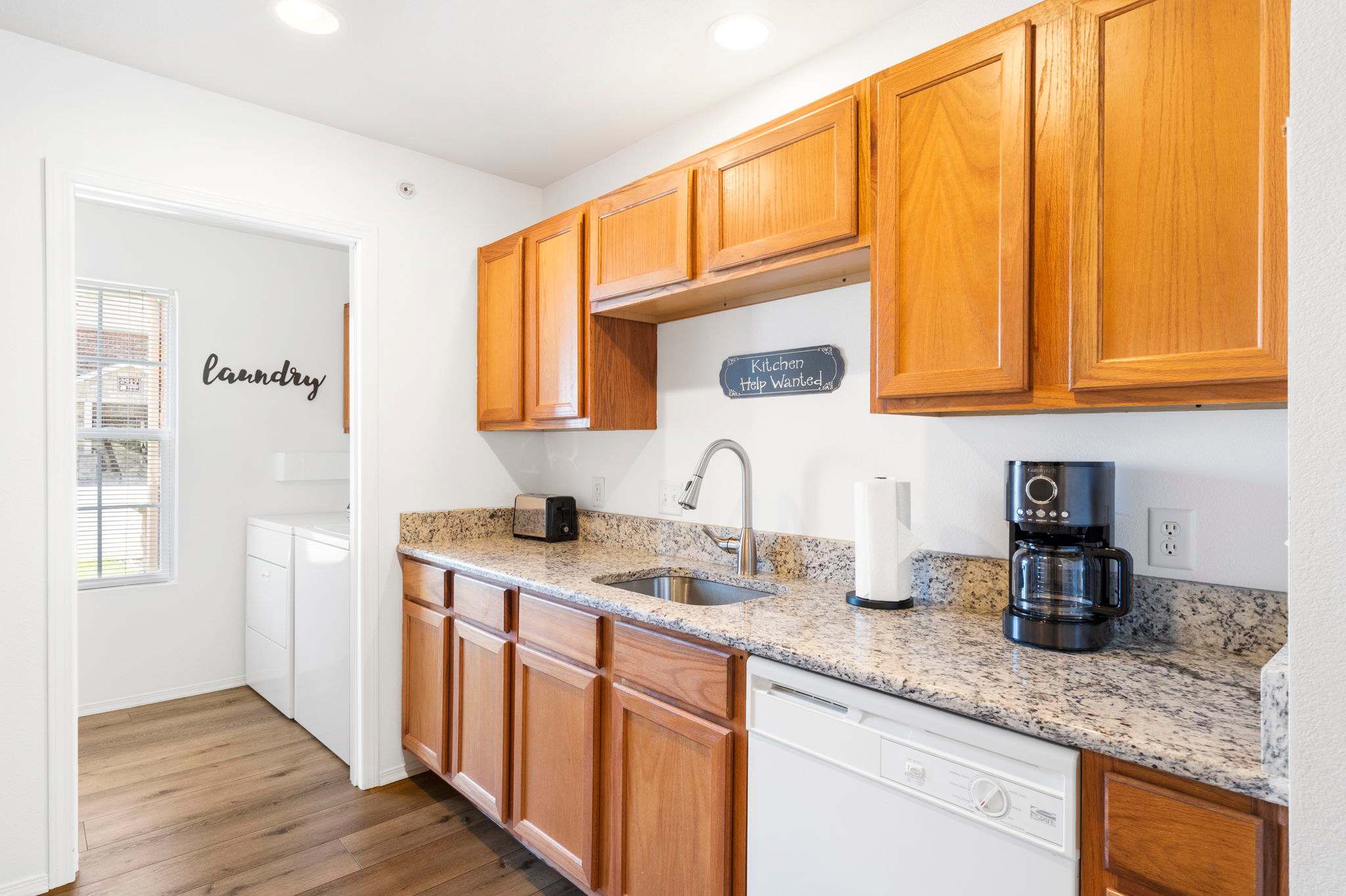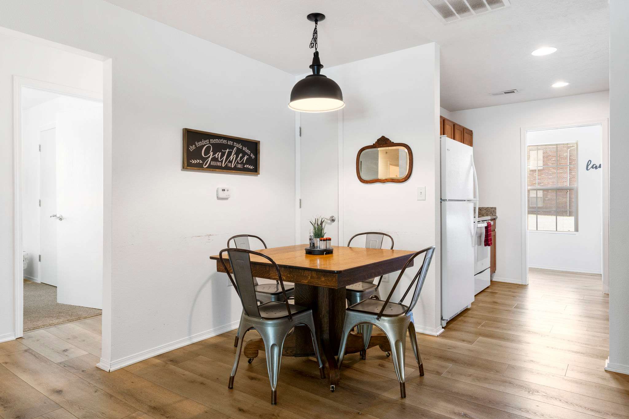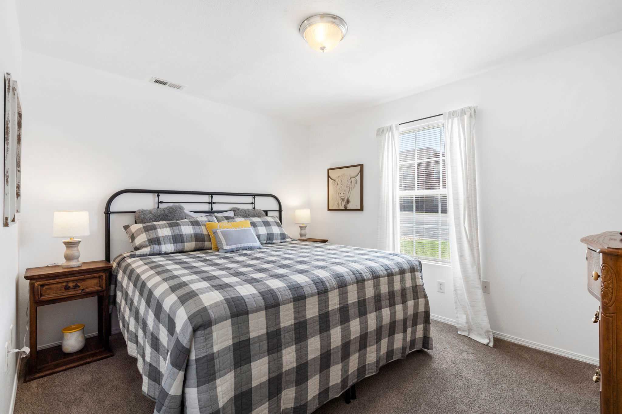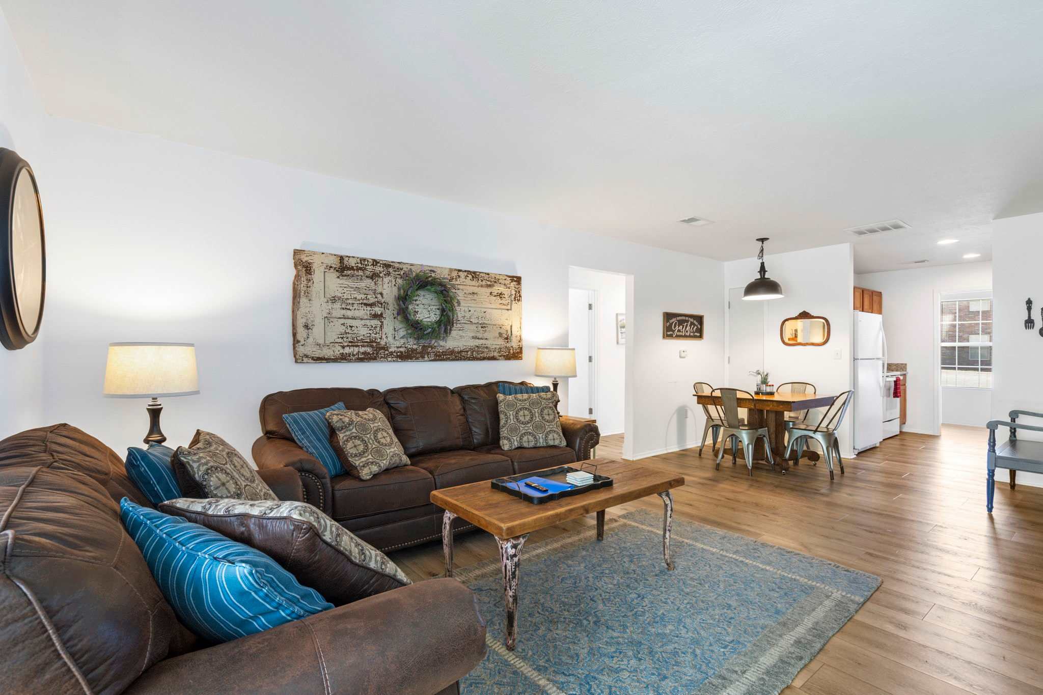 You’ll feel immediately at home among the beautifully furnished spaces, accented by classic design and décor. Each space has been curated to maximize your comfort and stocked full of amenities to make your vacation special. In the living and dining spaces, conversation can flow freely courtesy of the open concept floor plan. The living room features sofa seating and a smart TV, a cozy space to relax during downtime in the morning or evening hours. Come together for meals at the dining room table with seating for 4, prepared in the spacious, well-equipped kitchen. Here you’ll find all standard appliances, drip coffee maker, cookware, and dining ware necessary for preparing homecooked meals should you so choose. When you’re ready for a little more of that fresh Ozark air, a shaded patio offers an additional dining table and chairs for evening cocktails or meals al fresco.