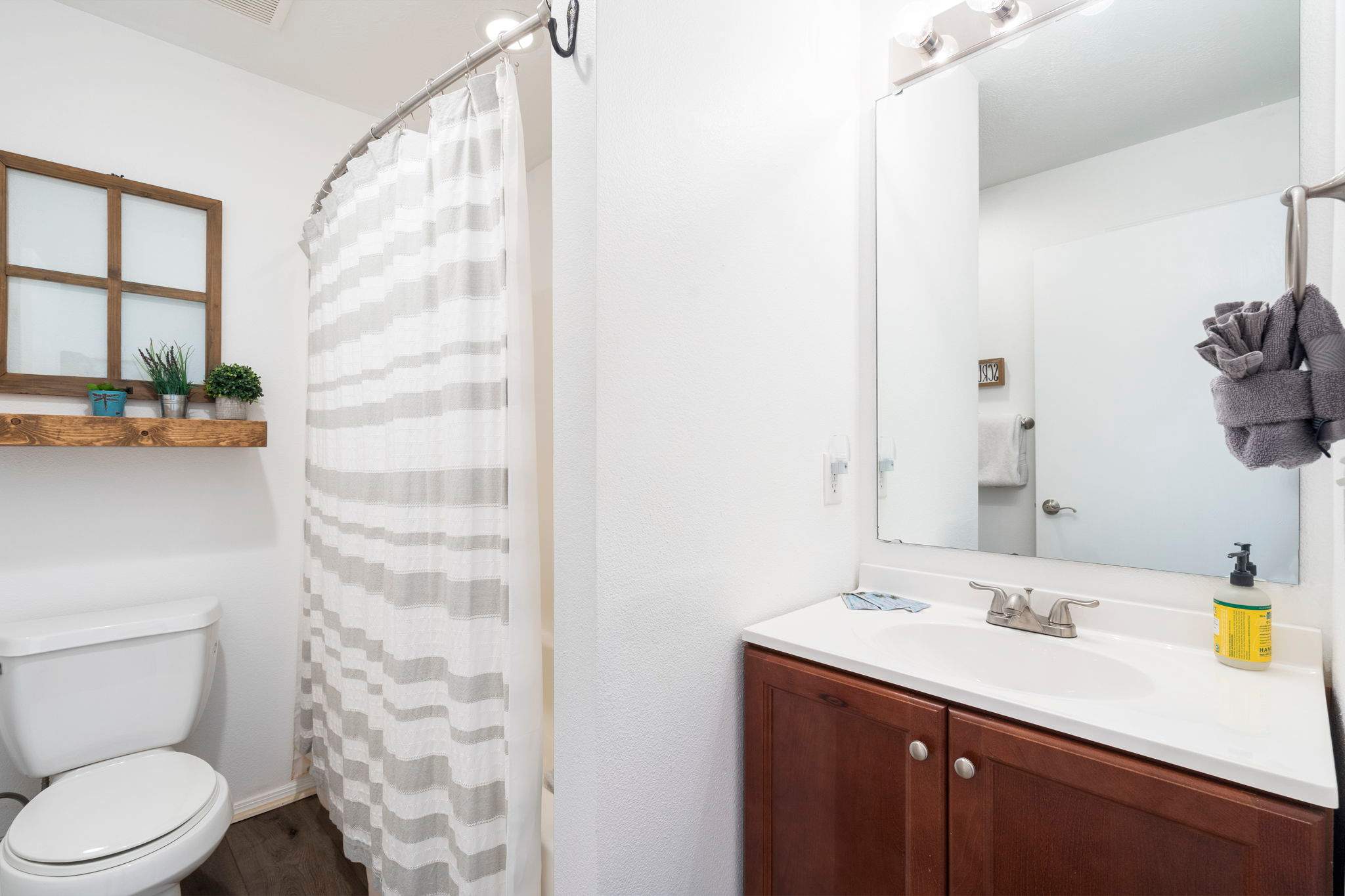 The home also includes 2 full guest bathrooms, both with single vanities and shower/tub combos.