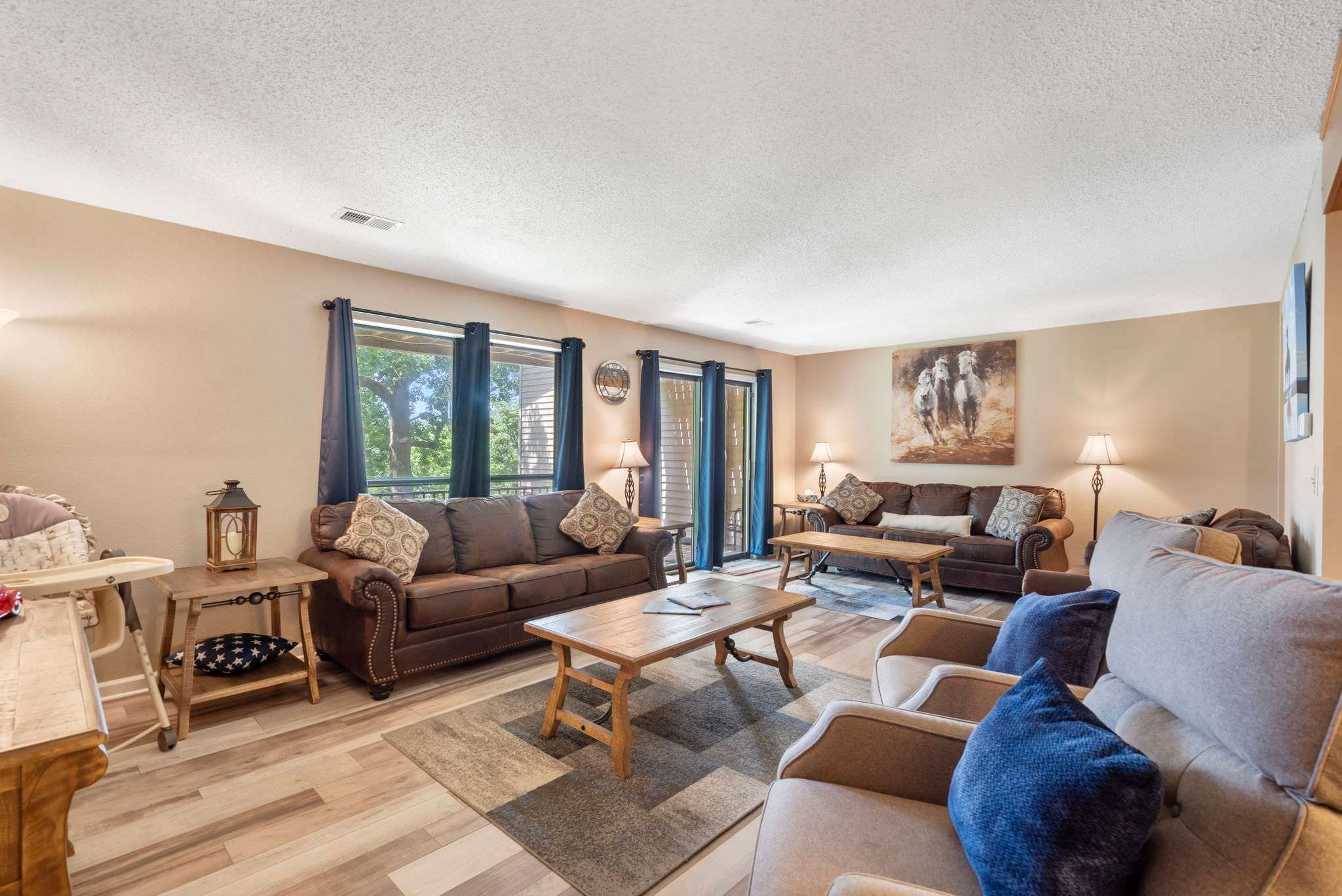 This home comfortably sleeps 8 guests between 3 private bedrooms and a queen-size sofa sleeper in the living room.