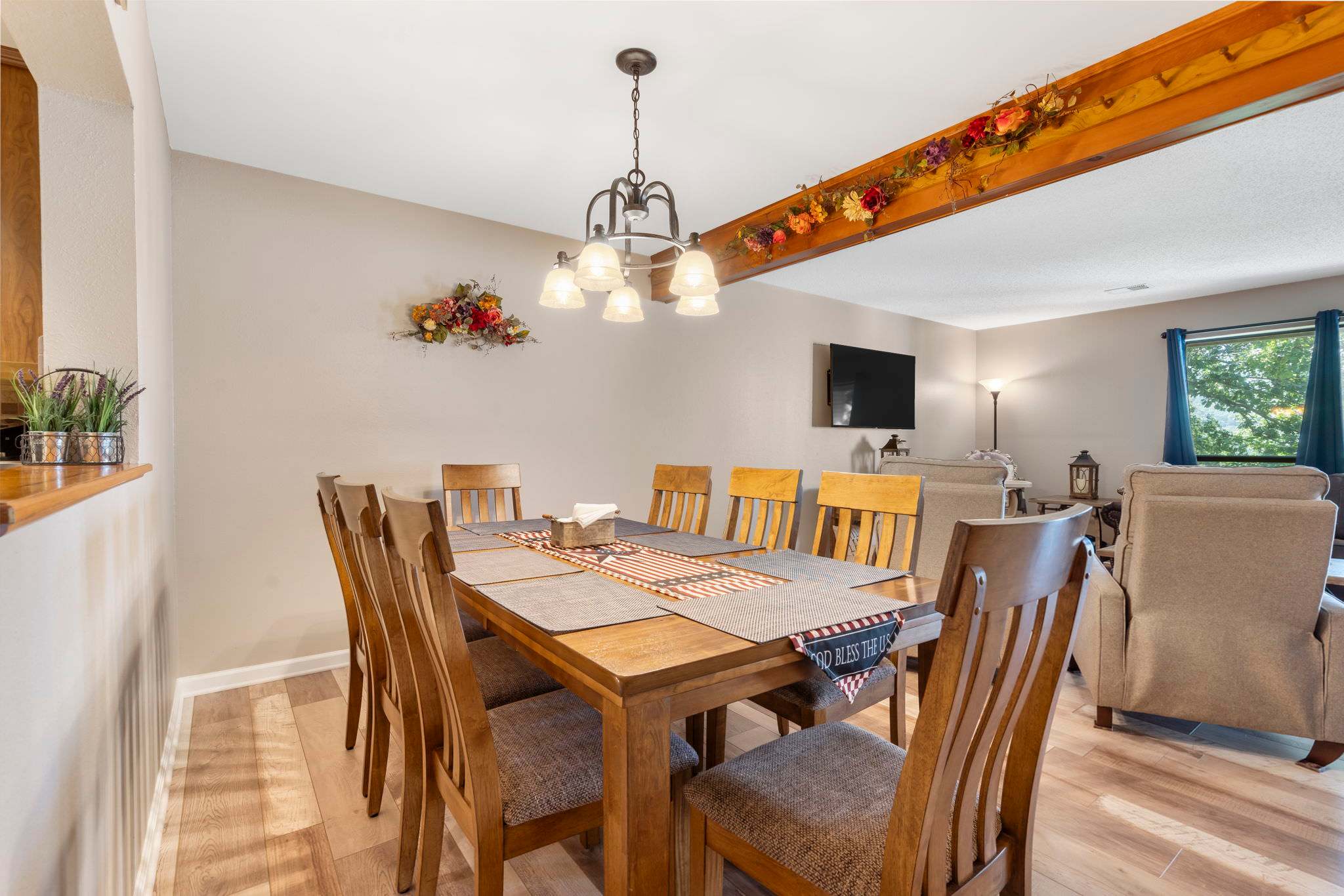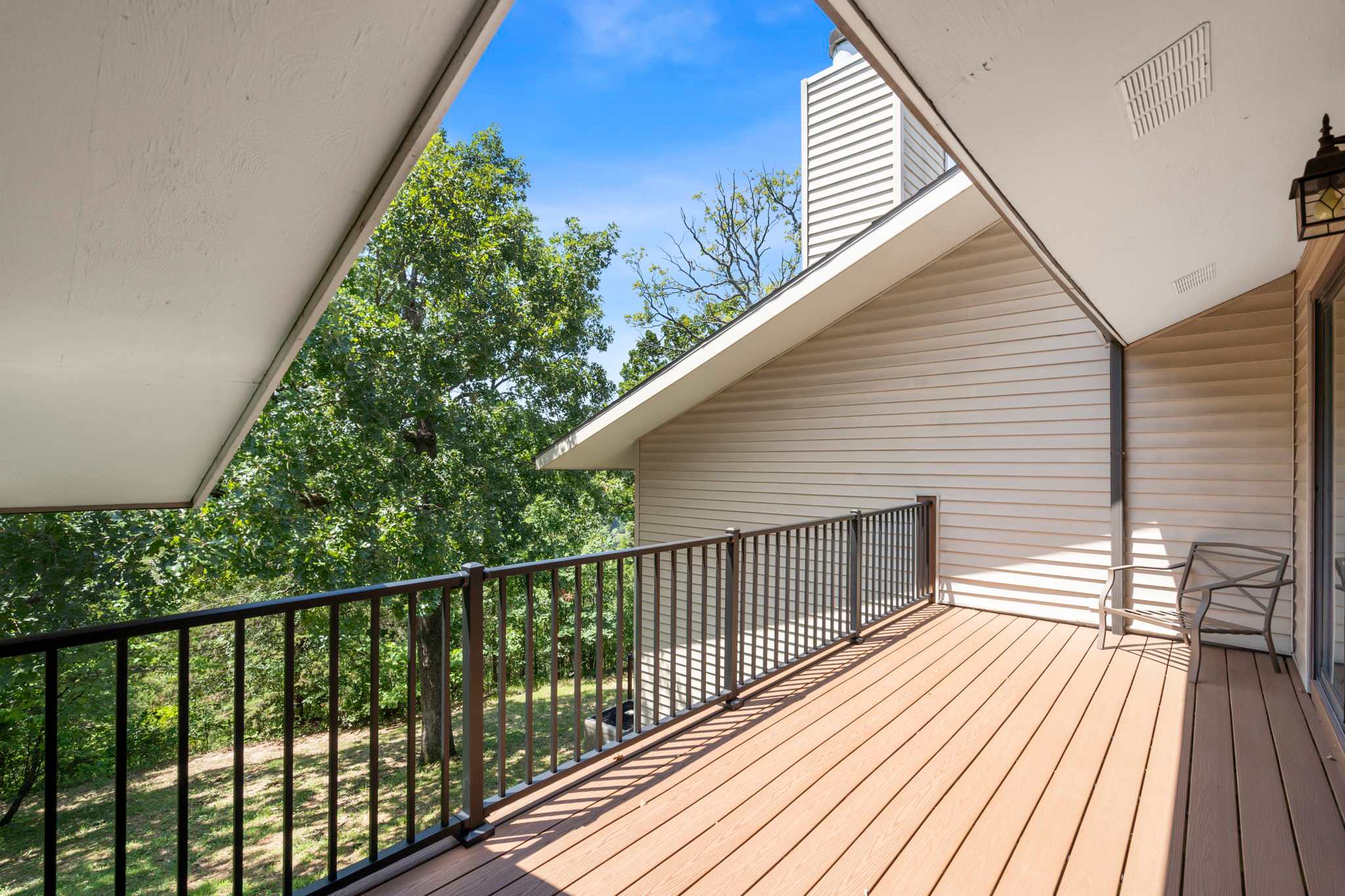 When you’re ready for an afternoon of relaxation, the home provides many comfortable spaces to choose from. A generous living room offers plentiful sofa seating able to accommodate the whole crew for games or a movie night. The open kitchen is fully equipped with all standard appliances, drip coffee maker, cookware, and dinnerware. Whether you decide to prepare homecooked meals or need a space to store snacks, this space can accommodate either and everything in between. Enjoy your well-earned meals at the dining table with seating for 8. Back outside, the home offers a spacious patio and balcony for lounging in the fresh Ozark air, enjoying your morning coffee or an evening cocktail among the natural scenic beauty.