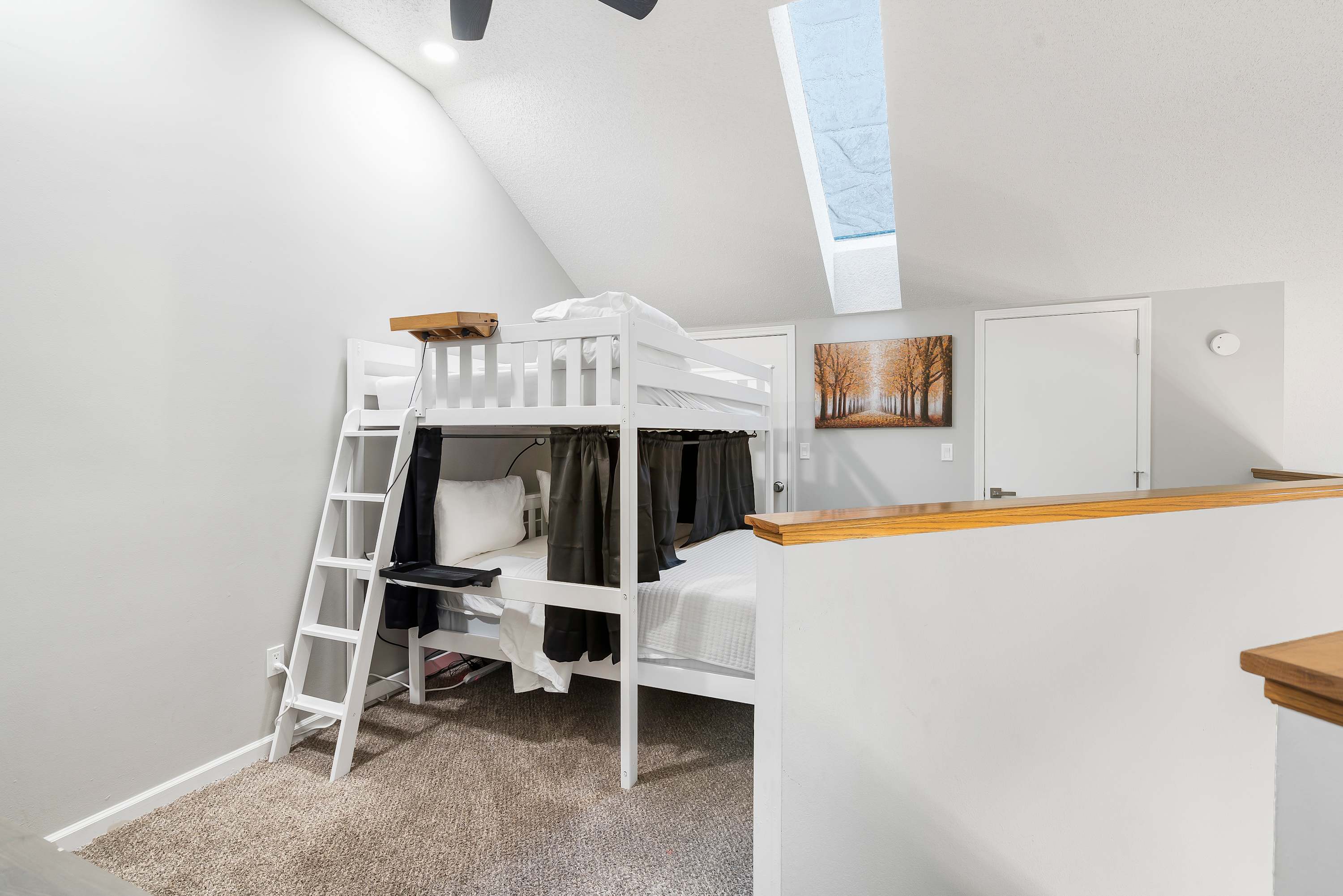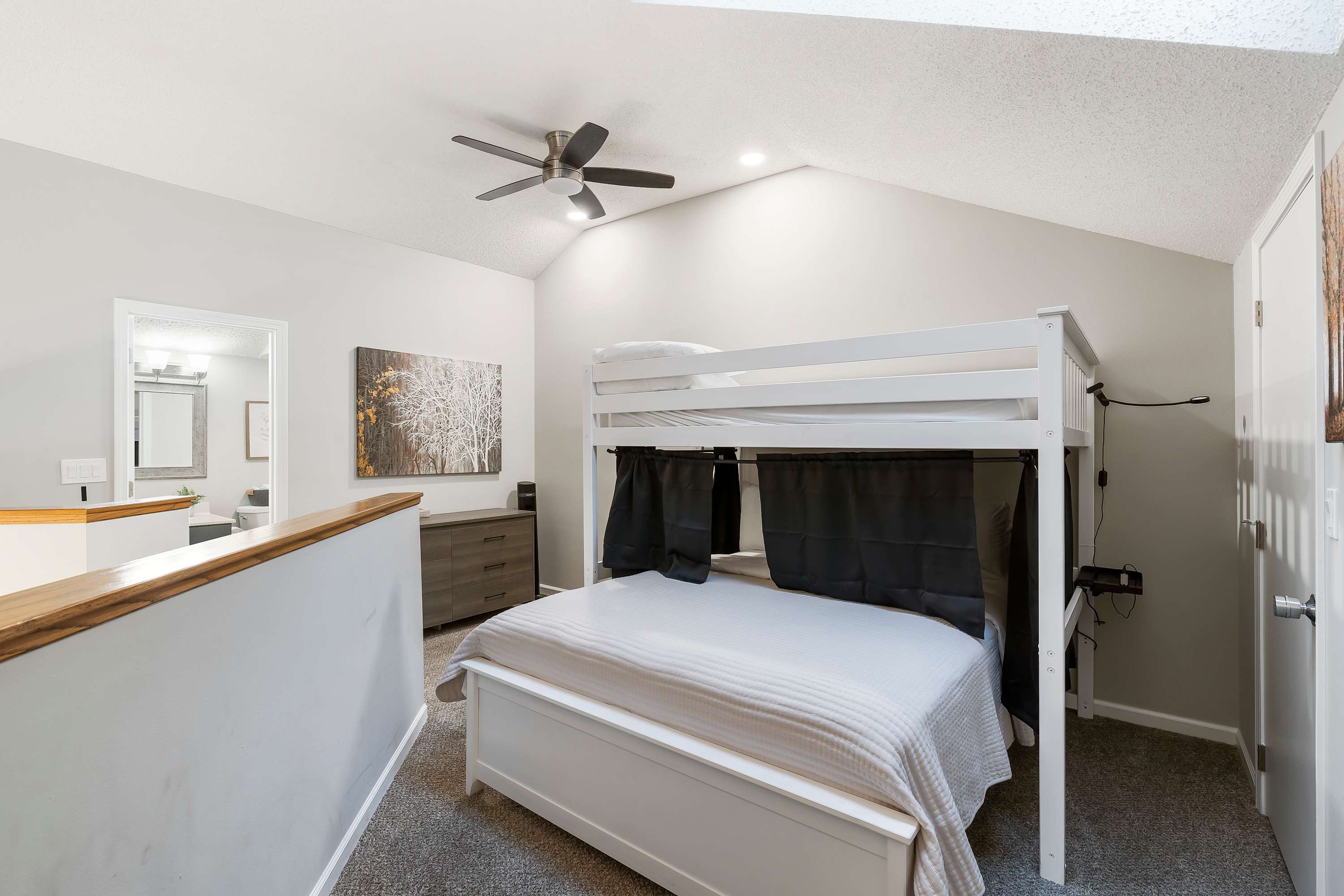Bedroom #3 is lofted and includes a full over queen, and an ensuite bathroom with a single vanity and walk-in shower.