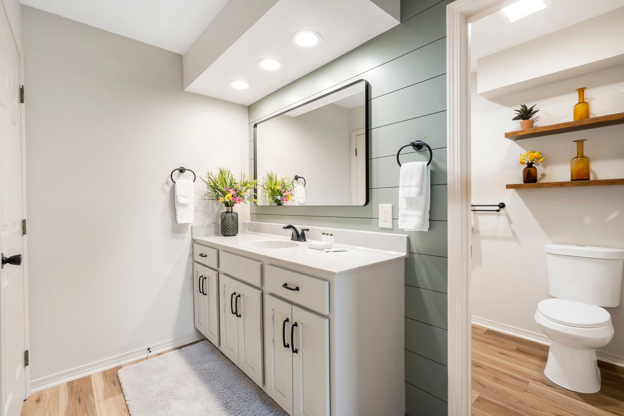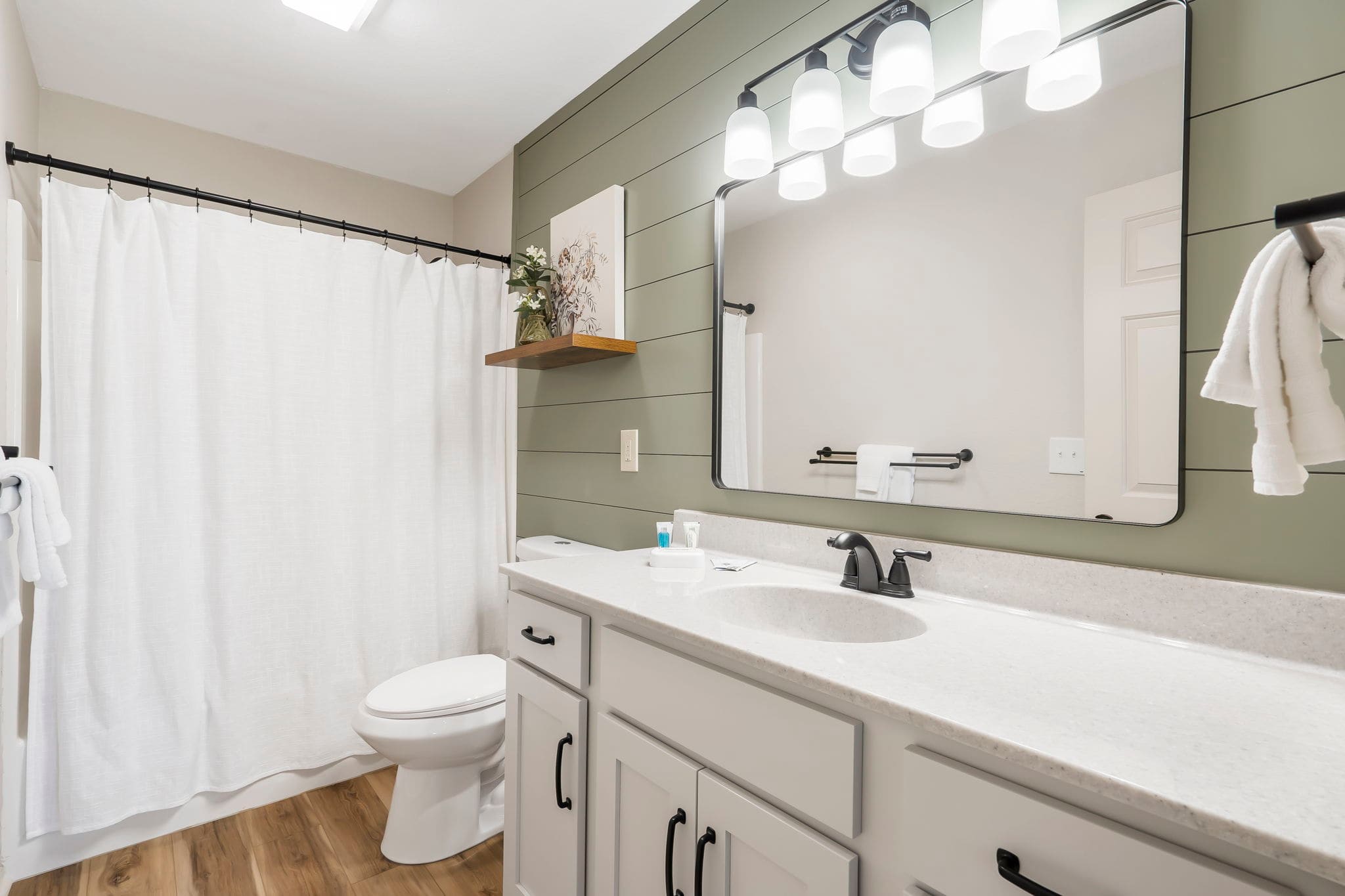 The home also includes a second full bathroom with a single vanity and shower/tub combo.