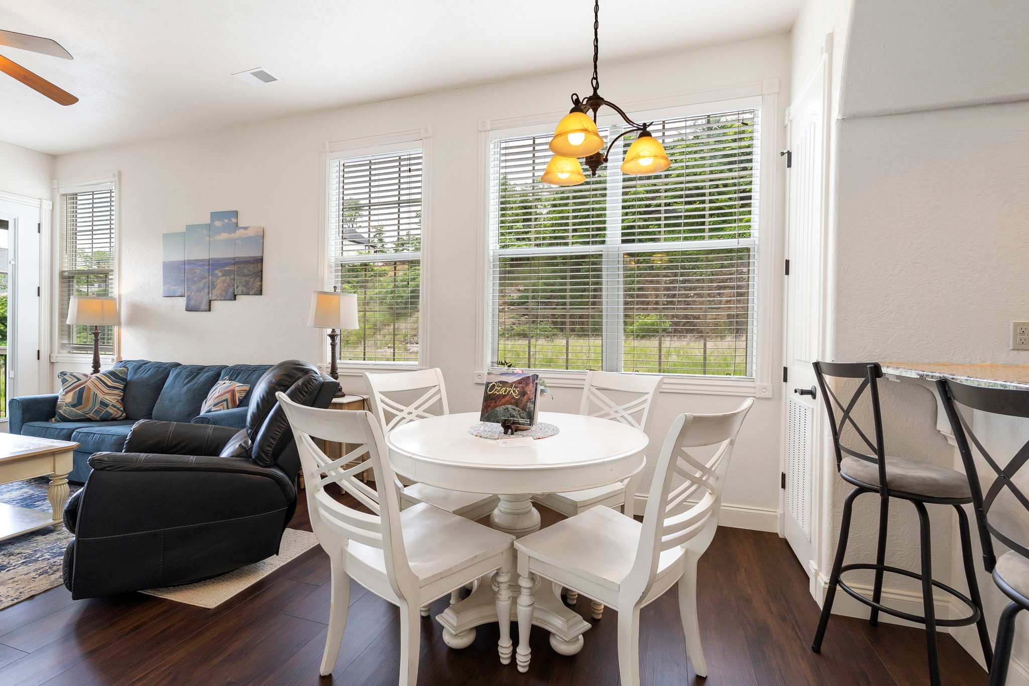 When you’re ready for some more of that fresh Ozark air, step outside onto a private patio with seating for two and enjoy the gorgeous scenery.