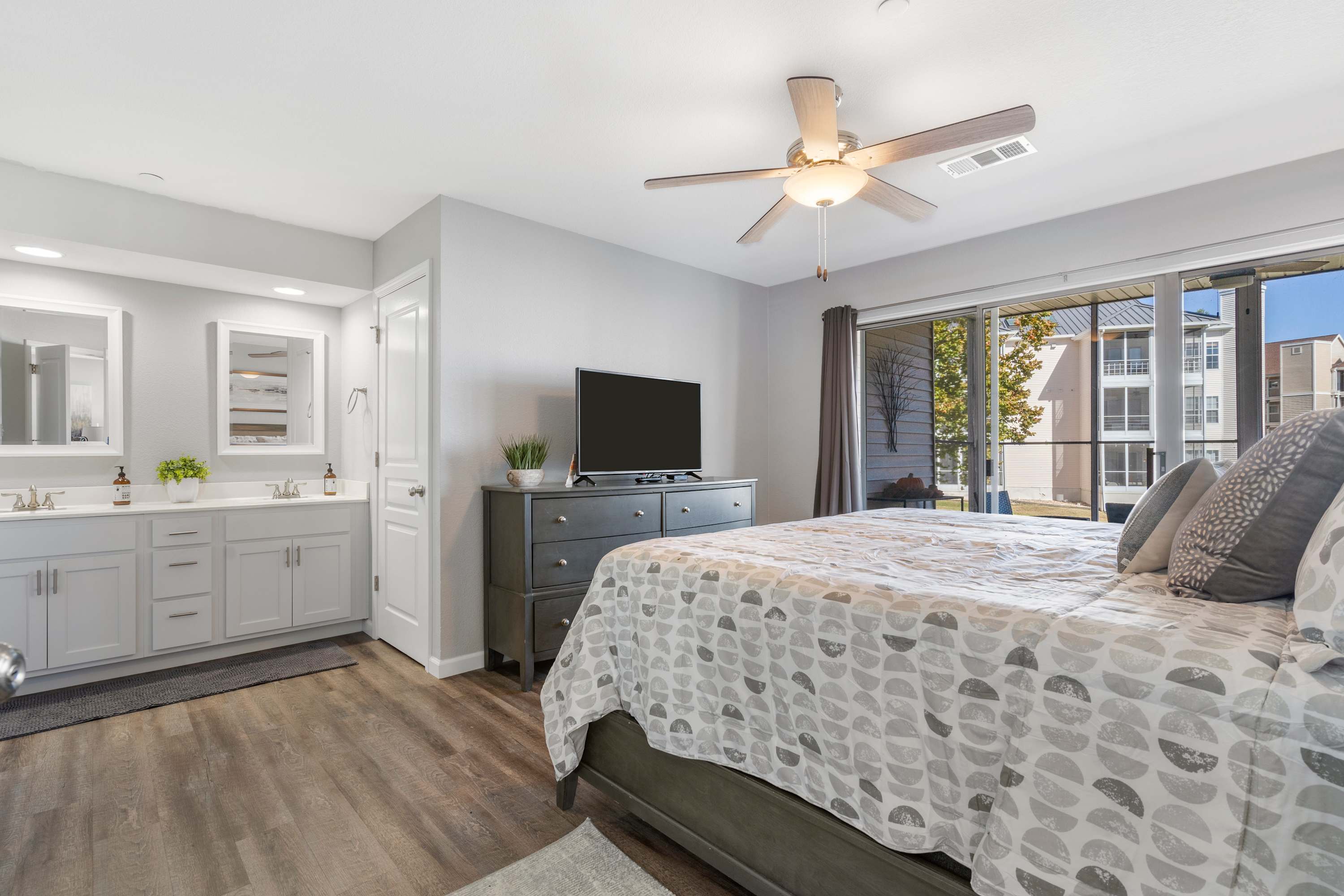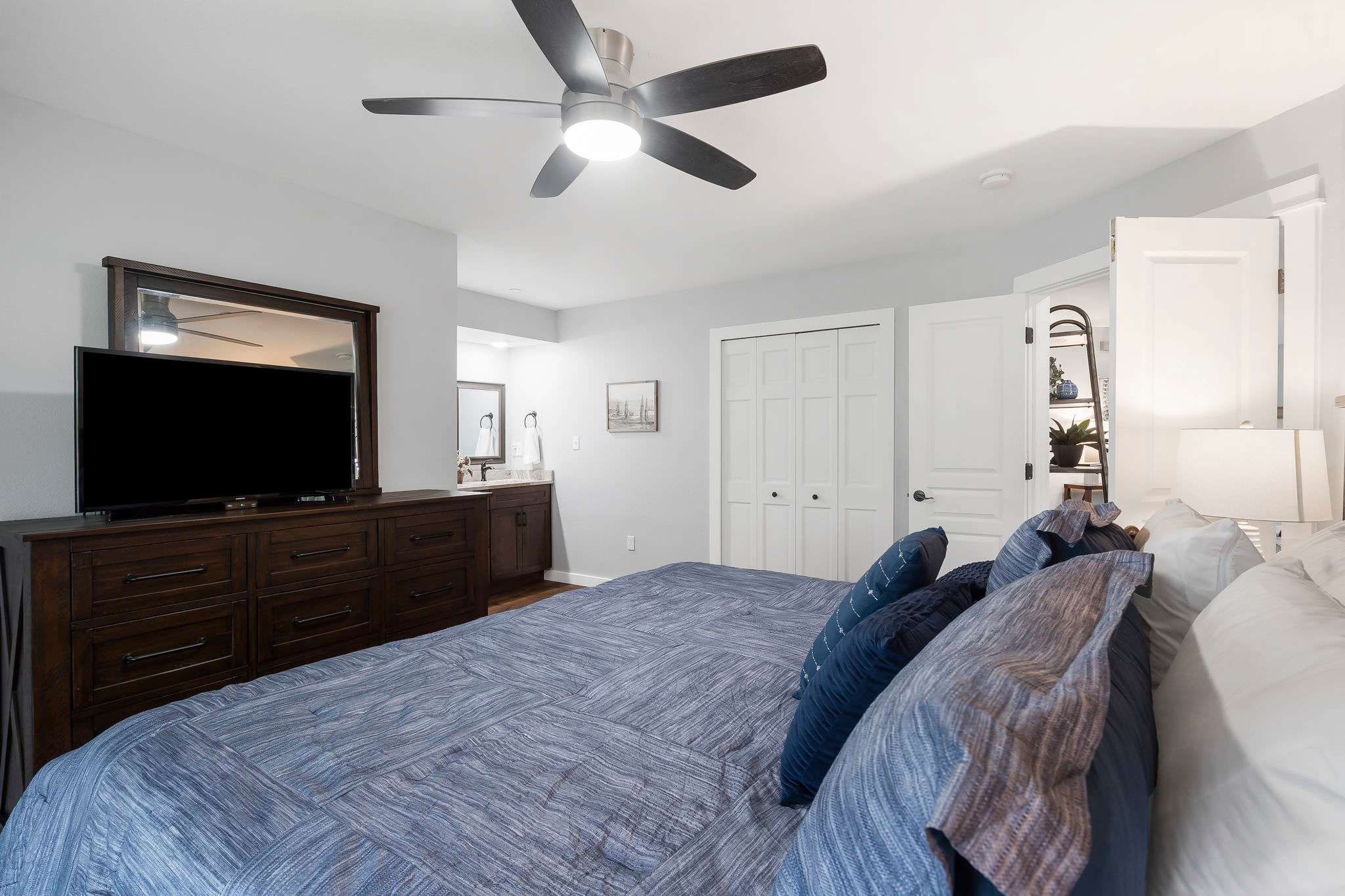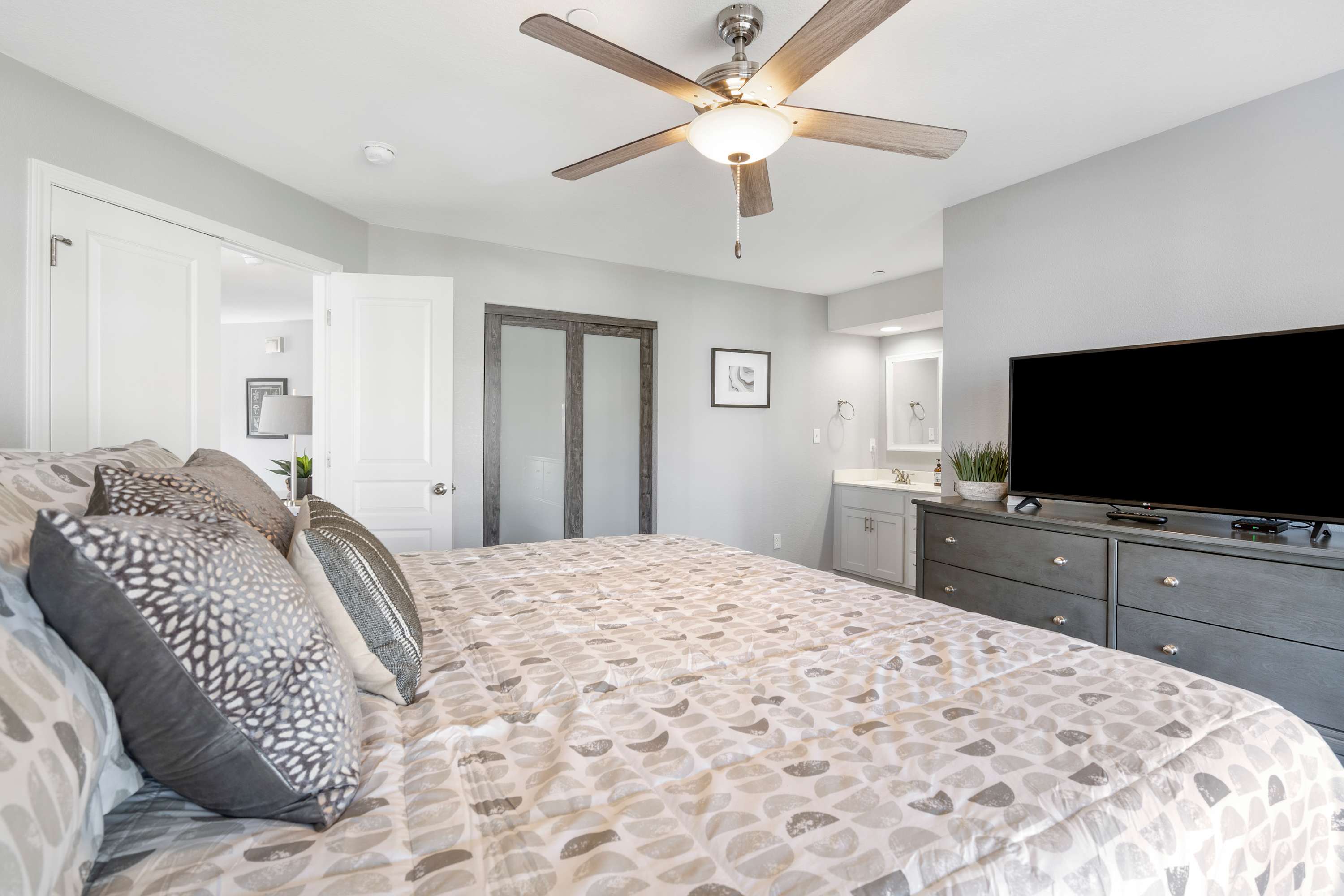 - Bedroom #4 has a king size bed, tv, and ensuite bathroom with dual sinks and walk-in shower.