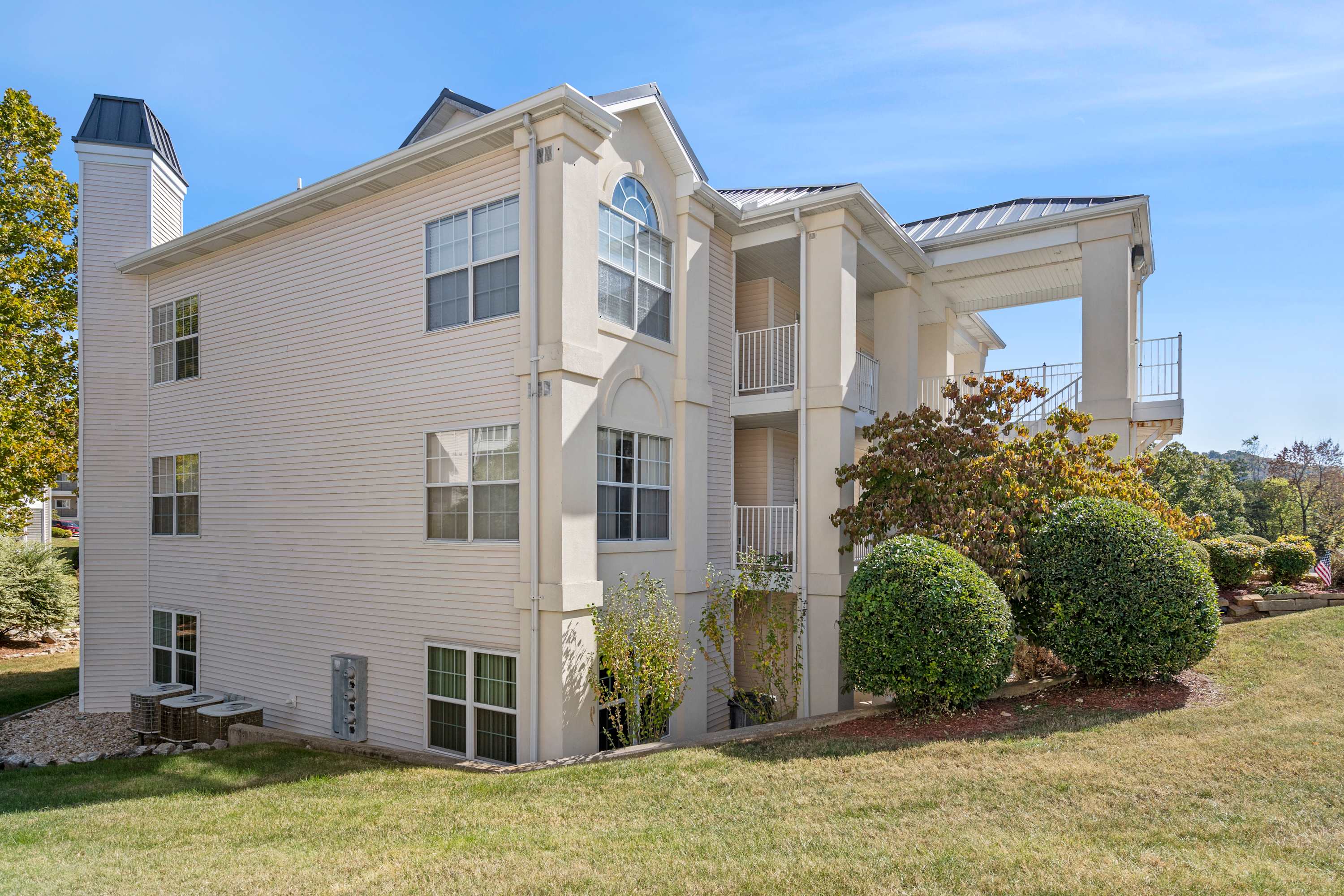 This is a dual rental consisting of 2 separate condo units in the same building, perfect for accommodating large groups! Your group vacation will be filled with quality time together, while at the same time, everyone has their own private space to retreat into. In addition to a prime location near all the best of Branson, these standout homes feature quaint and charming sunrooms that will be a sure highlight of the trip. They are a delightful addition to the homes and offer a picturesque setting where you can relax and soak up the beauty of the sweeping grounds. Equipped with plush seating, an overhead fan, and captivating views over the serene property, these breathtaking spaces are ideal for spending time with family and friends. Brookside Duo is the epitome of seamless indoor to outdoor living, and its luxurious amenities make it the perfect choice for your next weekend getaway to Branson!