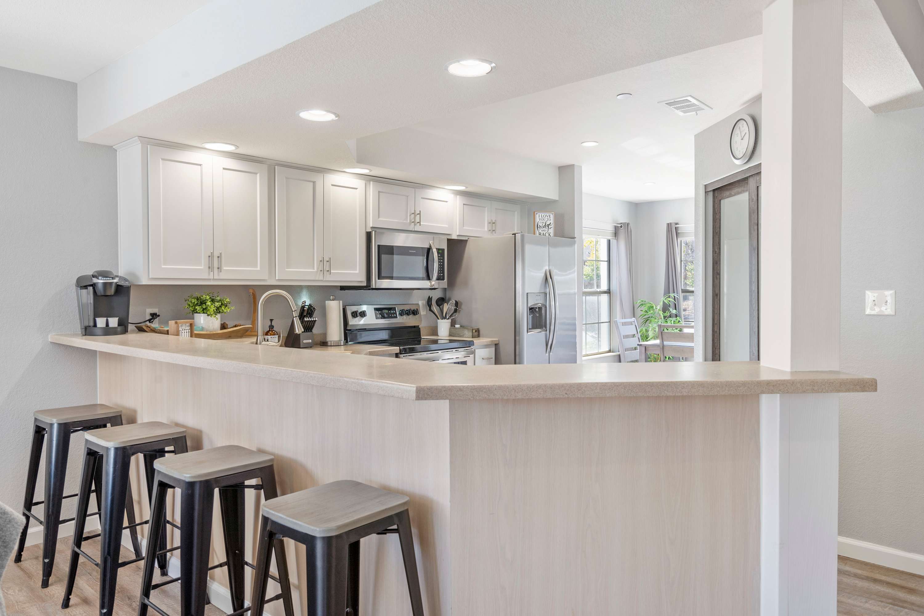 As soon as you walk through the door, you'll be transported to a world of comfort and relaxation. Plush couches await in each living area, perfect for unwinding after adventure-filled days. Of course, if you're looking for entertainment, each space is equipped for movie nights with a large, smart TV and plenty of seating. Additionally, meal preparation is a breeze with the spacious kitchens that are fully stocked with stainless steel appliances and all the essentials. Whether you're grabbing a quick snack at the kitchen counter or enjoying a formal dinner around the dining tables, you'll find everything you need in these superbly appointed homes. So go ahead, kick back, and make yourself at home - you may never want to leave!