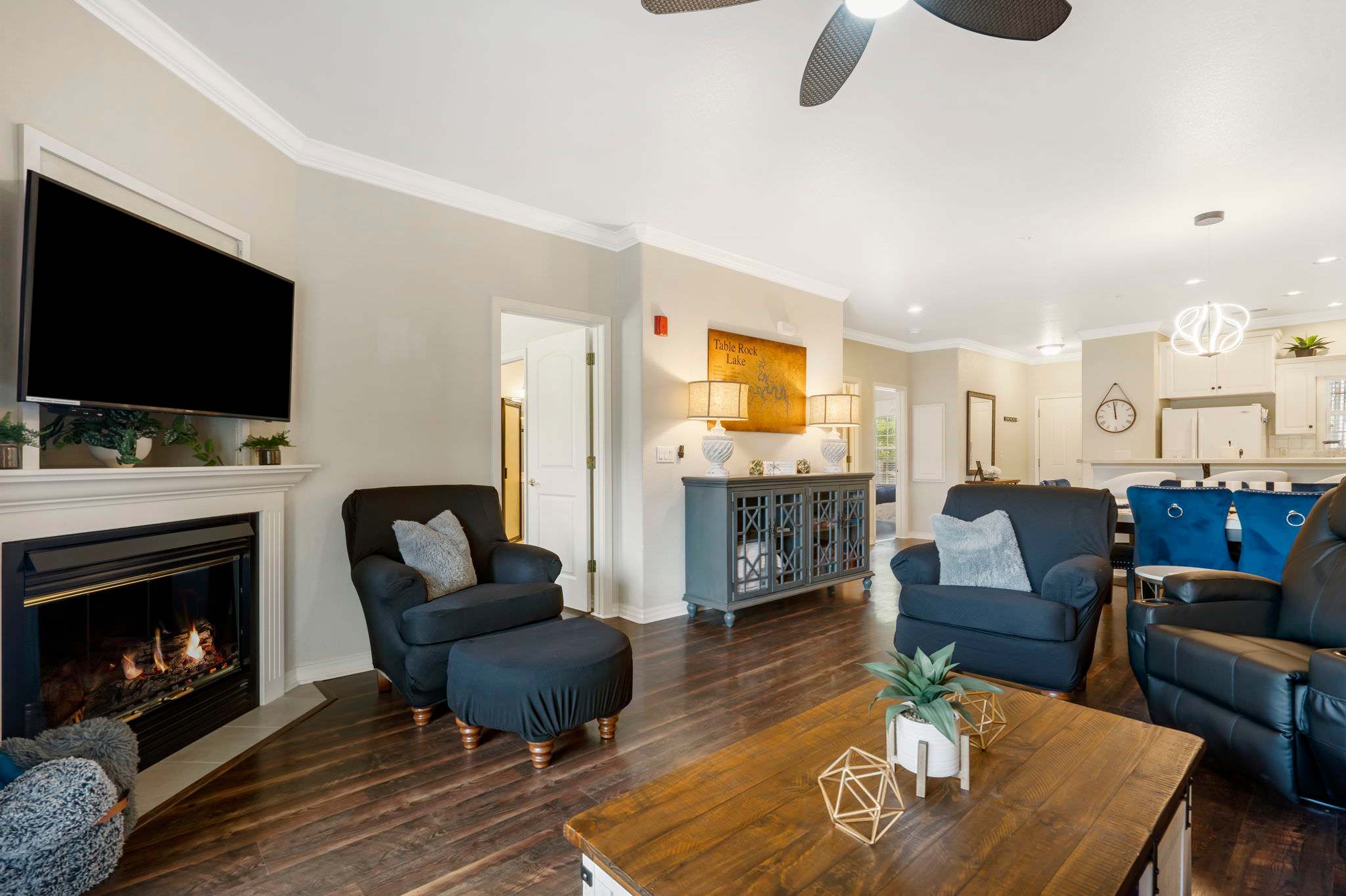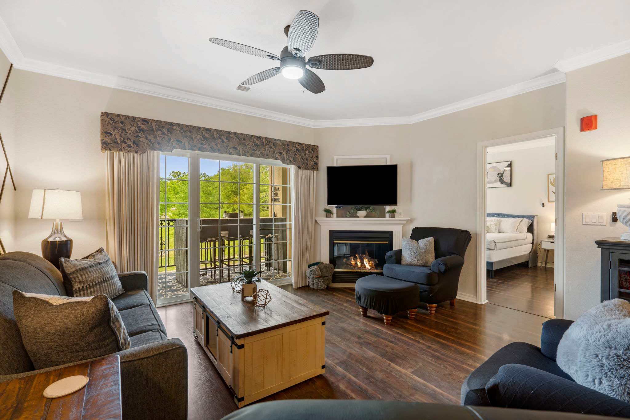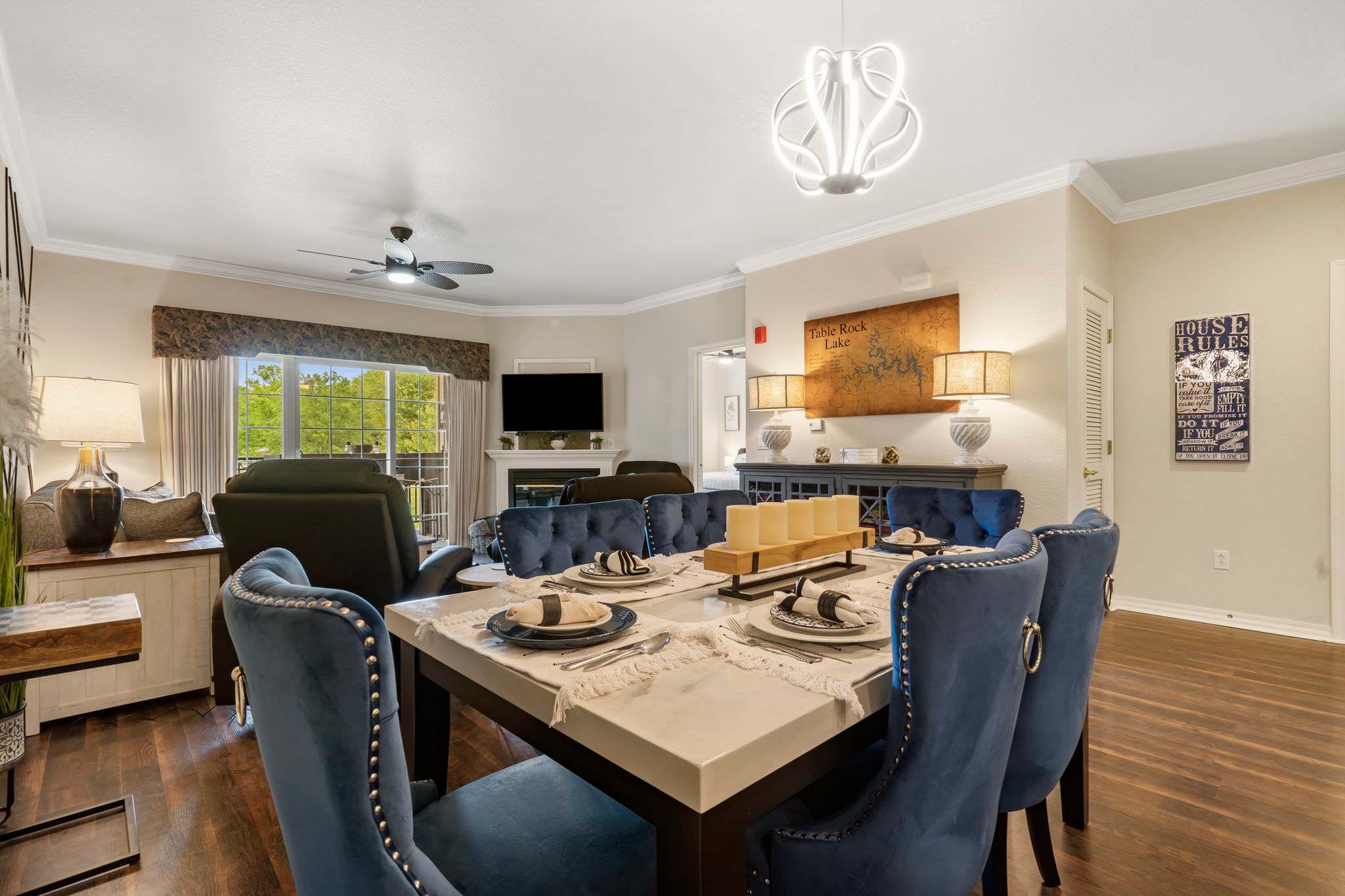 Elegant style and design punctuate this two-bedroom condo in lively Branson, MO. From the moment you walk through the door you are welcomed with clean, spacious living and dining spaces, beautiful hardwood floors throughout, and unlimited views of the peaceful outdoors.