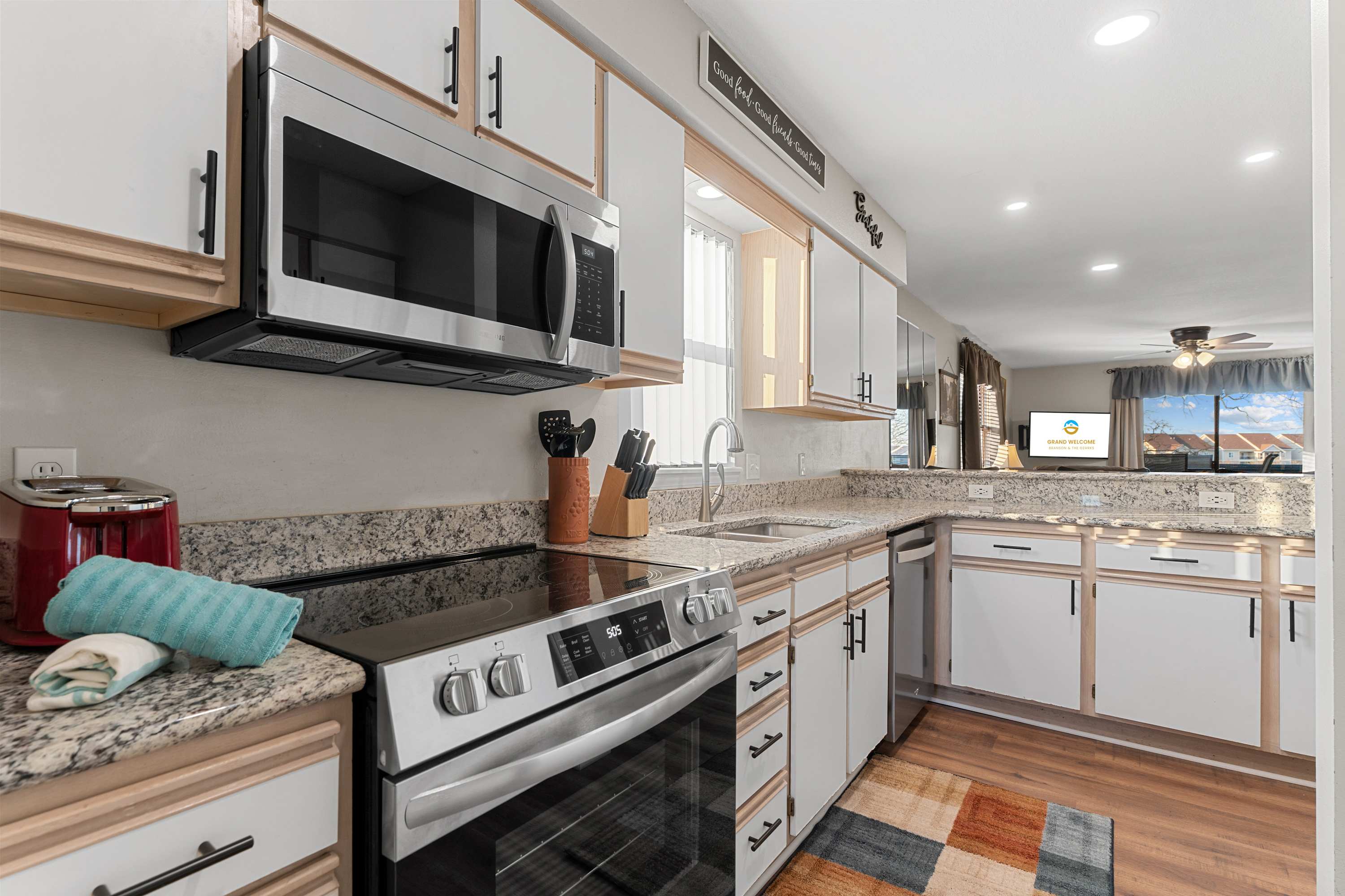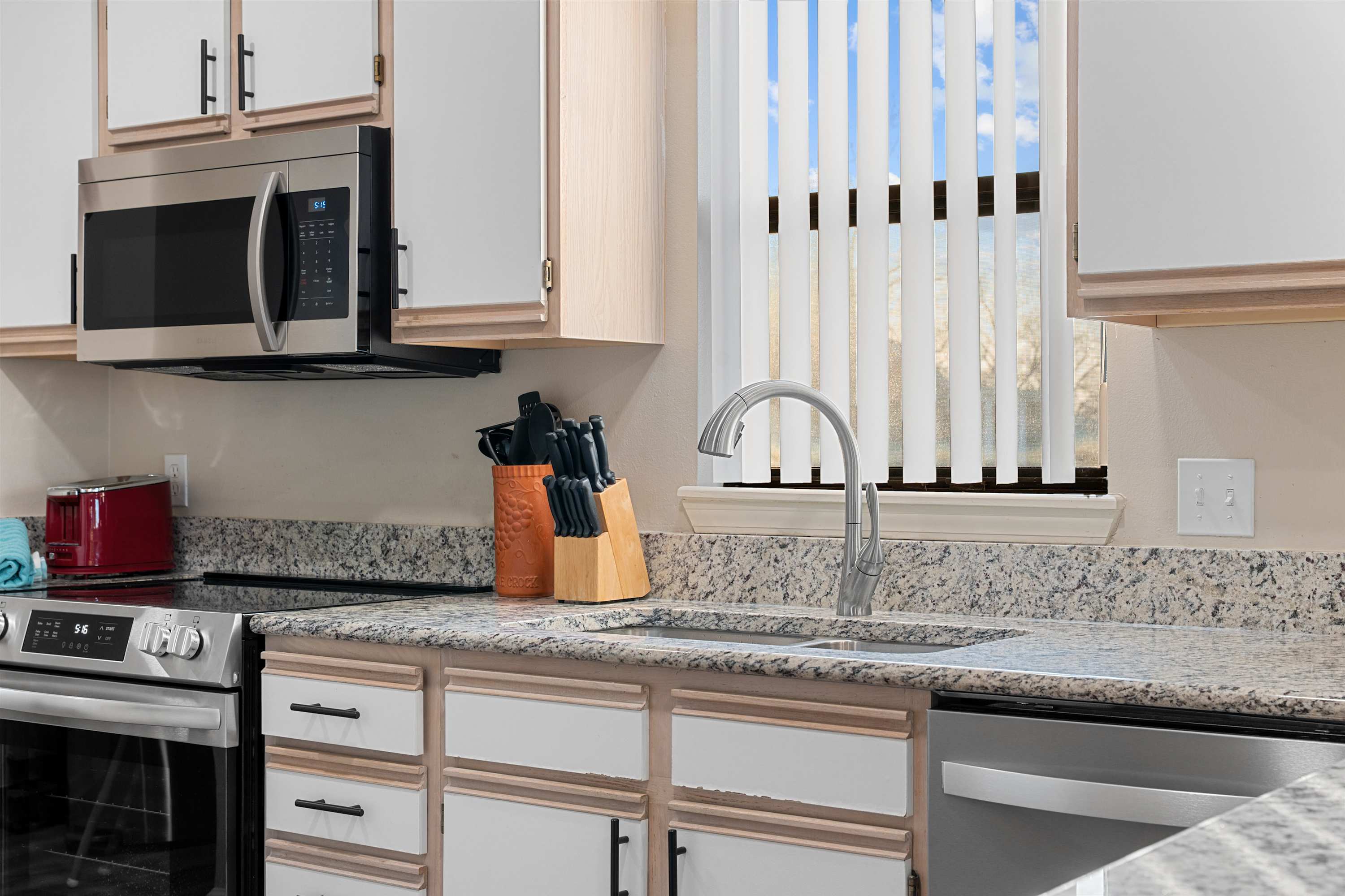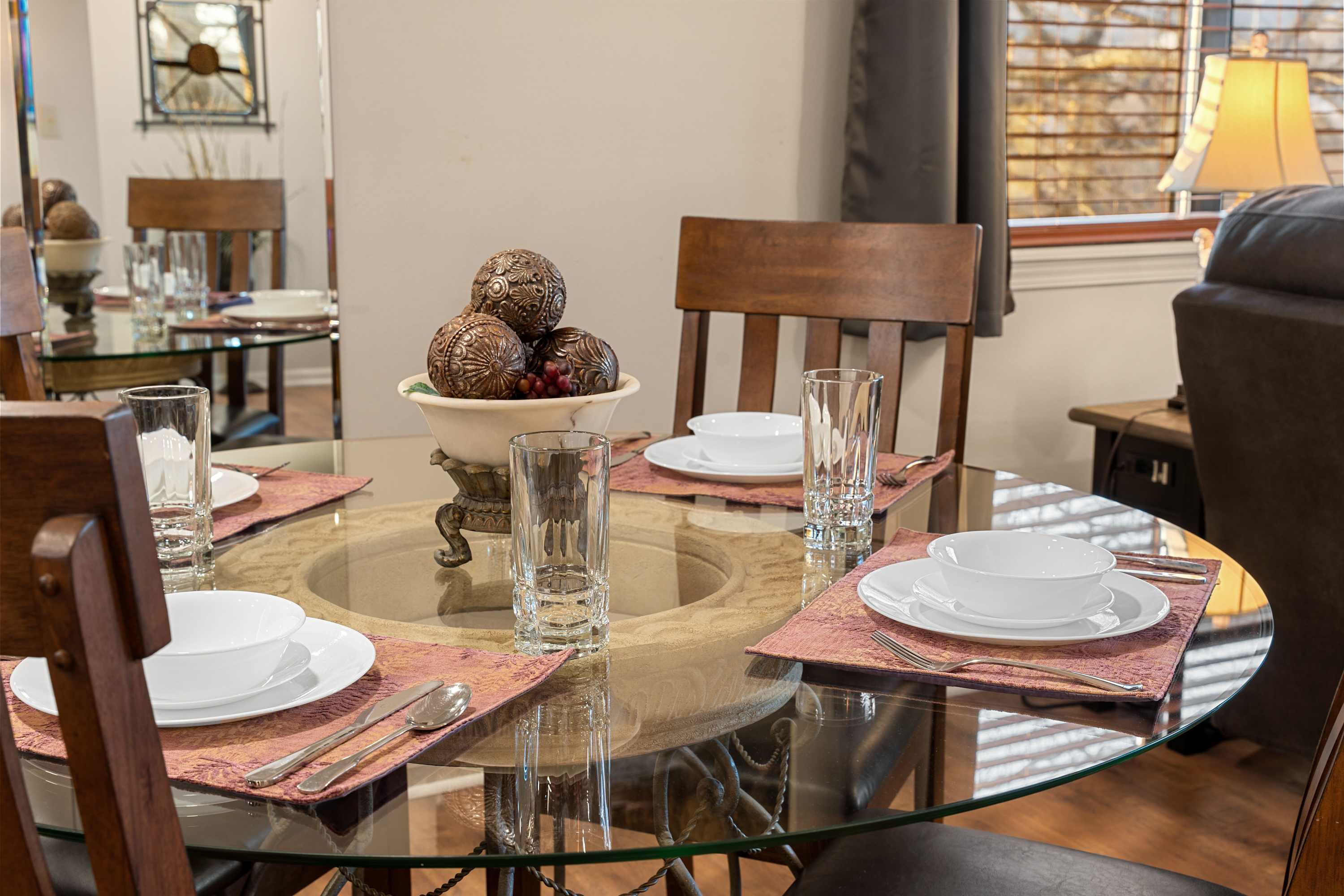 Get ready for quality time with family and friends in this spacious open-concept home. With all your living, dining, and cooking needs covered in one shared space, everyone can gather to connect over coffee at the breakfast bar or a meal around the formal dining table. Put up your feet on plush couches facing a smart tv, perfect for laid-back movie nights. The kitchen is fully equipped with standard appliances, cookware, and coffee maker, all for your convenient use.