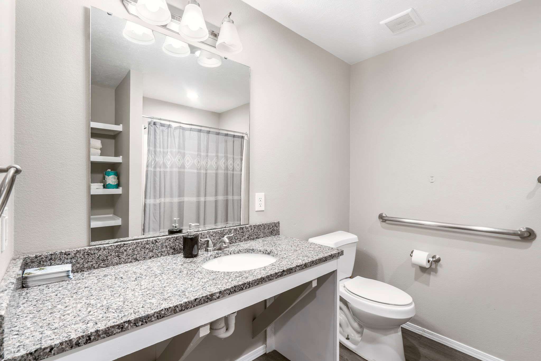 Set against a unique rock formation, the private patio is an idyllic spot to enjoy morning coffee or relaxed meals at the quaint café table. The condo has been fully updated with modern decor and is equipped with amenities to make your stay deeply restful. You are only a short drive from famous Branson attractions and Table Rock Lake, plus you can take a dip in the community pool between your many adventures. Come and experience a truly special vacation at The Moab!