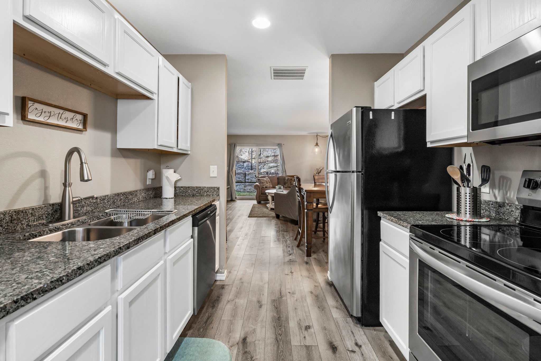 Set against a unique rock formation, the private patio is an idyllic spot to relax and take in the beauty of nature. The condo has been fully updated with modern decor and is equipped with amenities to make your stay deeply restful. You are only a short drive from famous Branson attractions and Table Rock Lake, plus you can take a dip in the community pool between your many adventures. Come and experience a truly special vacation at this lovely getaway!