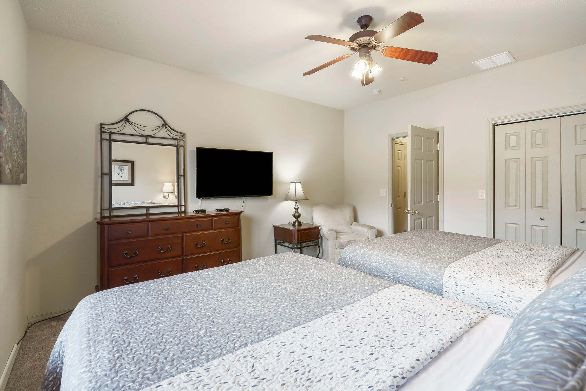 Bedroom #3 has 2 queen size beds and a tv.