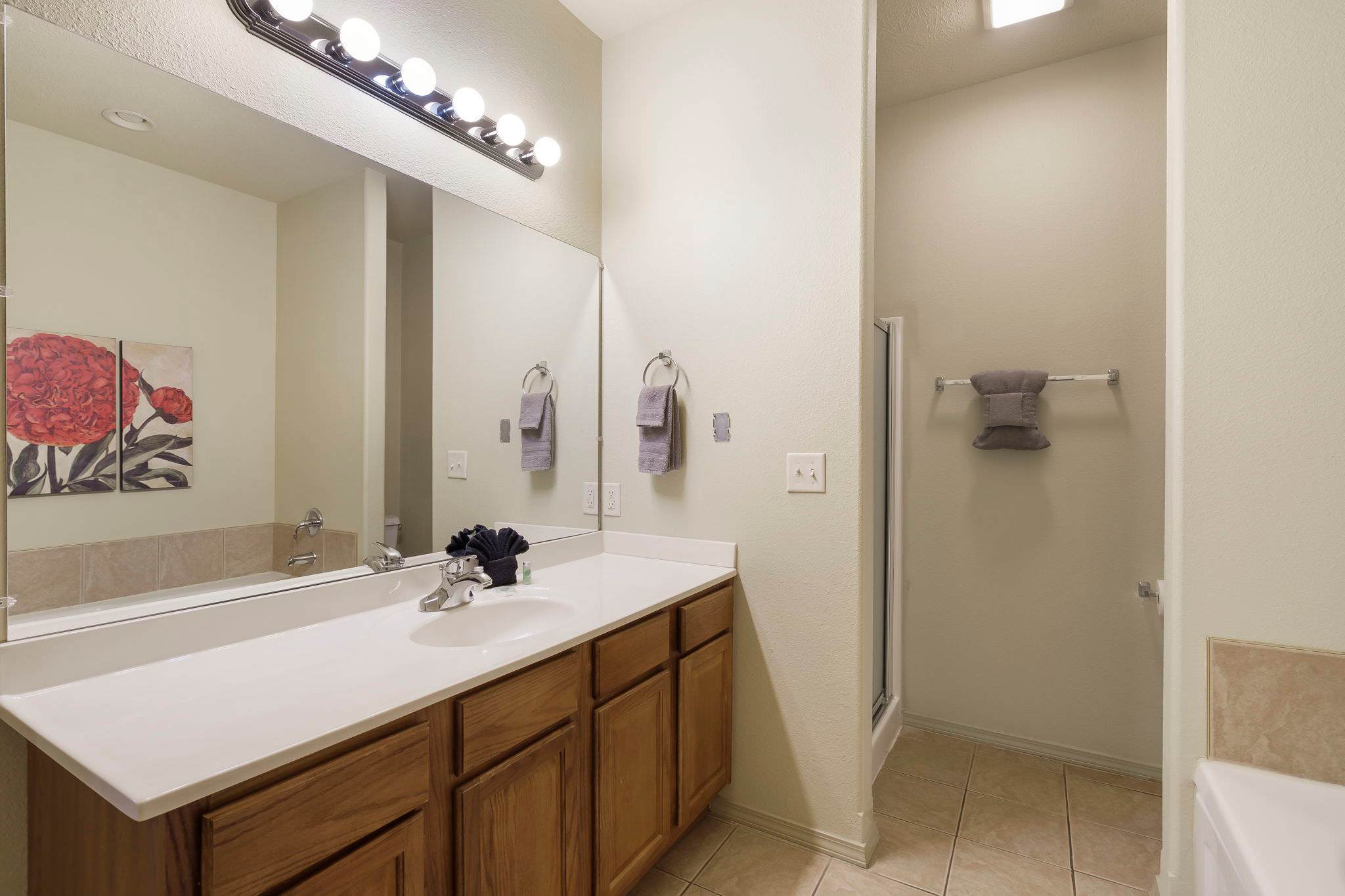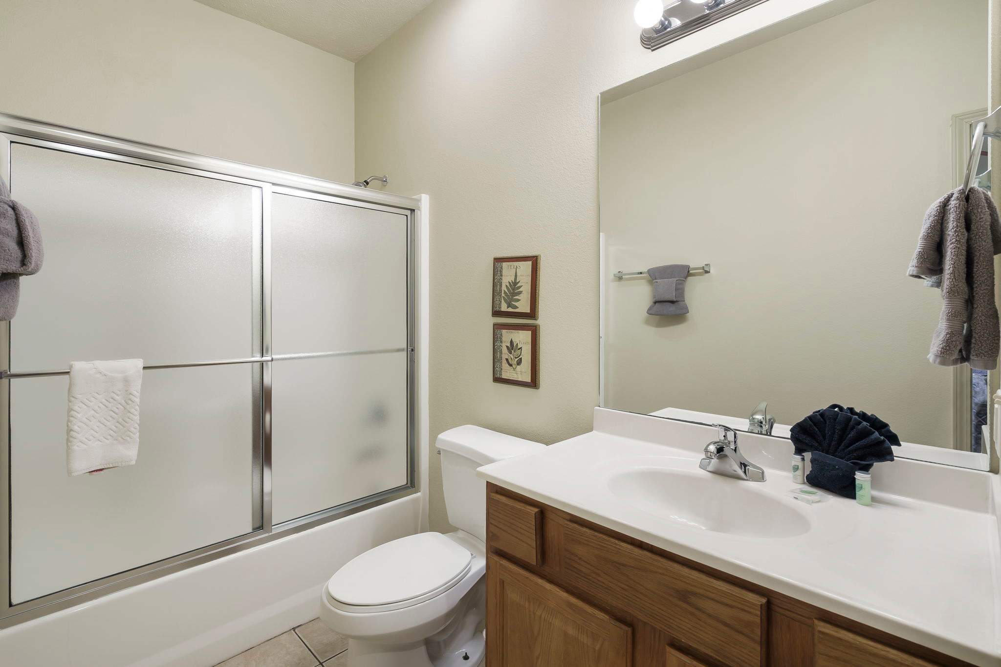 - The home has an additional bathroom with shower/tub combo.