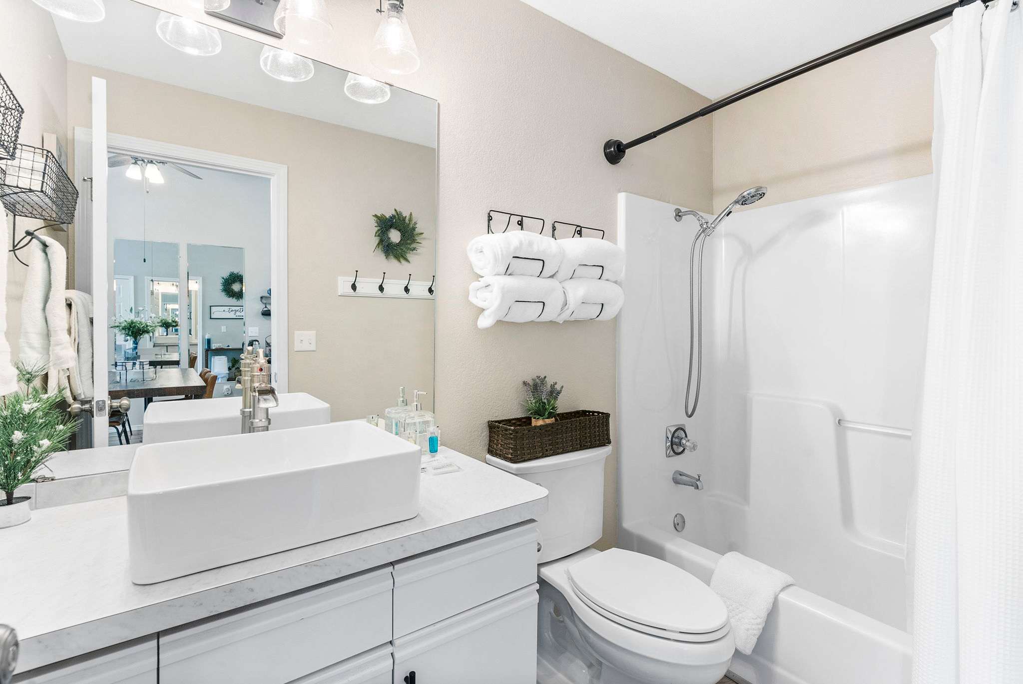 BATHROOM: Full bath, hair dryer, complimentary toiletries and safety features for the shower.