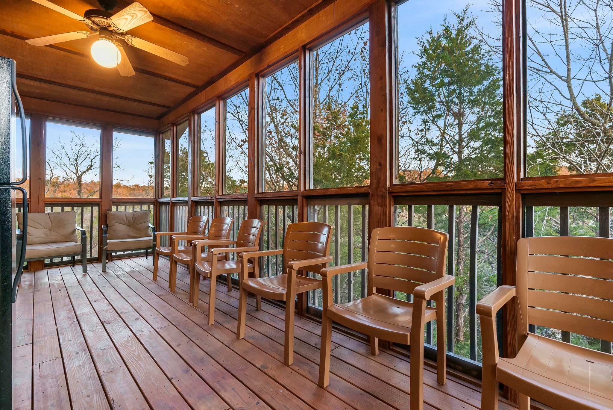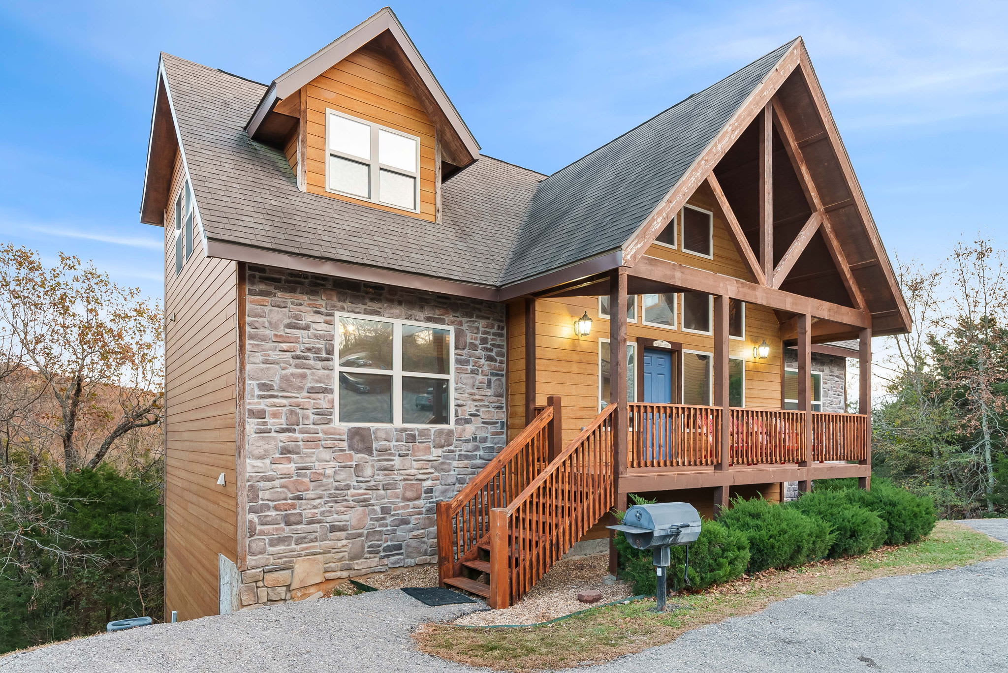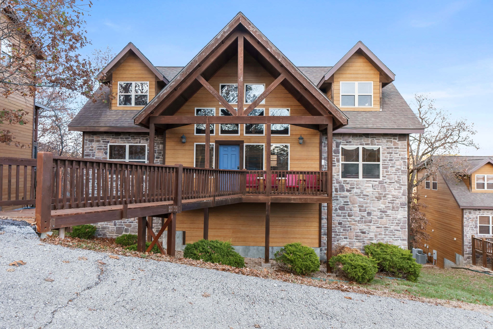 These homes are located in The Lodges at Table Rock Lake, an exclusive Branson cabin community in a quiet neighborhood with easy access to all the action at nearby Silver Dollar City, Table Rock Lake, and Downtown Branson. With tons to explore nearby, this resort community is a quiet escape among the nature of the Ozarks with many onsite amenities of its own: fire pits, playground, indoor and outdoor swimming pools, water slide, and walking trails. Make the most of your close proximity to Table Rock Lake with nearby boat launch, boat rentals, fishing tackle, and professional guide services. On water and on land, you’re surrounded by some of the most stunning scenery in the Ozarks.