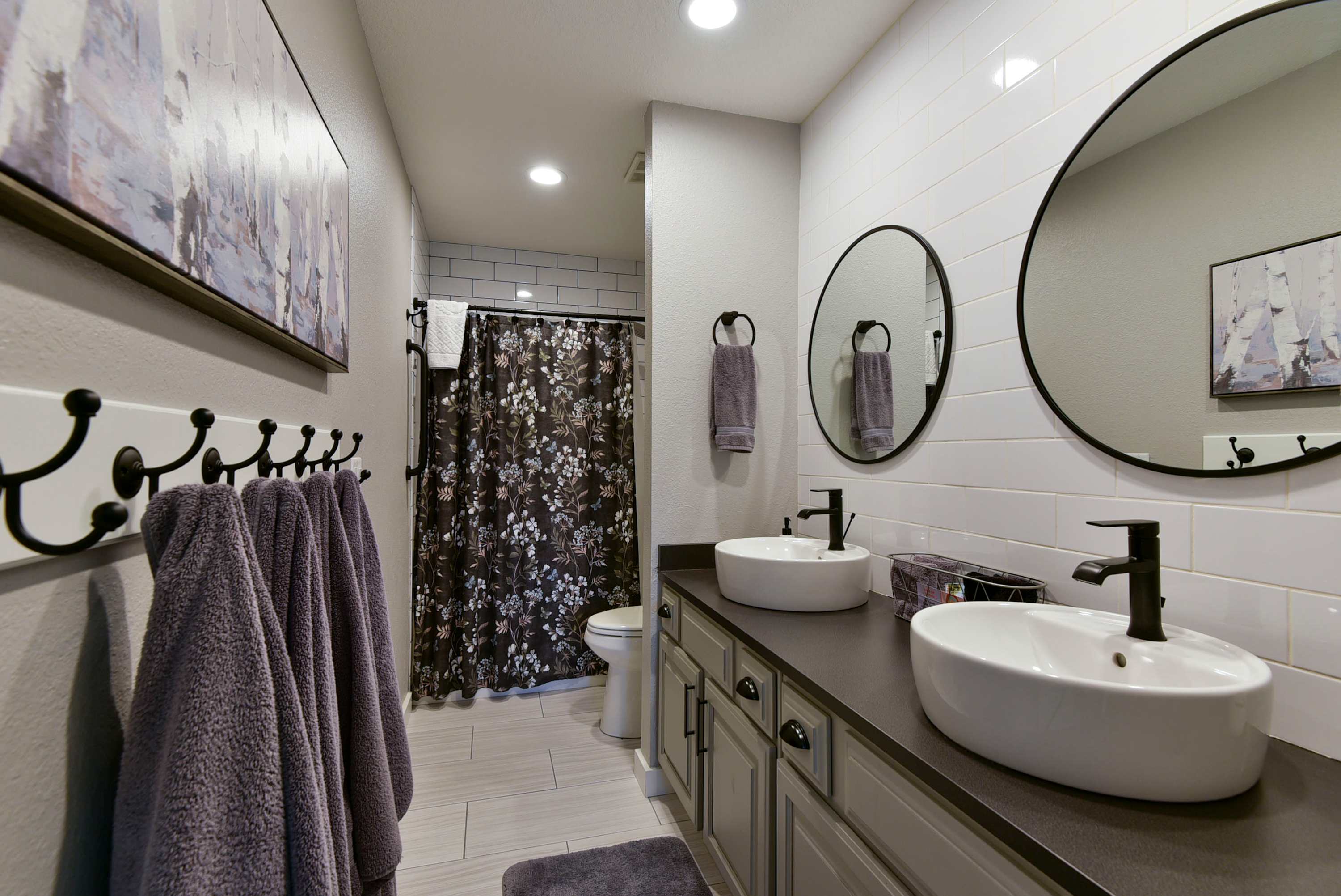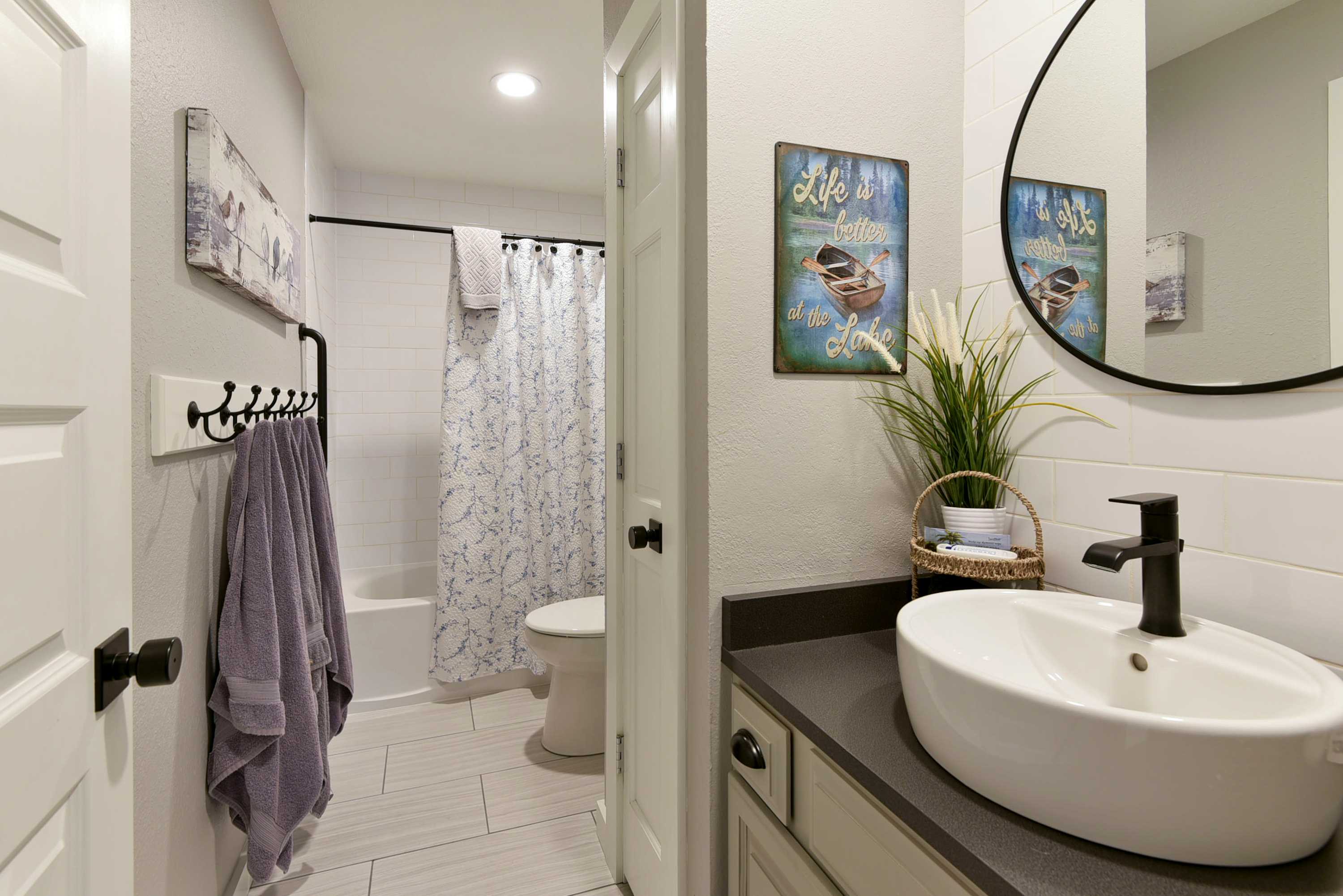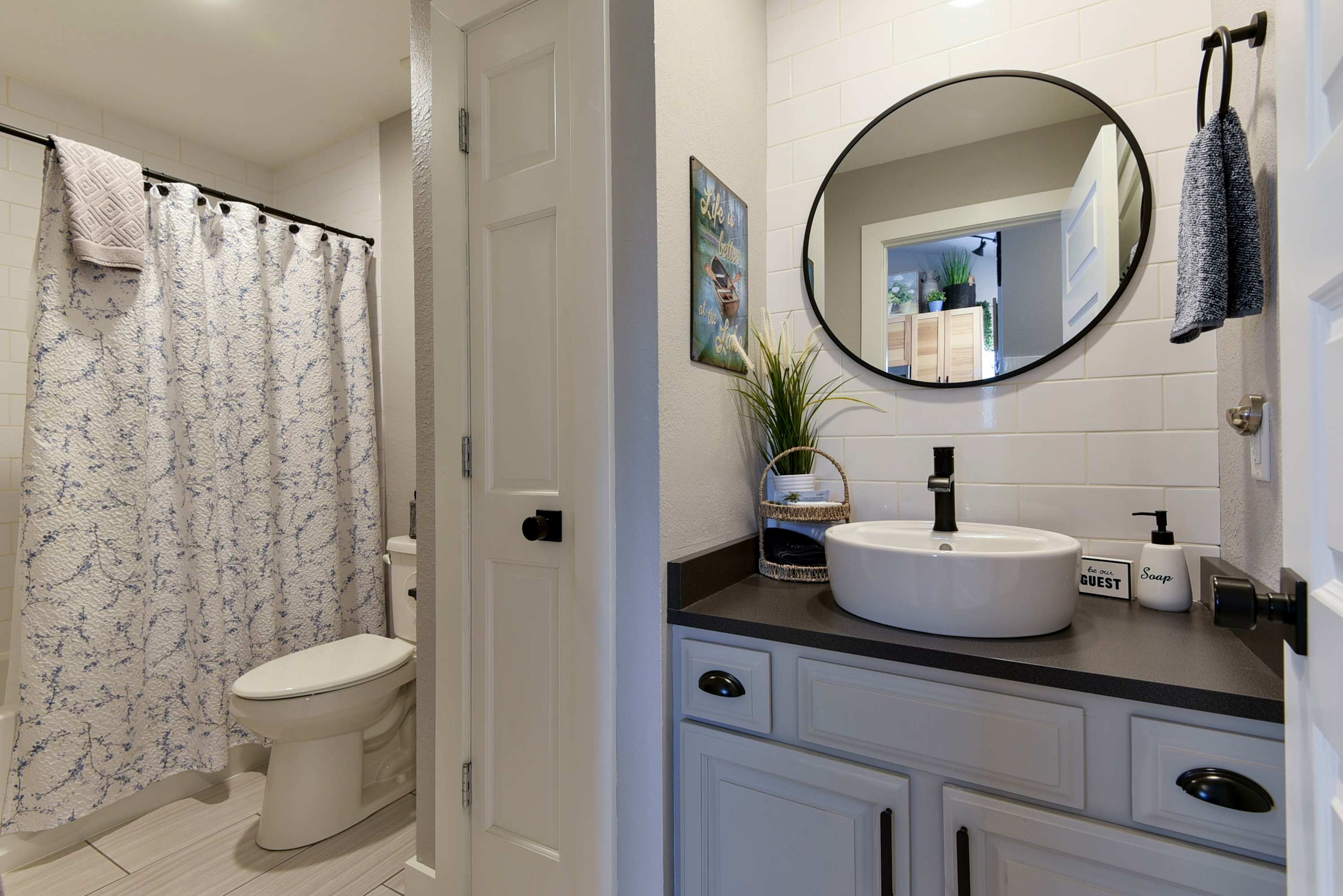 Bedroom #2 has a queen-size bed, smart tv, and ensuite bathroom with shower/tub combo.