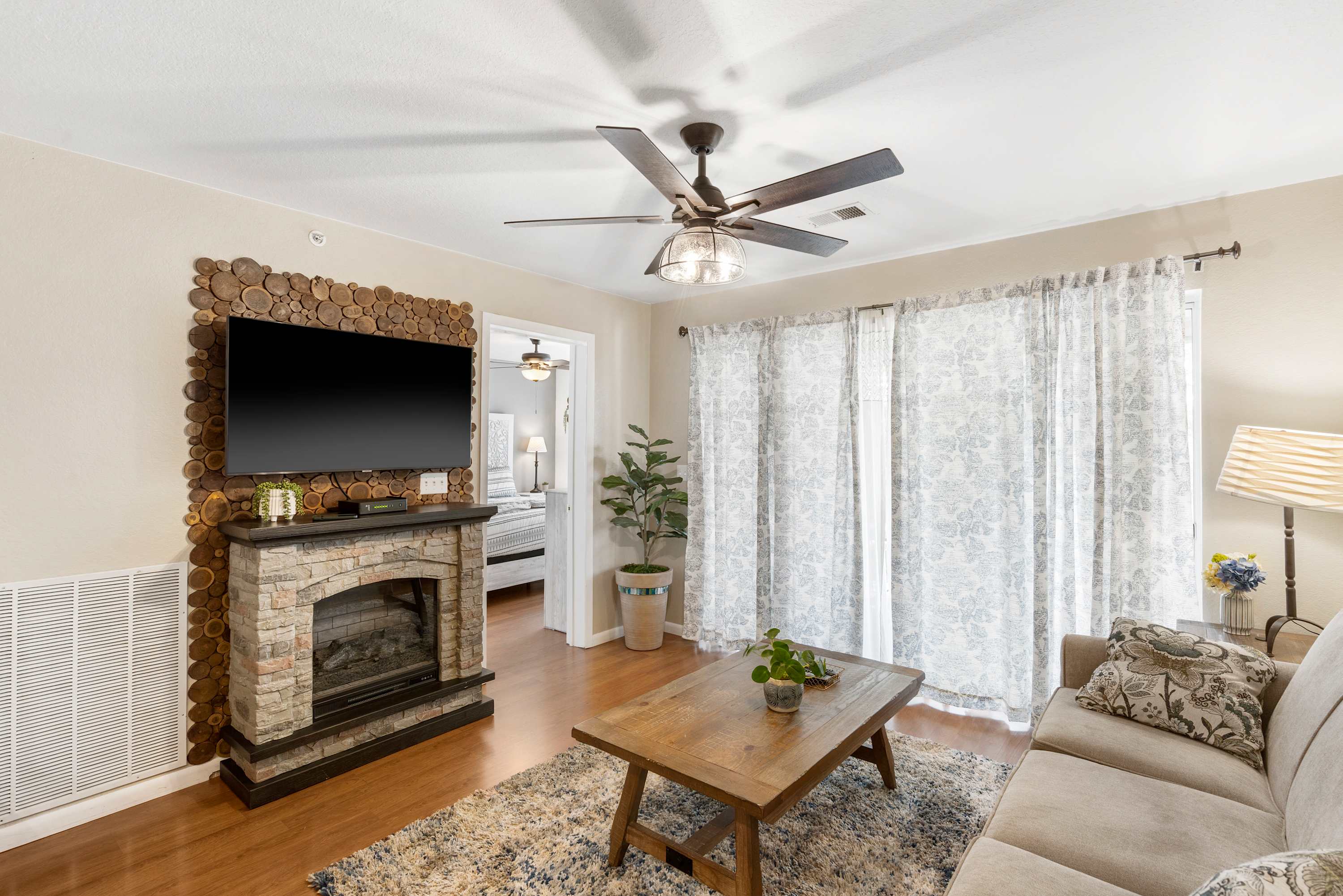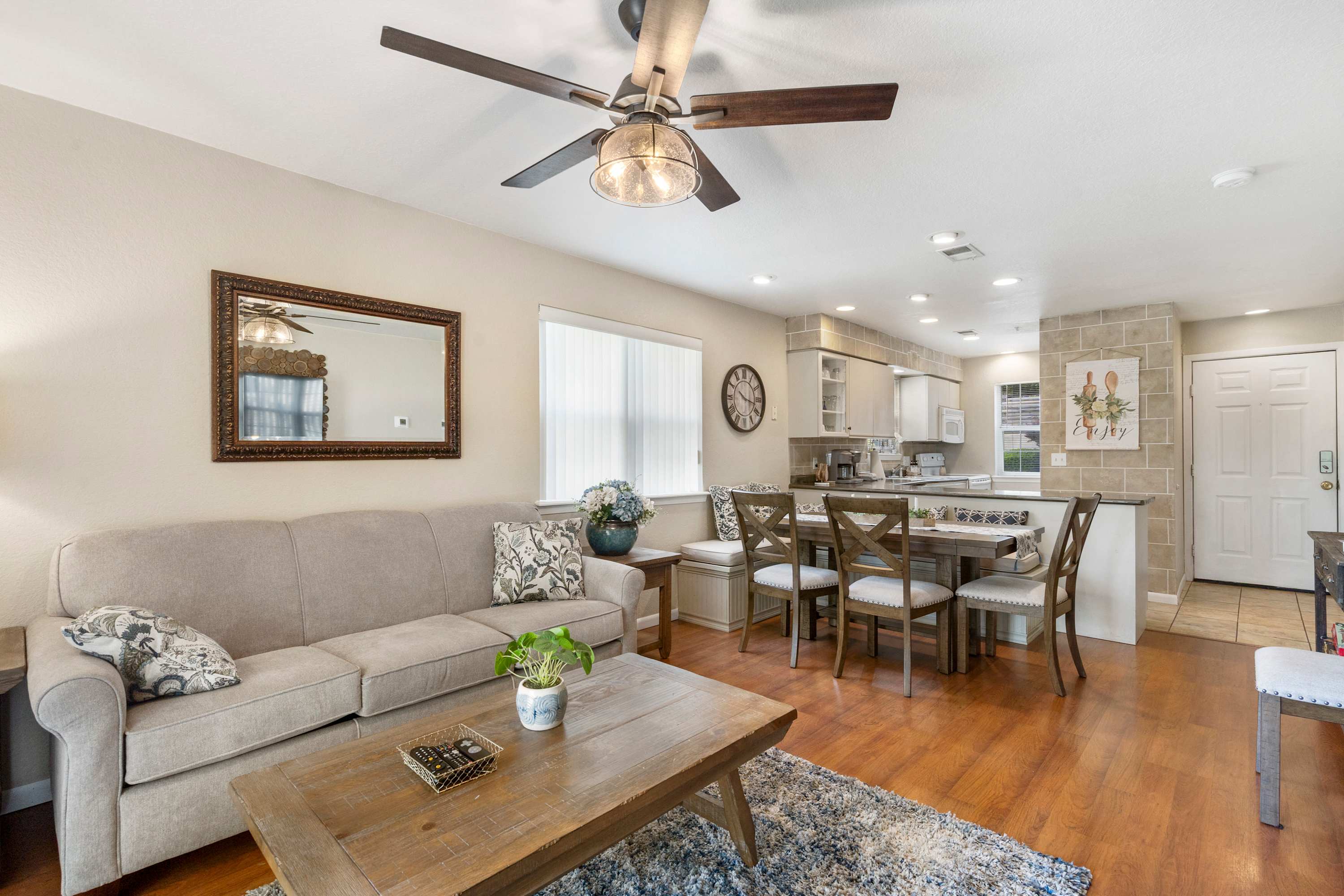 This home sleeps 6 guests between 2 private bedrooms and a sleeper sofa.