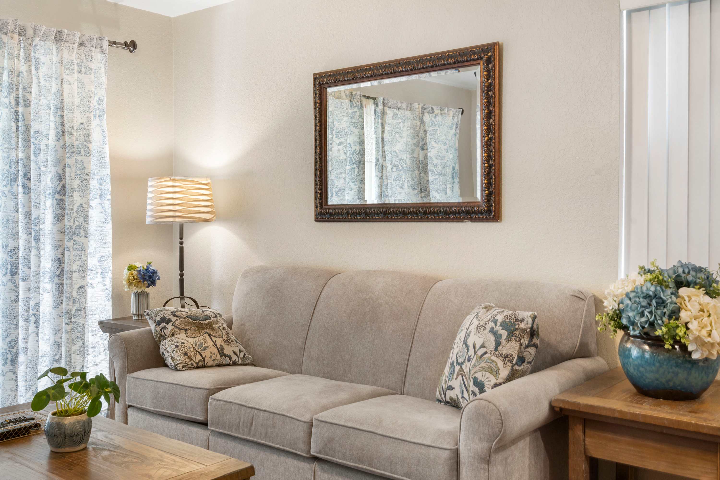 - A queen size sleeper sofa is provided in the living area.