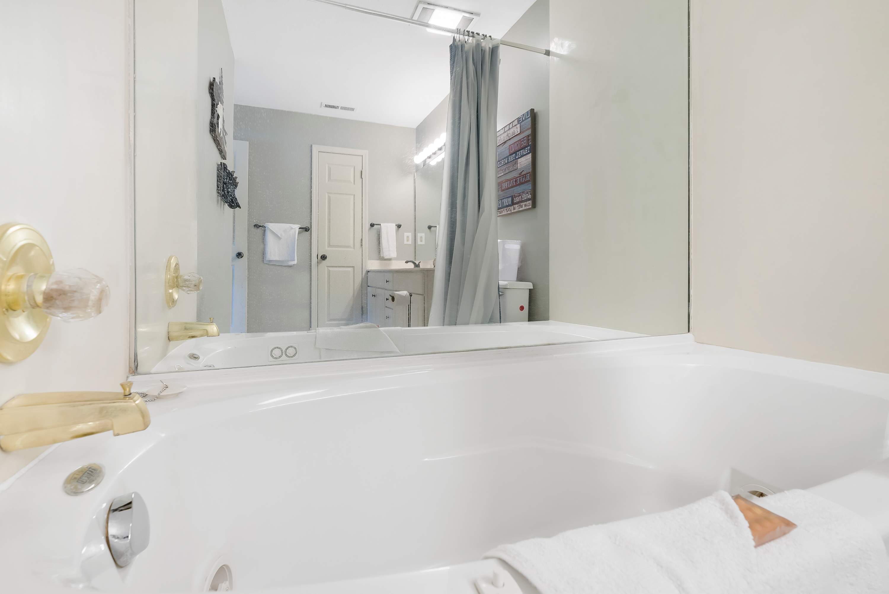 - The home has an additional shared bathroom with shower/tub combo.