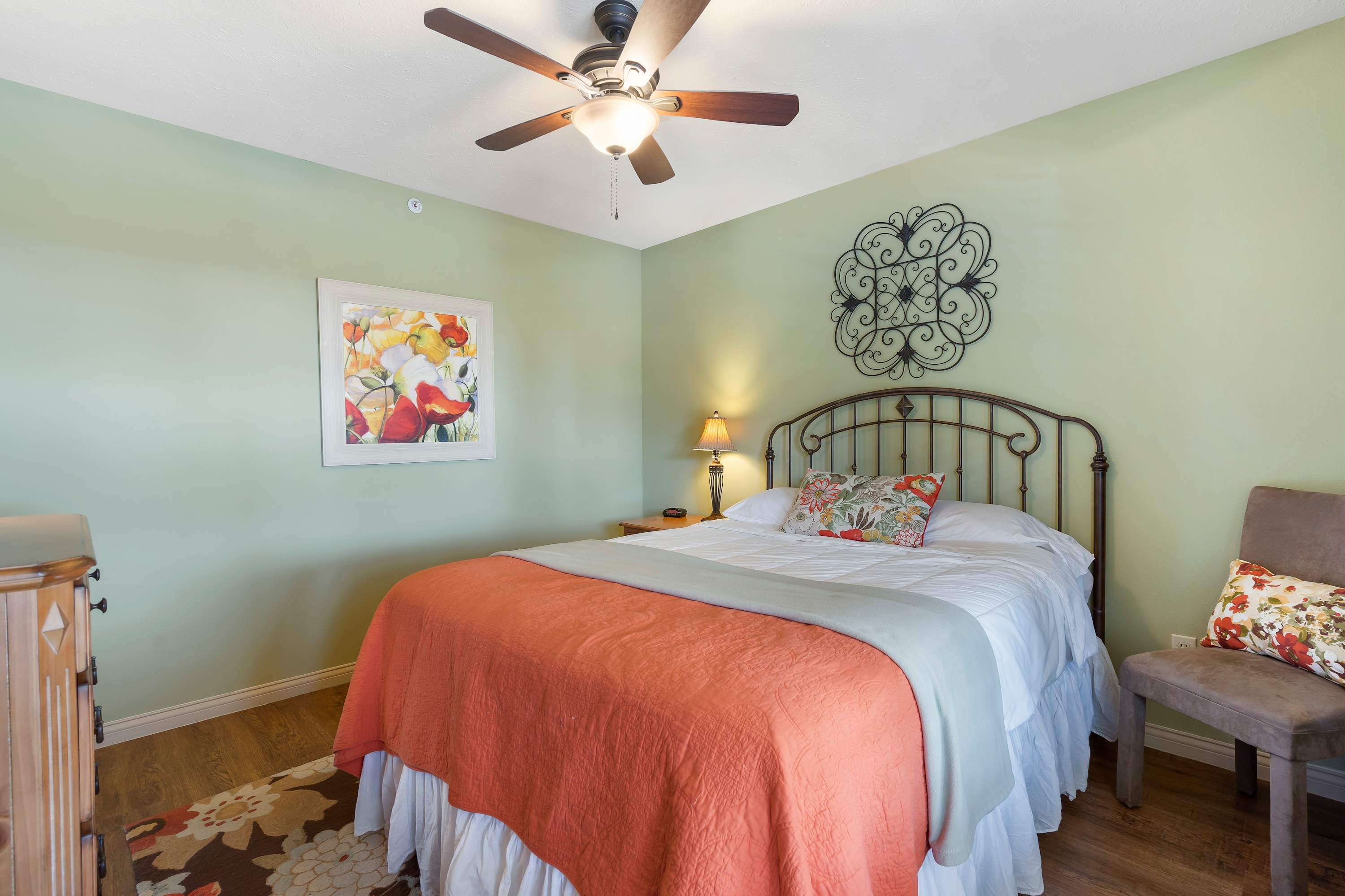 This home sleeps 6 guests between 2 private bedrooms and a sleeper sofa in the living area.