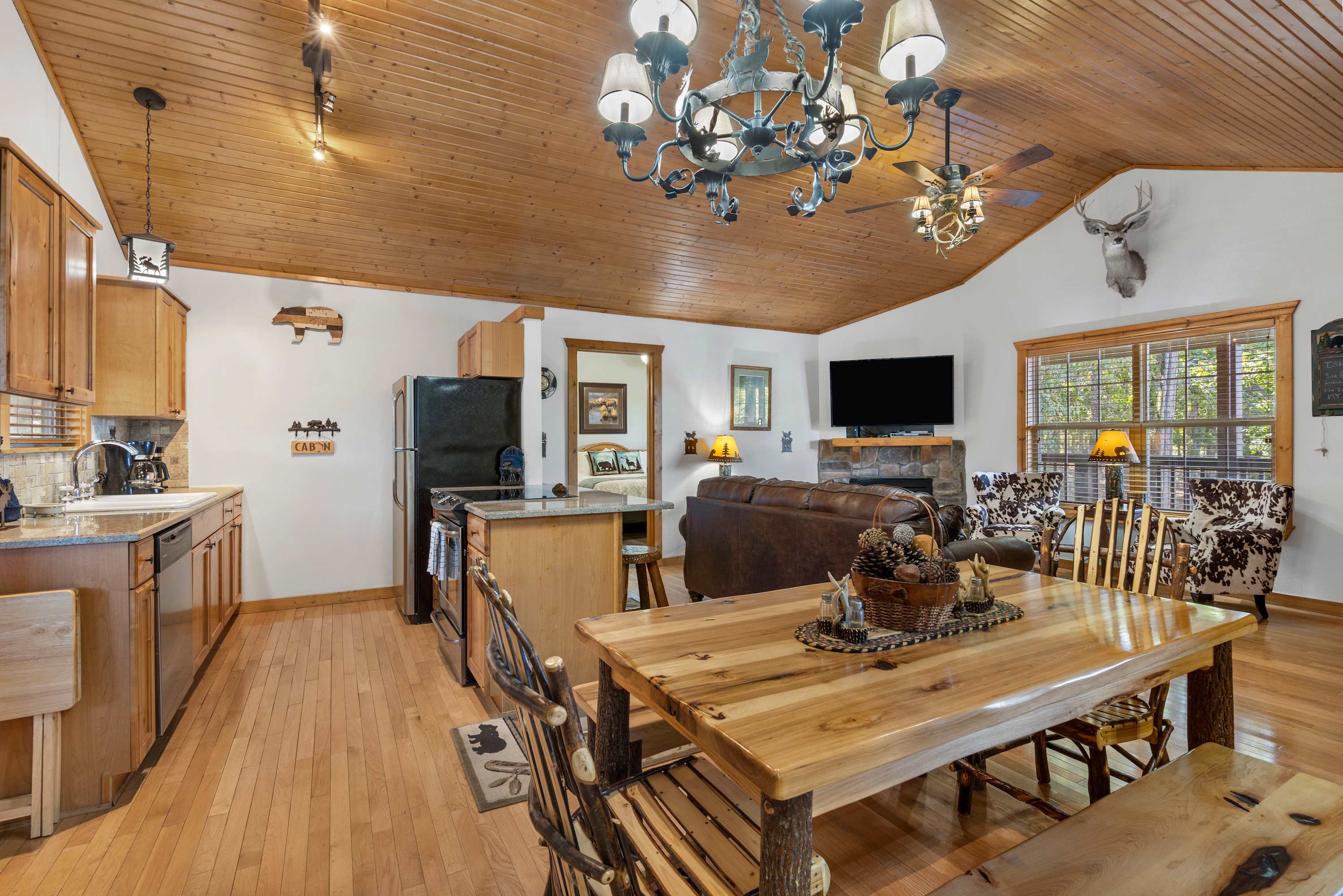 A beautifully maintained home with neutral decor. This rental is ideal for a group who is looking to enjoy Branson’s most sought-after attractions and come back to a comfortable stay. The open living space boasts ample seating, Smart TV, fireplace (currently out of order), and access to the deck. The deck is a major bonus to this tasteful abode with outdoor seating - perfect for a morning brew, or a nightcap under the stars.