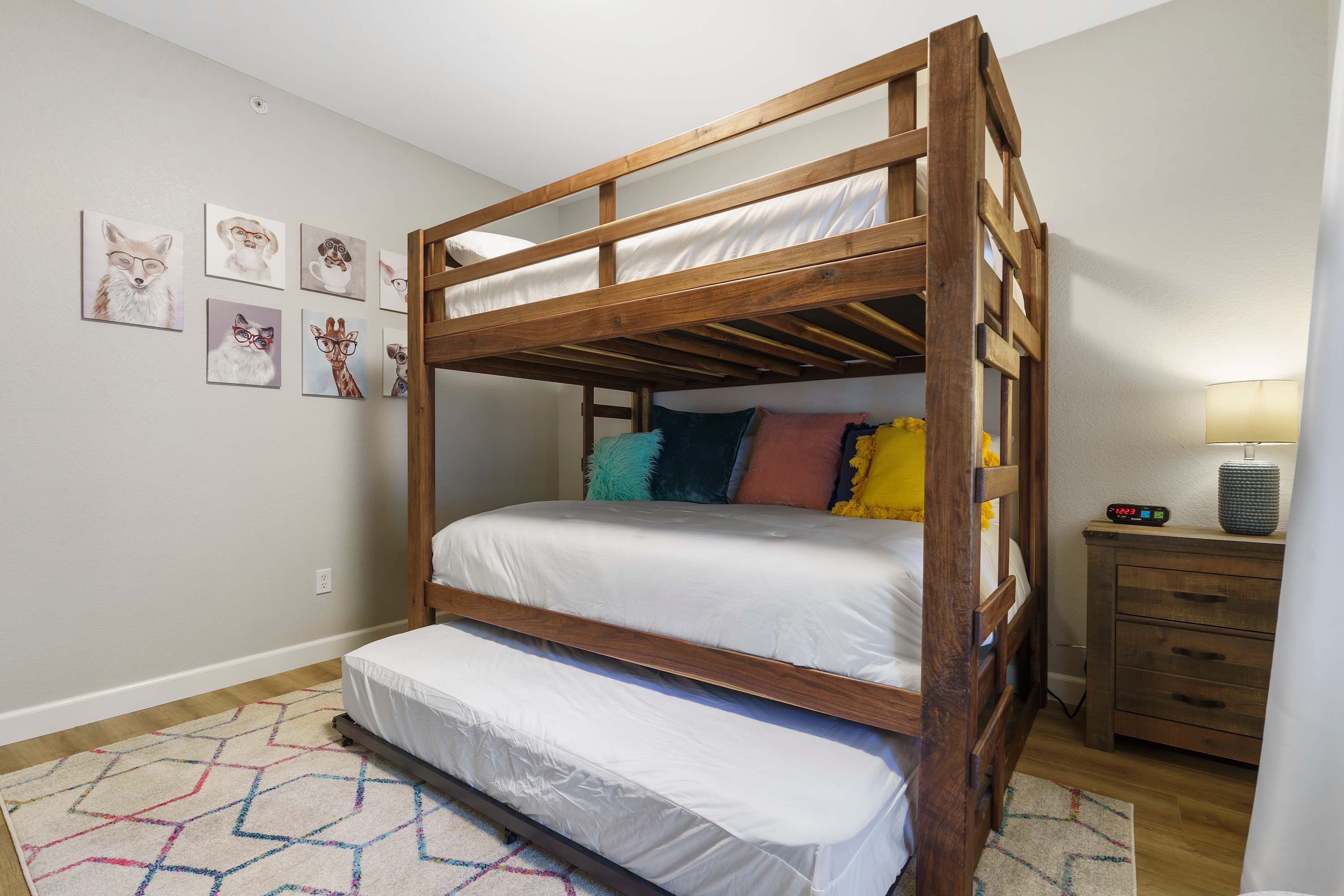 Bedroom #2 It has a bunk bed with trundle that features 2 queen-size and 1 twin bed. It’s also kitted with a smart TV.