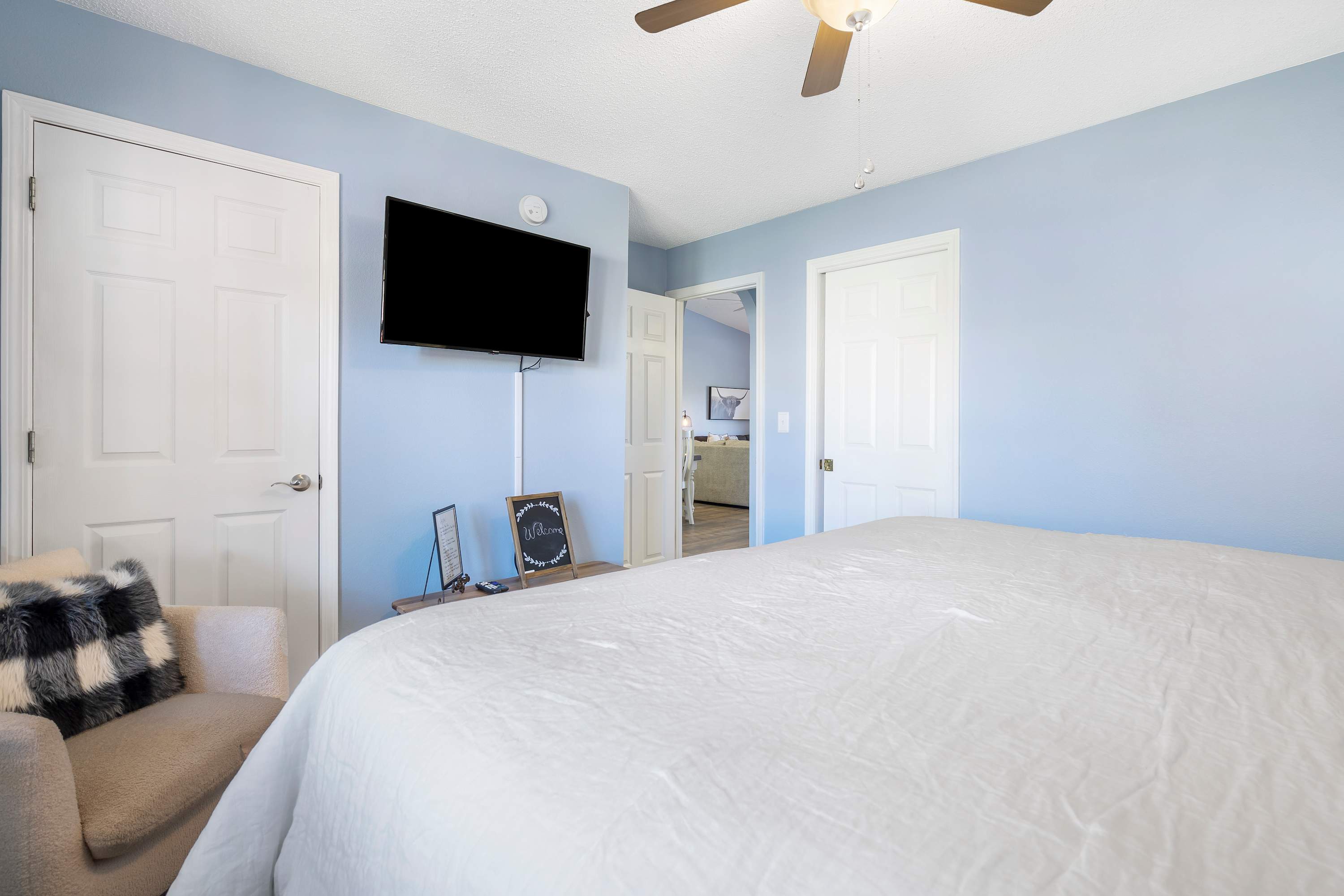 Bedroom #1 features a king-size bed, and a smart TV.
